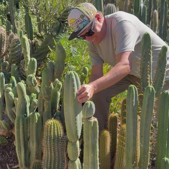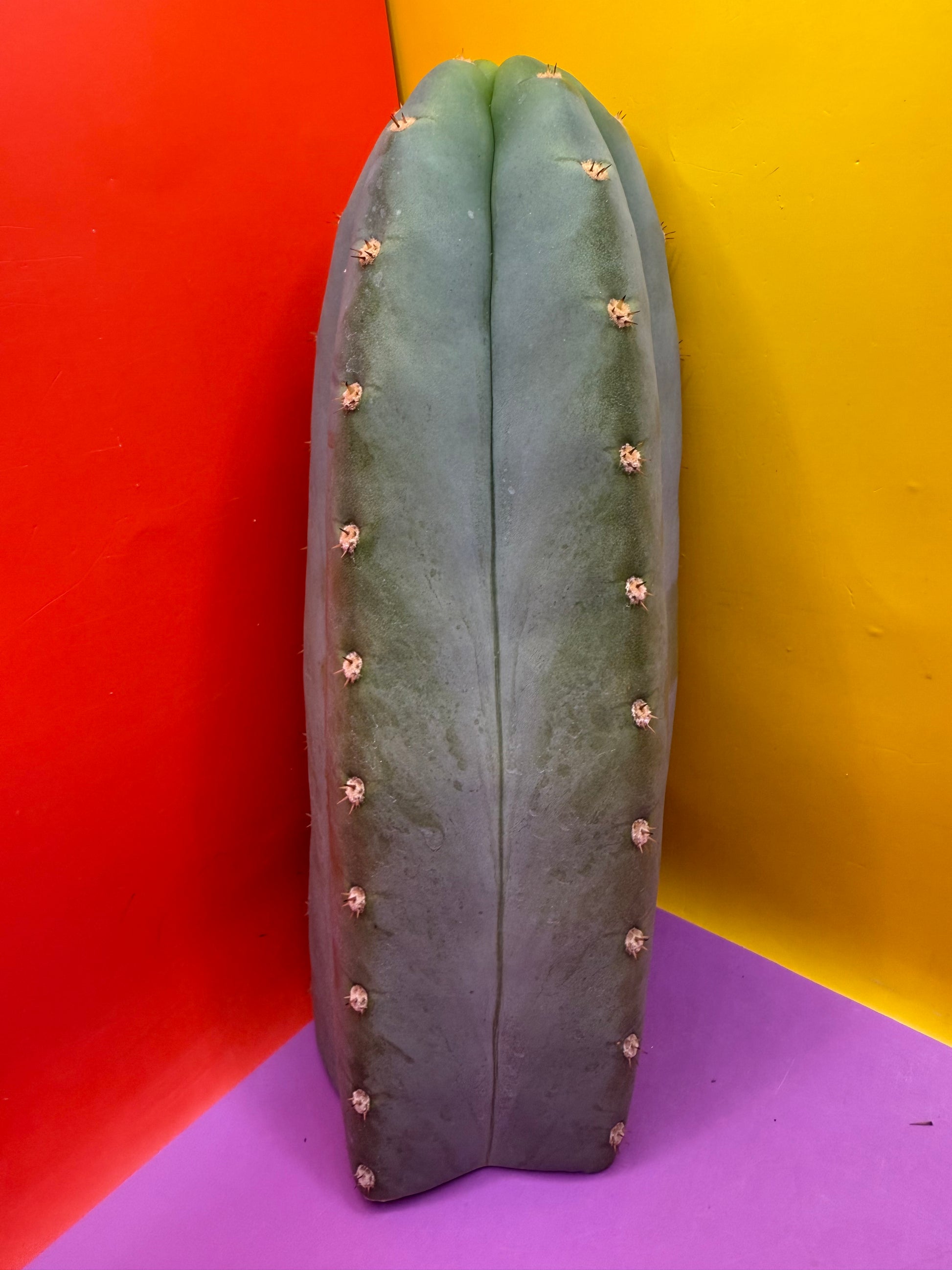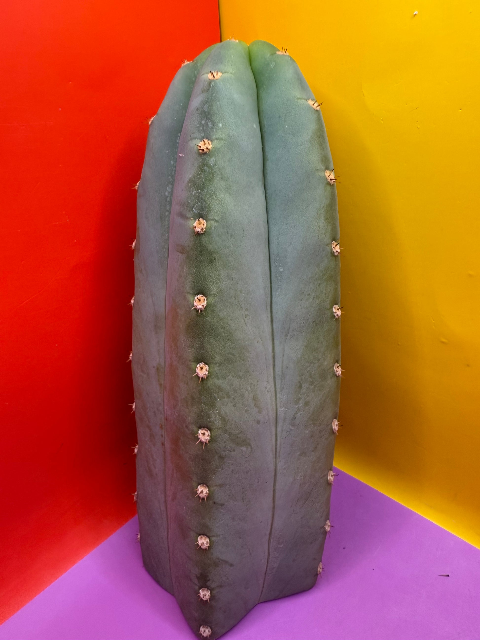 You will receive THIS EXACT CACTUS ! First slide is a video of me cutting this exact cactus , All sides are pictured to show how flawless it is , truly beautiful and THIC -What a Blocky Heifer !! Extremely glaucous , this cactus is pure Baby Blue . This pours out roots fast and is filled with moisture so it will have tons of energy stored to begin its new life at your home !! I love how powdery its rubbery flesh is and how extremely short its strong spines are . Pachanoi like this isn’t often seen with such gorgeous hues of blue ! Great trichocereus for the collection and a must have for Blues lovers !!! This one is featured on my most recent instagram video of cutting cactus