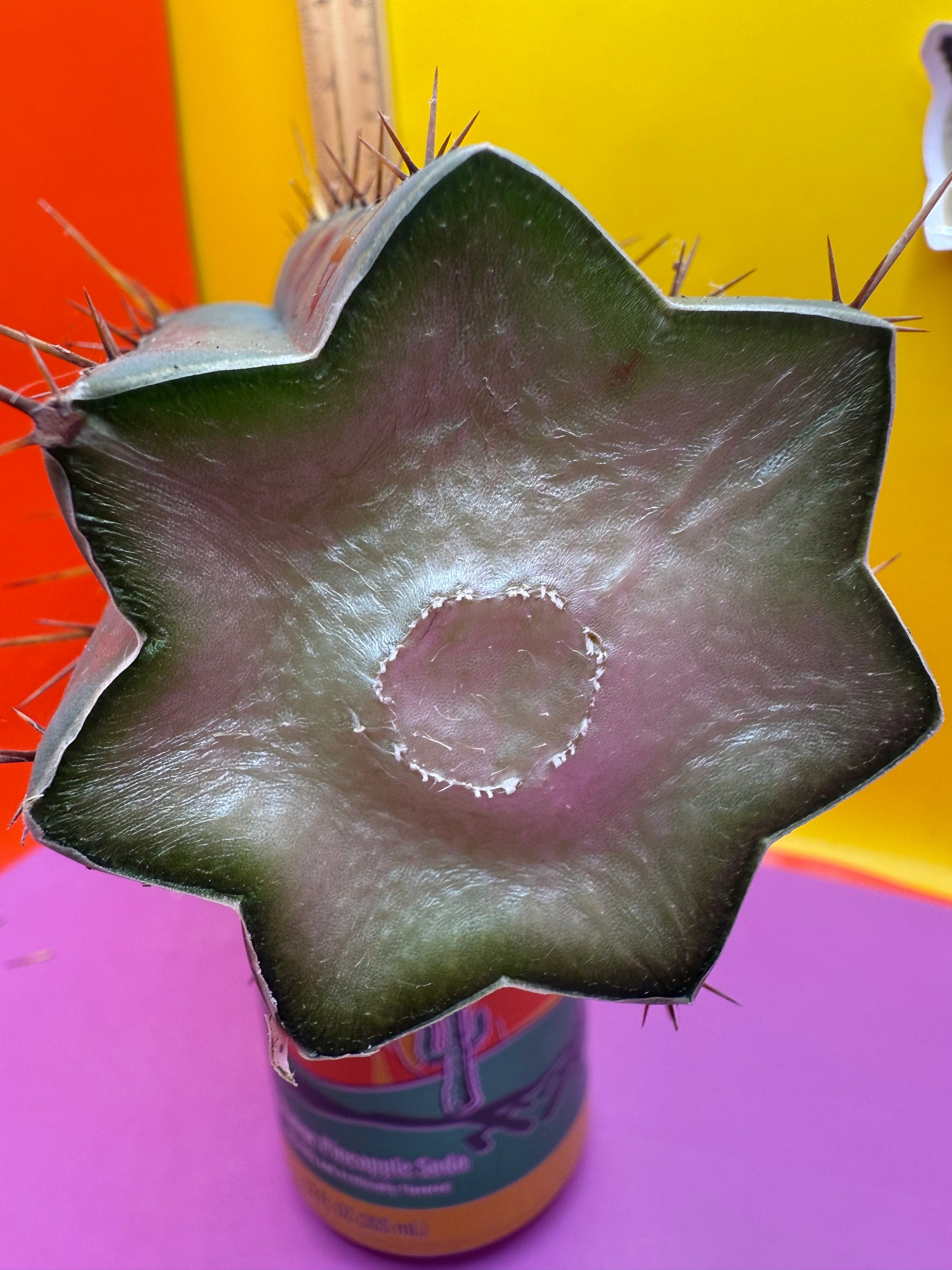 soda can is for size reference, ruler is a foot long and measurement is in inches - I’m holding it for example of size