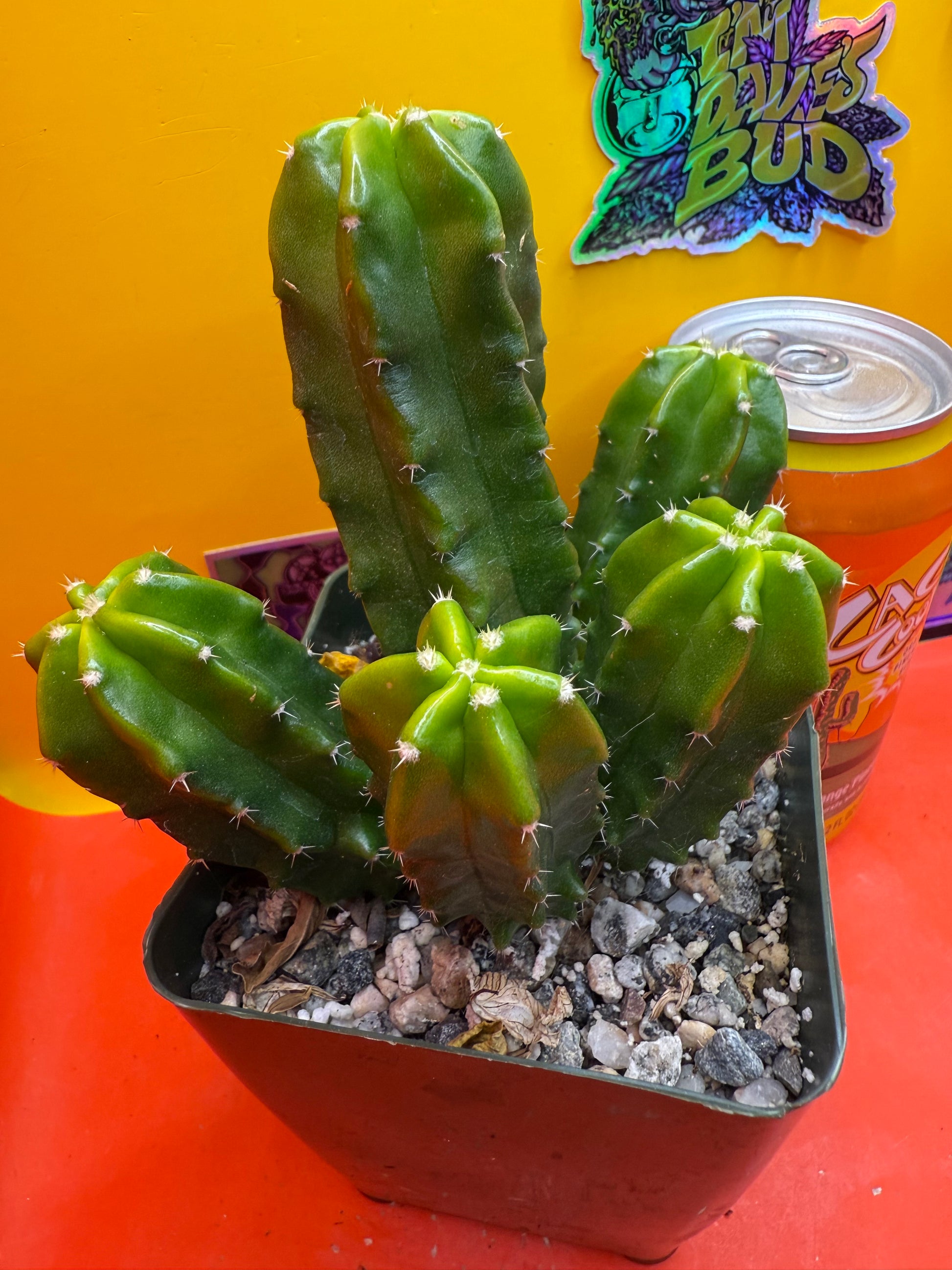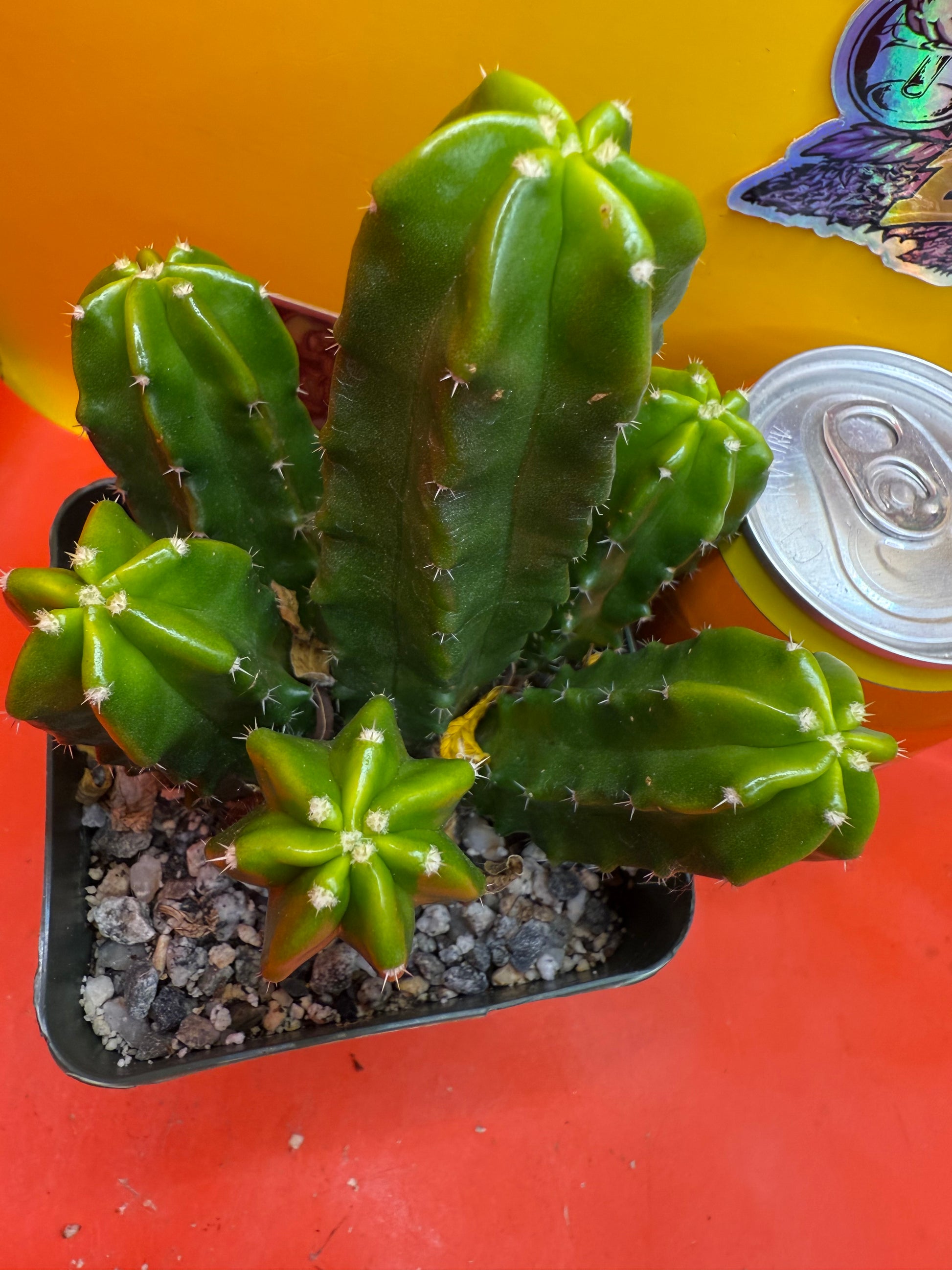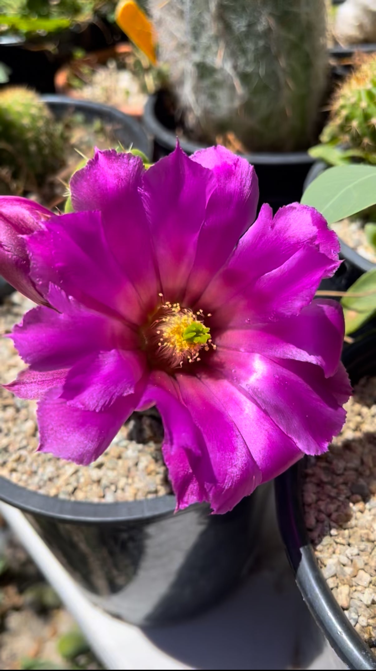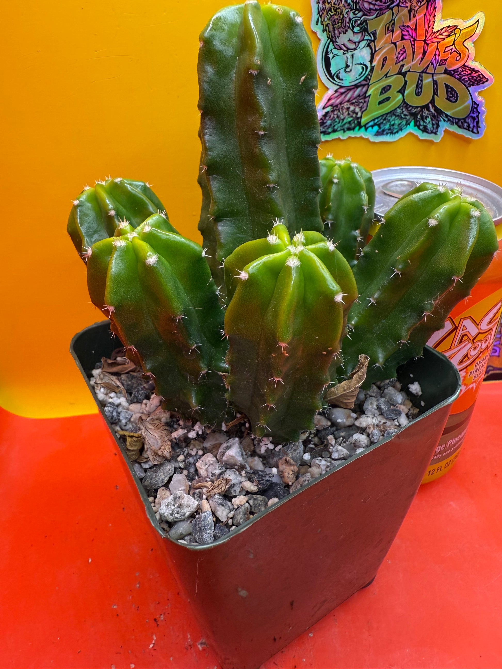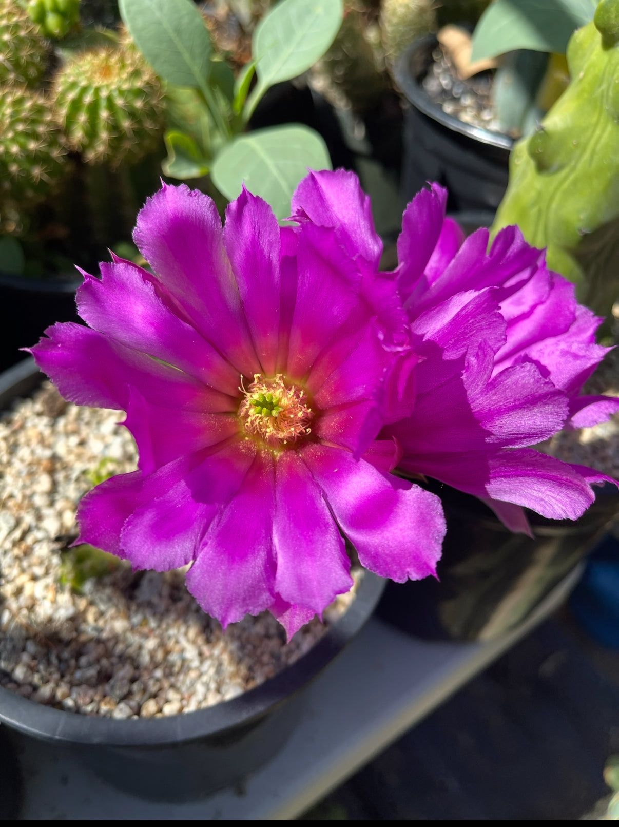 Tons of new fresh pups ! This is fully rooted and happy growing in its pot ! You will receive this exact cactus . It gets a beautiful purple flower ! Flower pictures are for example. Spines are extremely small on this . It grows in a clumping style , throwing out more and more new offshoots from the base . Blooms during the spring and summer and flowers and buds can often be larger than the cactus itself ! This is very healthy and will grow great for you ! Very easy to care for , this is already planted in well a draining cactus mix I custom mixed and it’s happy in its pot !