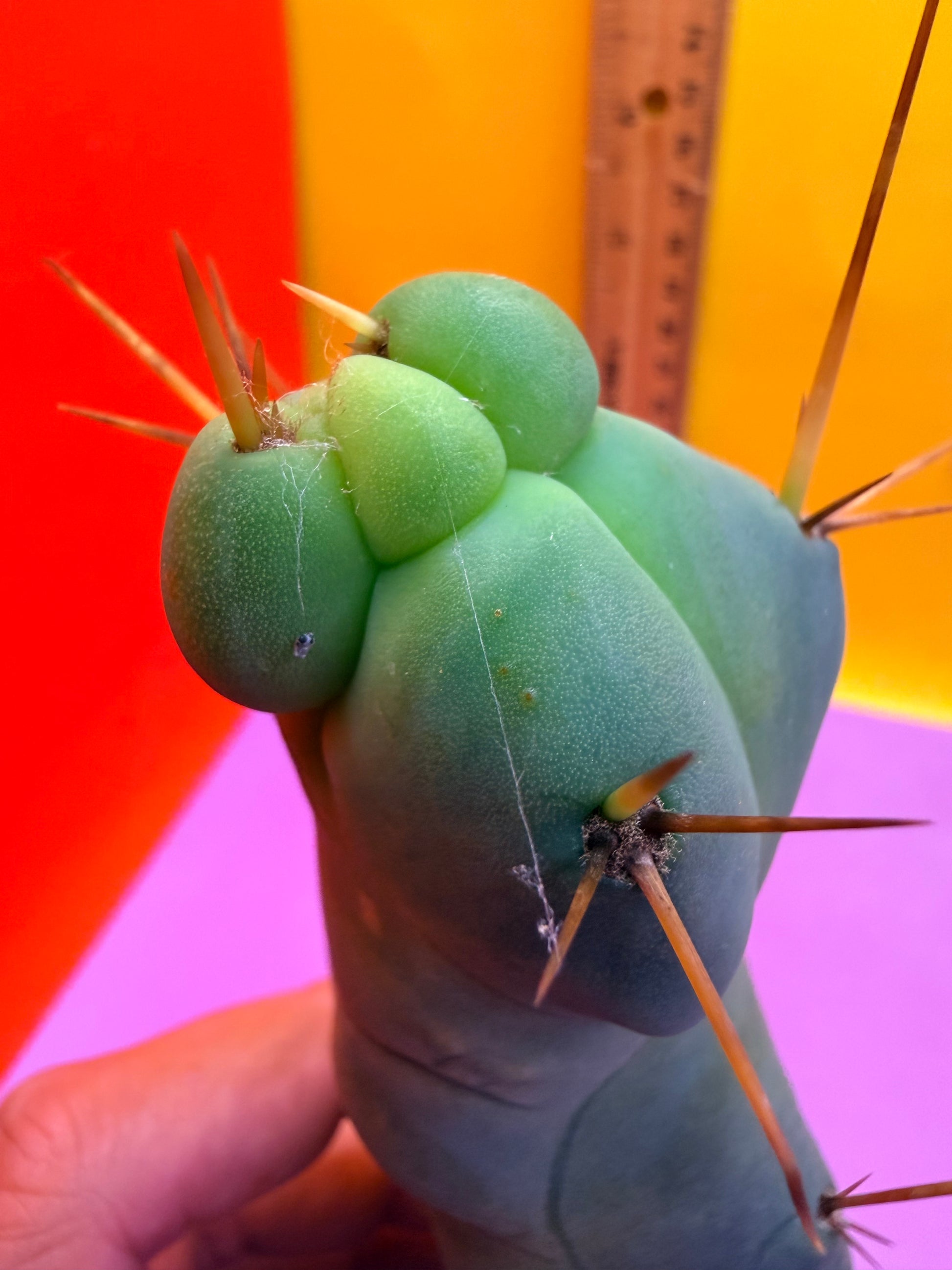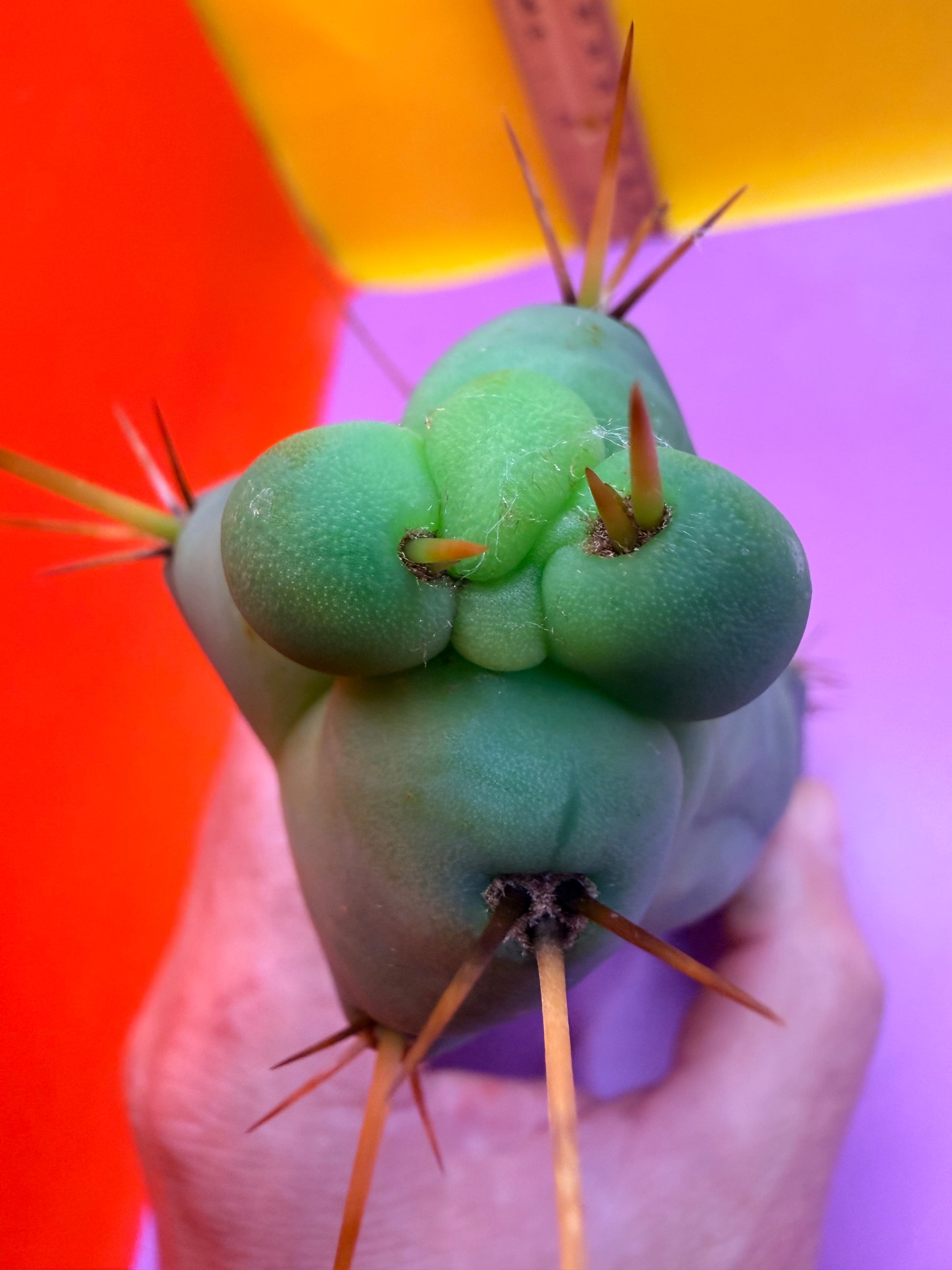 El Serpieñté originally comes from Cactus Ron . He is an older gentleman that lives near me and collects cacti . The clone “Son Of Ron” also comes from him ! The clone “El Serpieñté” received its name because it often grows a snake face top tip producing fang like spines that looks similar to a cobra 🐍! This clone was named years ago (not by me)& is rarely available, it has been seen throughout the past for sale on a few platforms but gets swooped up quickly!