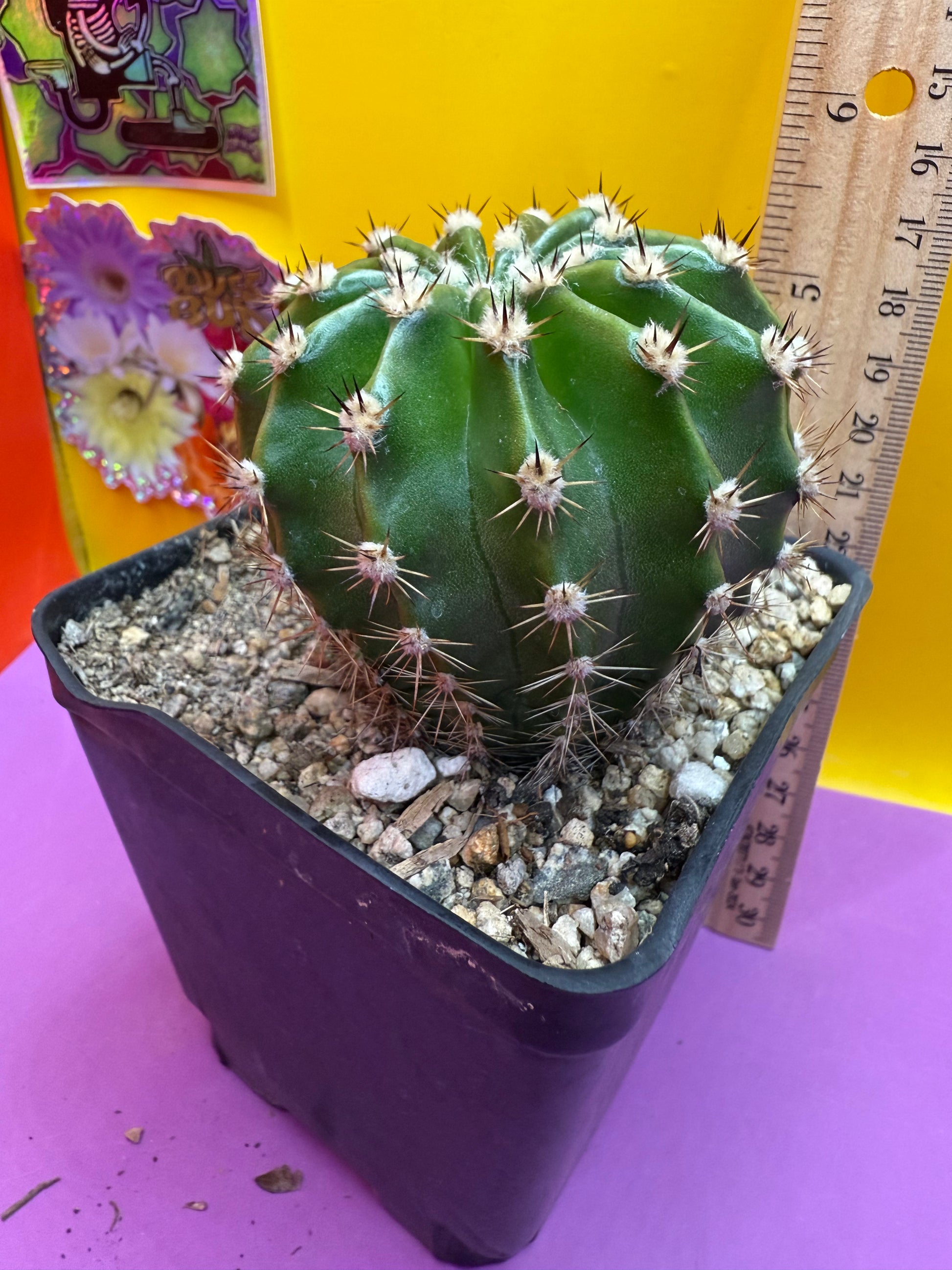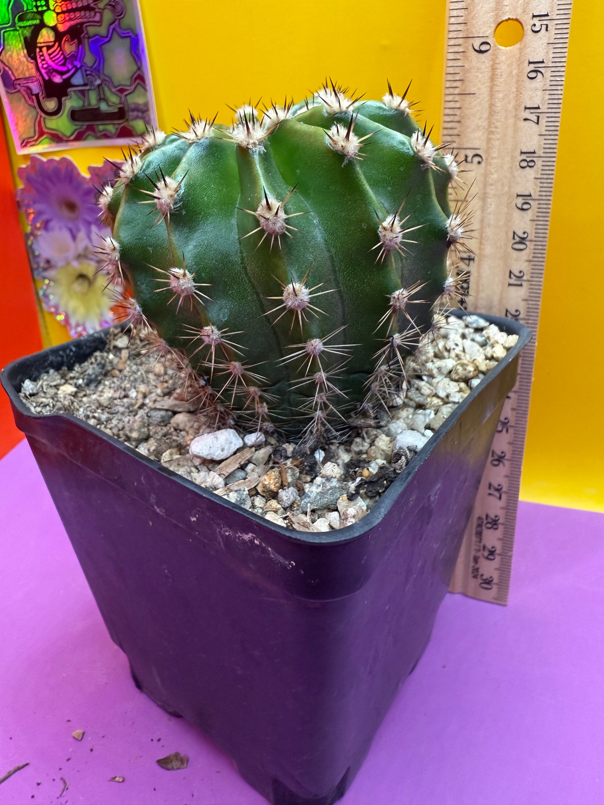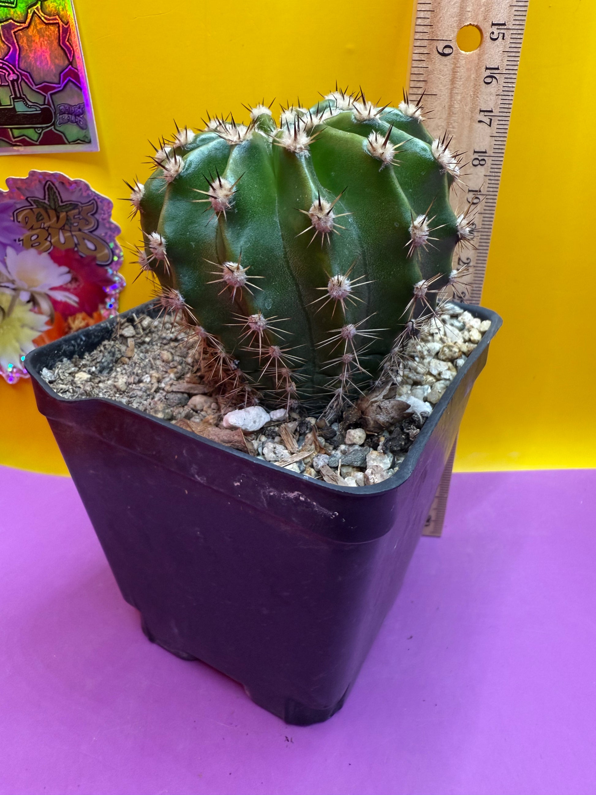 You will receive a cactus very similar to the one in the first 3 pictures. The Gorgeous blooms are example photos , this cactus flowers at a young age and will become a motherplant quite quickly! It produces many pups around the base becoming a cluster of ball shaped cactus that can be left to grow as a clumping stand or they can be removed to propagate and grow many more !! As a youngster it will make awesome flowers that are much larger than the cactus itself and as it matures it will pump out entire bouquets of blooms !! Definitely a cactus that will make you proud and also a really fun one to be able to share with friends and family!!!