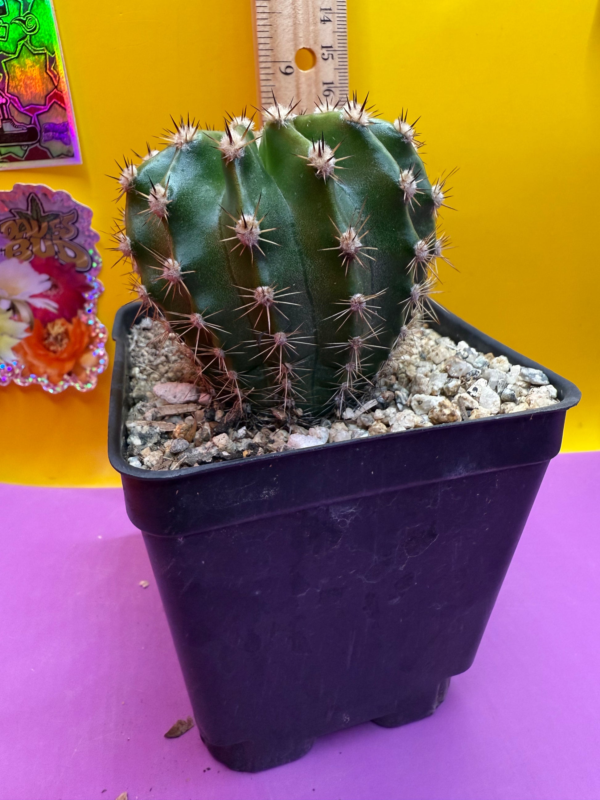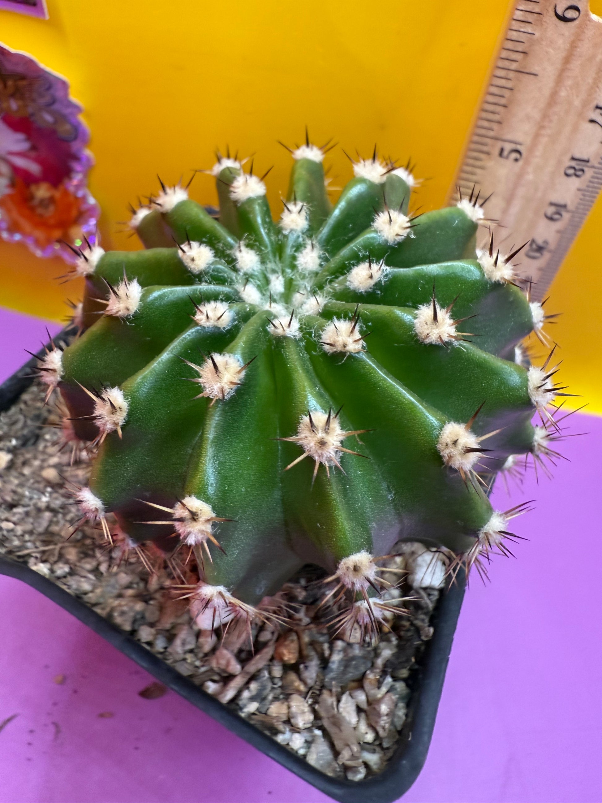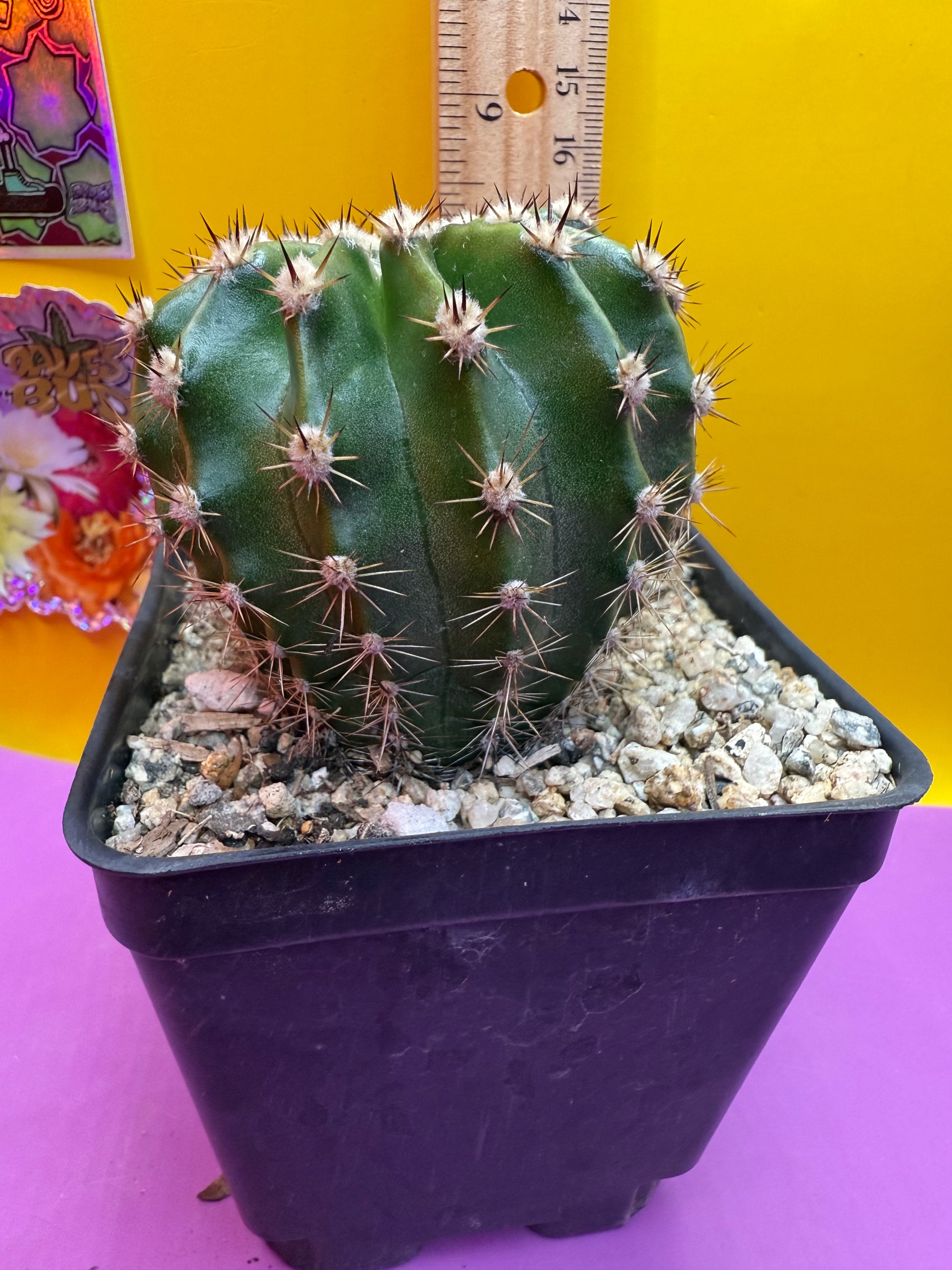 You will receive a cactus very similar to the one in the first 3 pictures. The Gorgeous blooms are example photos , this cactus flowers at a young age and will become a motherplant quite quickly! It produces many pups around the base becoming a cluster of ball shaped cactus that can be left to grow as a clumping stand or they can be removed to propagate and grow many more !! As a youngster it will make awesome flowers that are much larger than the cactus itself and as it matures it will pump out entire bouquets of blooms !! Definitely a cactus that will make you proud and also a really fun one to be able to share with friends and family!!!