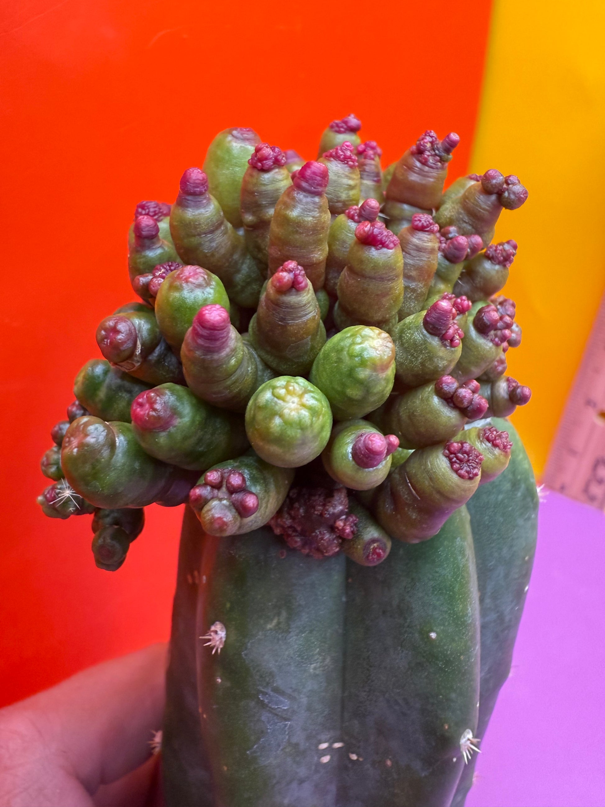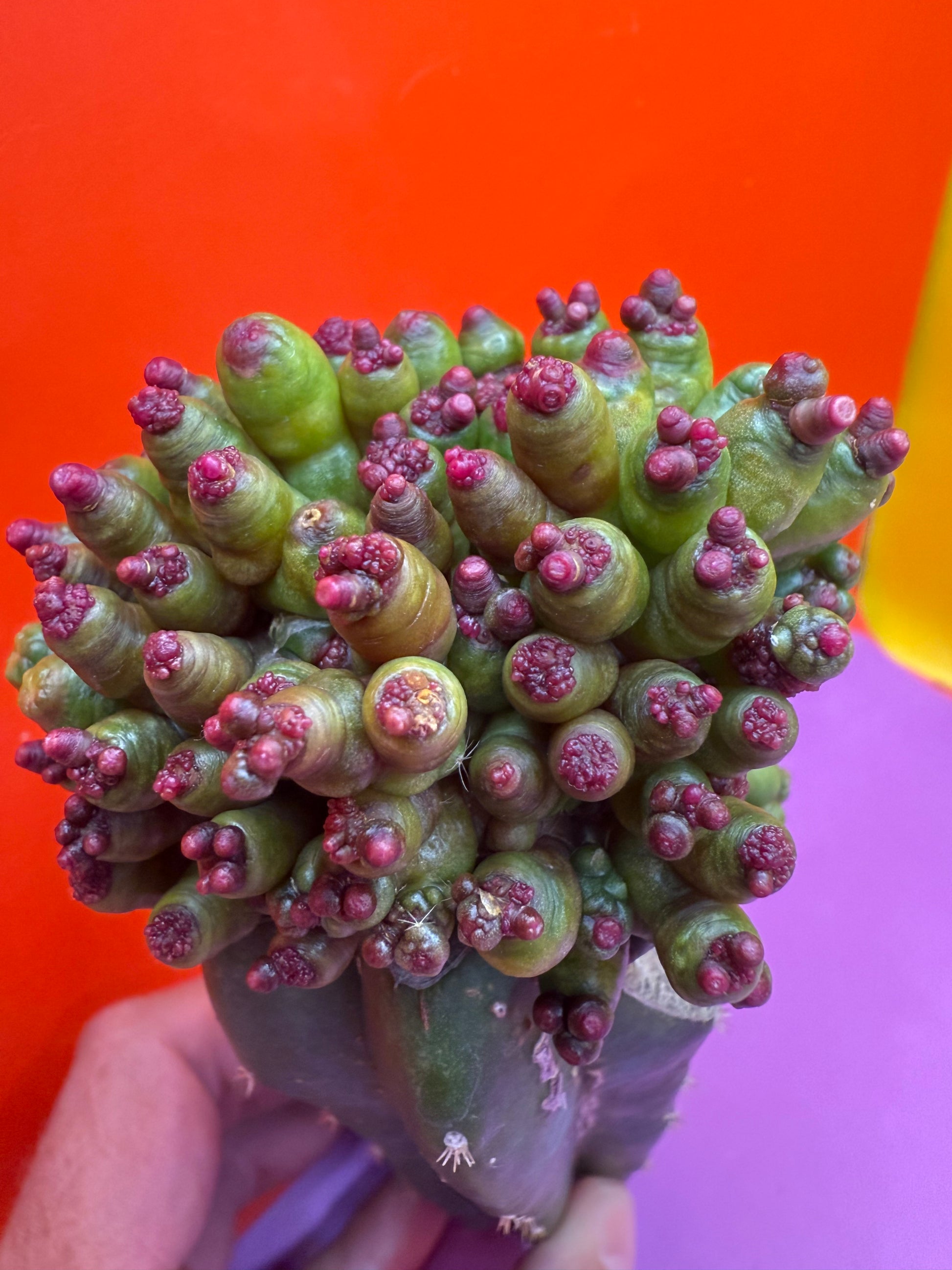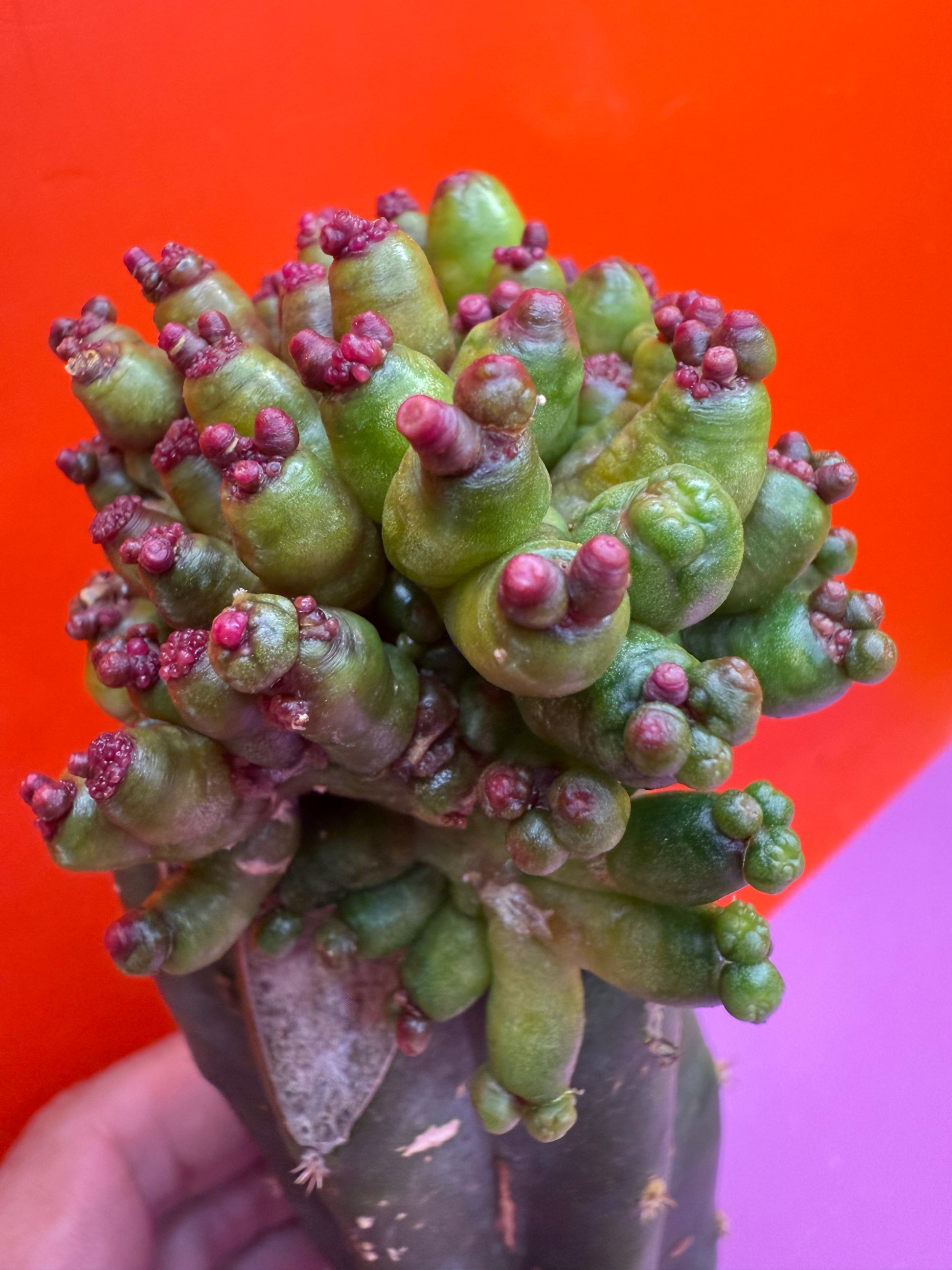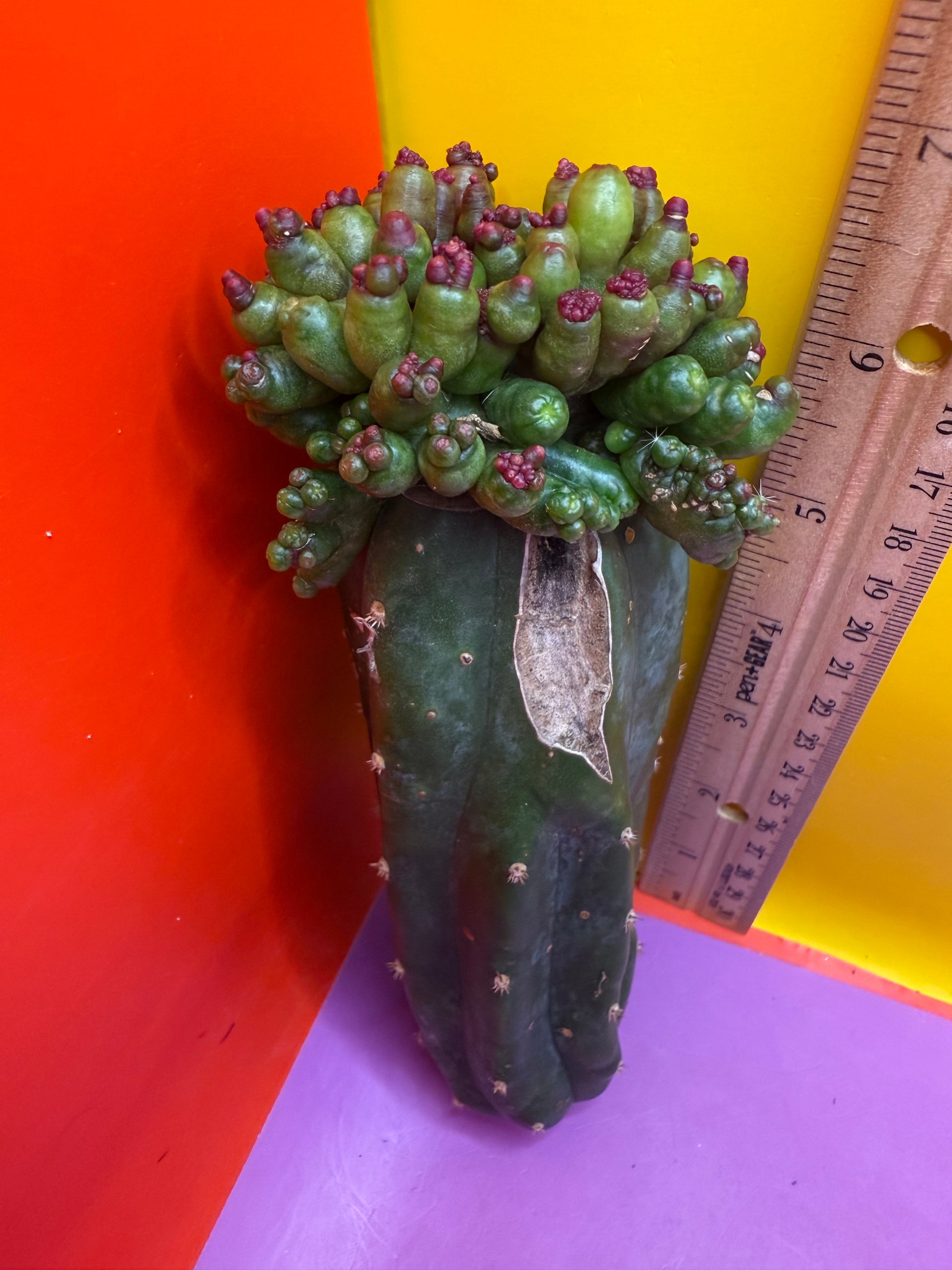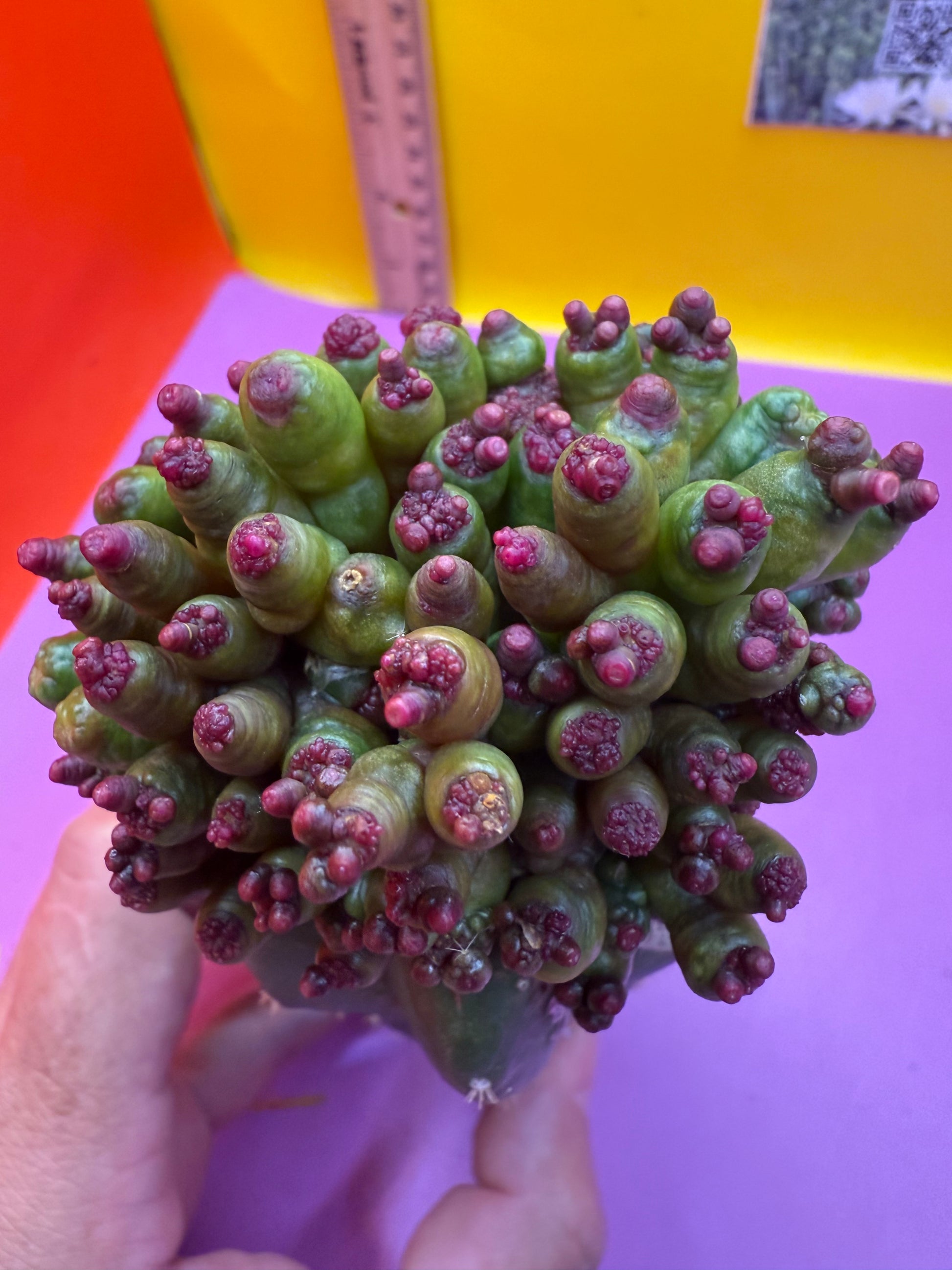 You will receive this exact grafted monstrose cactus . Fred is a unique cactus clone that is sought after by collectors worldwide! This particular grafted “Fred” is a monstrose Cristata form with beautiful red coloration on the tips . The graft is cut clean and ready to be planted exactly as you see it . Fred does grow well on its own roots but grows even faster as a graft . All sides are pictured and there is quite a lot of tips here . This will continue to bush out and grow larger and also has the potential for propagation! You could make tons of grafts of your own out of this mother plant !