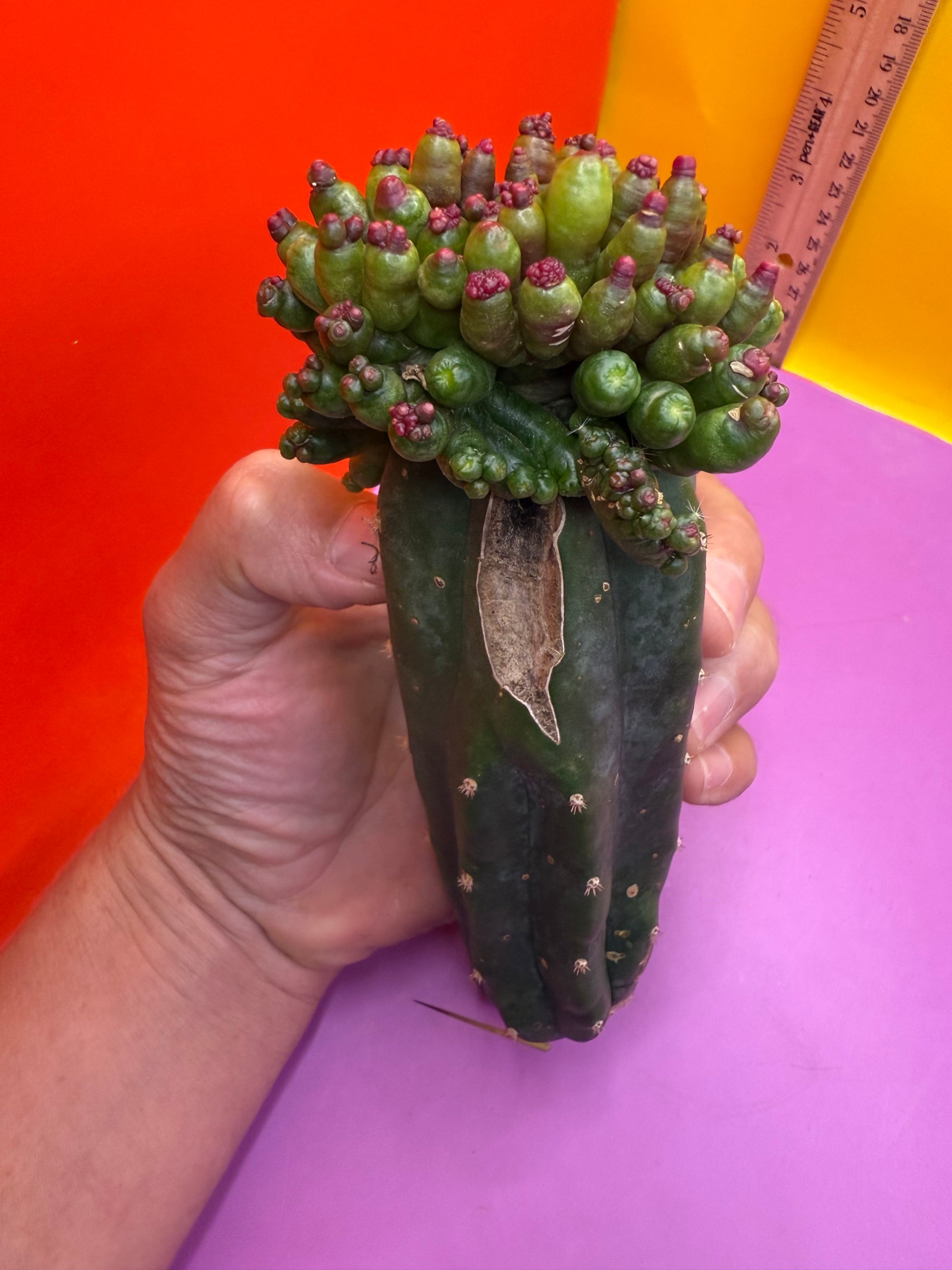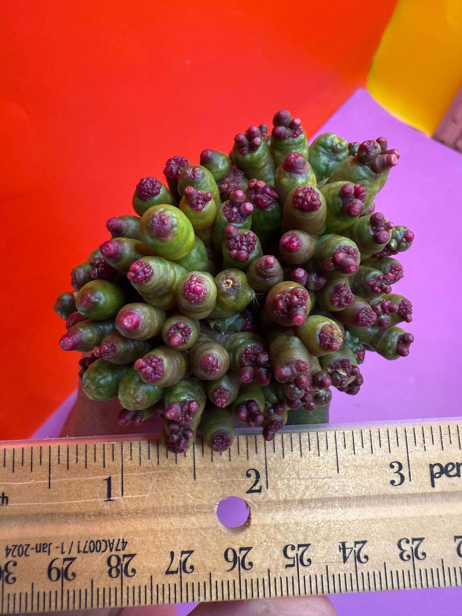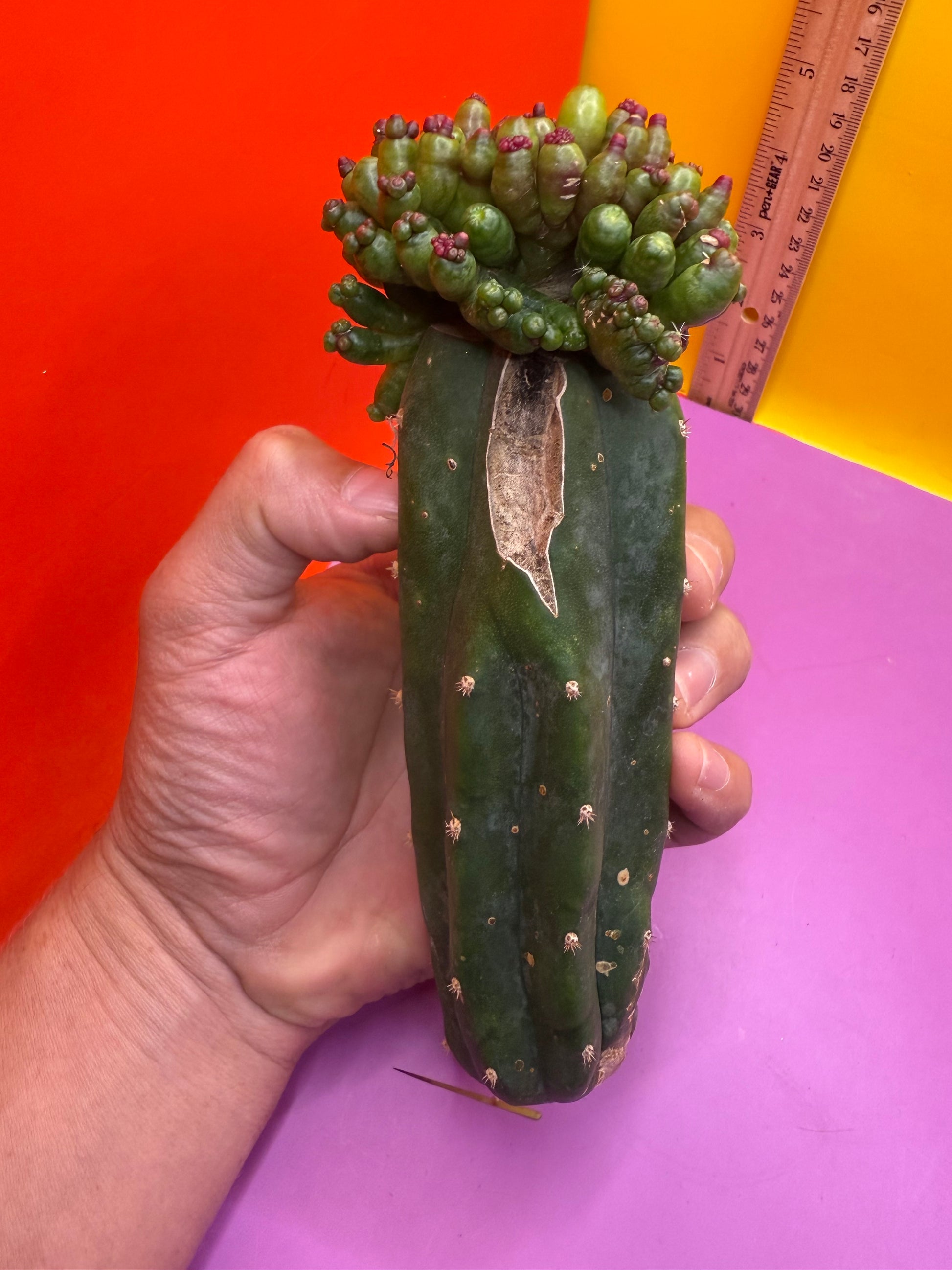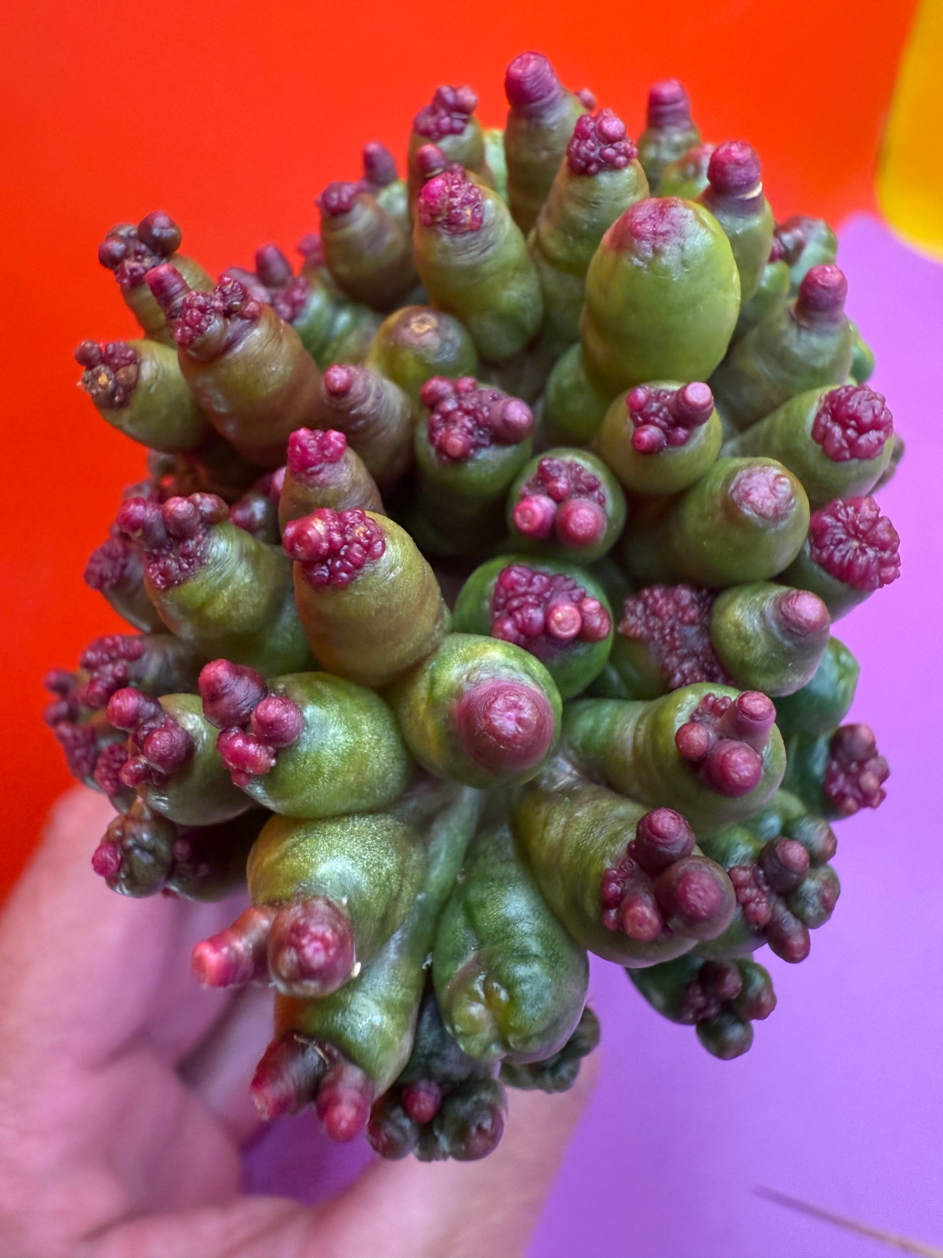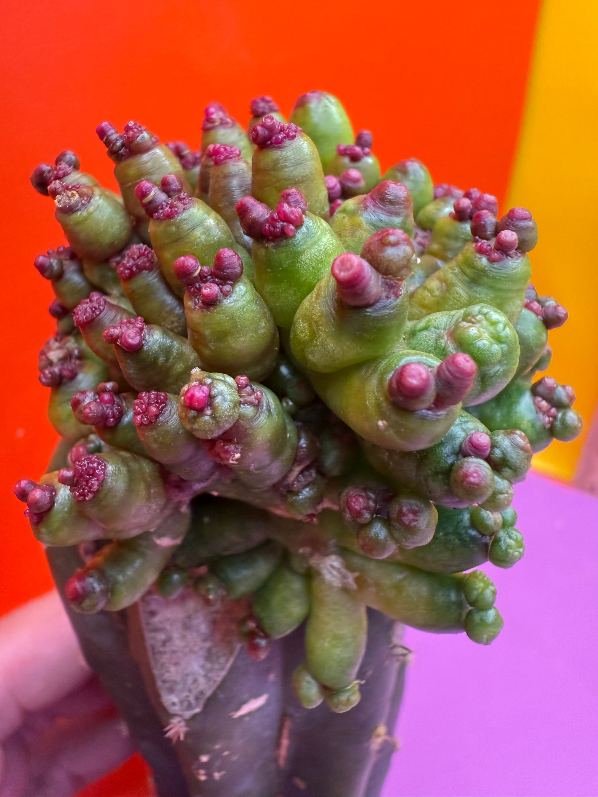 You will receive this exact grafted monstrose cactus . Fred is a unique cactus clone that is sought after by collectors worldwide! This particular grafted “Fred” is a monstrose Cristata form with beautiful red coloration on the tips . The graft is cut clean and ready to be planted exactly as you see it . Fred does grow well on its own roots but grows even faster as a graft . All sides are pictured and there is quite a lot of tips here . This will continue to bush out and grow larger and also has the potential for propagation! You could make tons of grafts of your own out of this mother plant !