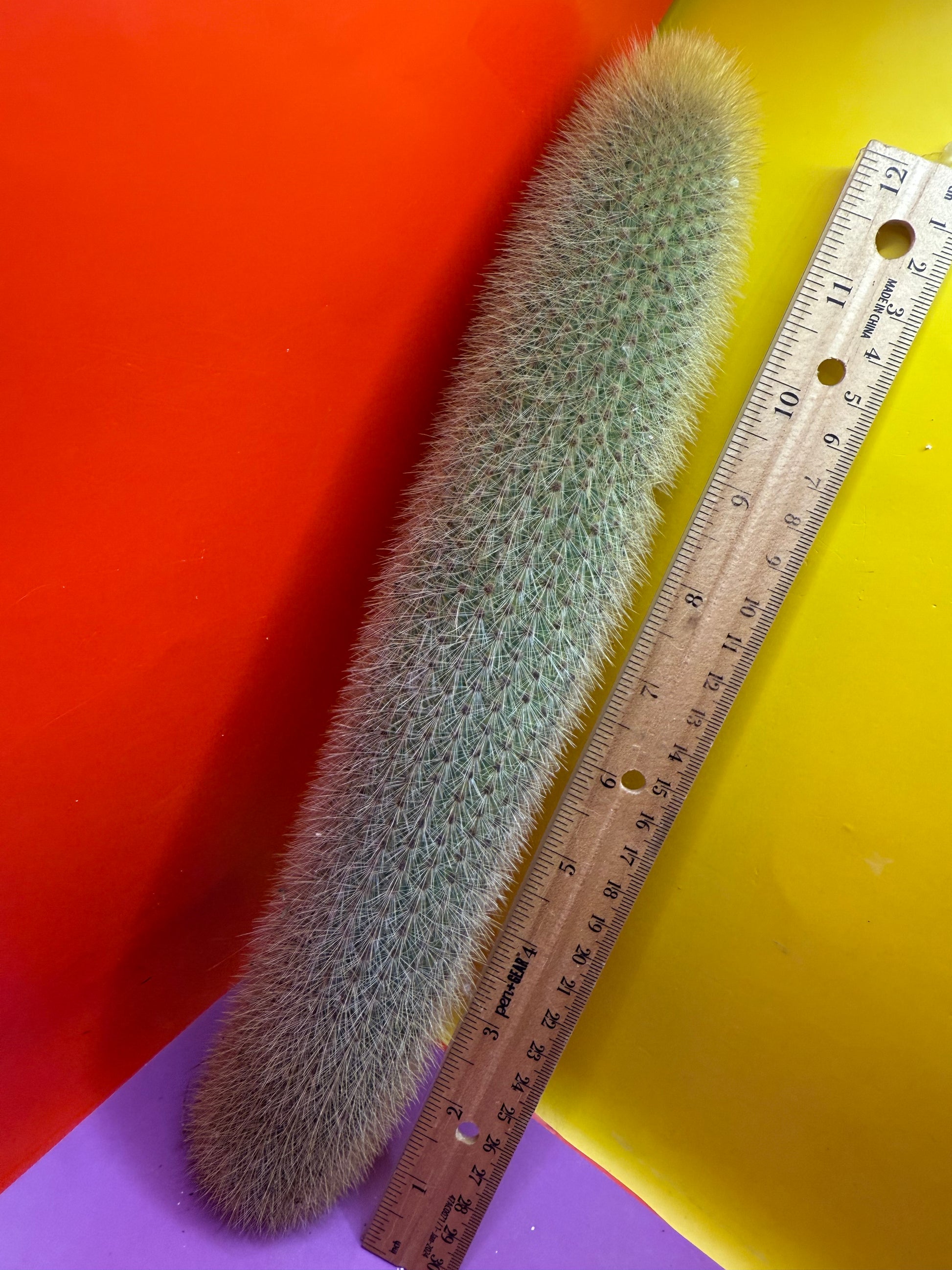 You will receive this exact cutting - ready to ship , one foot tall with a perfect callous , ready to be planted upon arrival. Beautiful columnar cacti , brilliant yellow spines that do not fade ! This cactus reaches 20 feet in height often branching once mature. Tends to stay as a single column in its younger stage , immediately producing furry yellow spines and eventually gaining a huge hairy like head , almost lion mane in appearance! This cacti was discovered in 1951 by famous nurseryman Harry Johnson on his second South American expedition and received his name , hence “johnsonii” . I personally grew , cut , and calloused this cactus and I took the pictures myself as a reference of the mamas !