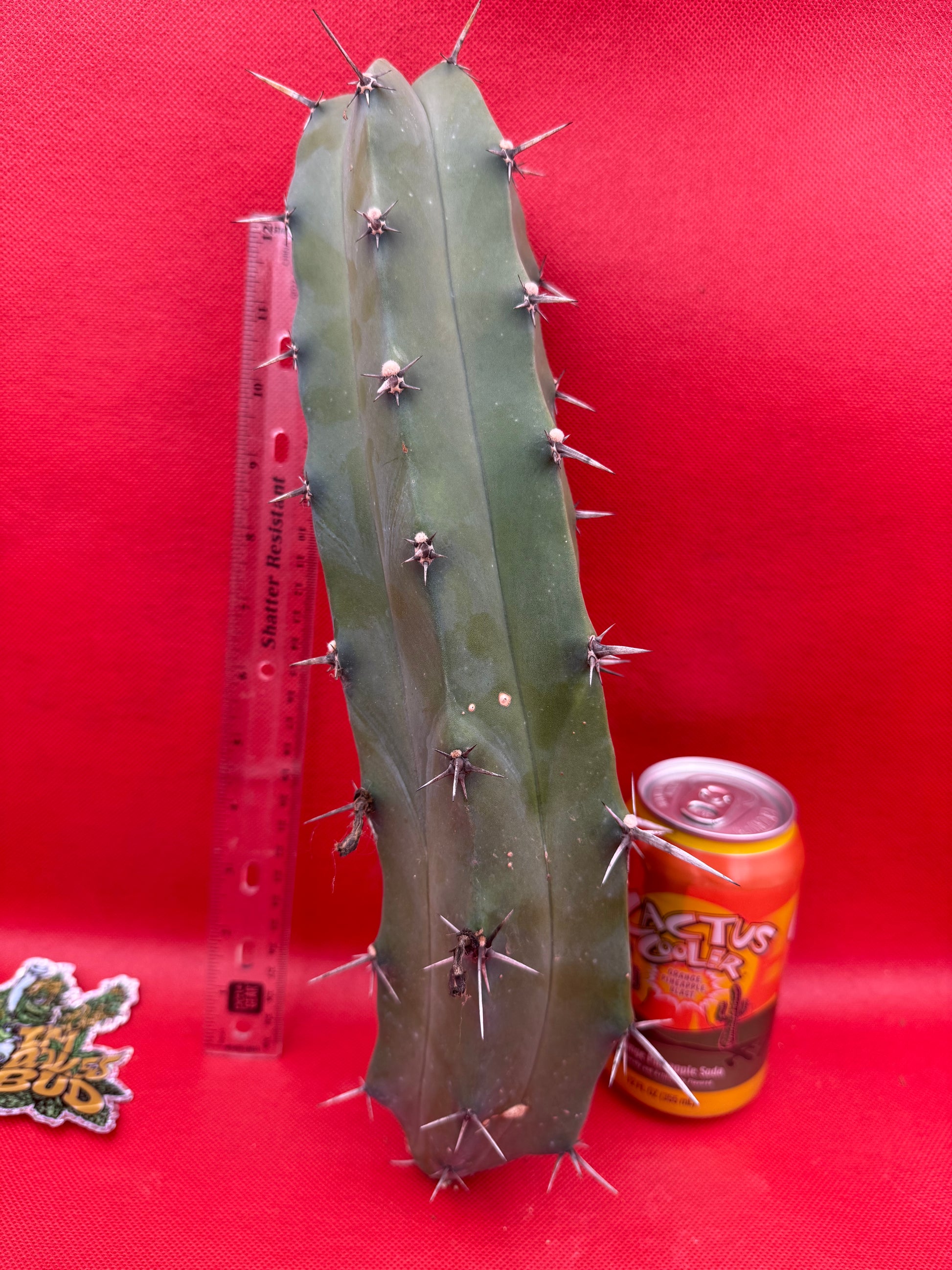 Blue Myrtillocactus with new flower buds forming !! You will receive this exact cutting and it does have furry buds forming , so it will most definitely bloom soon ! This is a mature cutting that will root fast and grow quick ! This type of cactus regularly grows branches and produces a delicious fruit a lot like blueberries 🫐. Gets a creamy colored flower that then turns to fruit . Great addition to any collection! Fresh cut and ready to ship today !