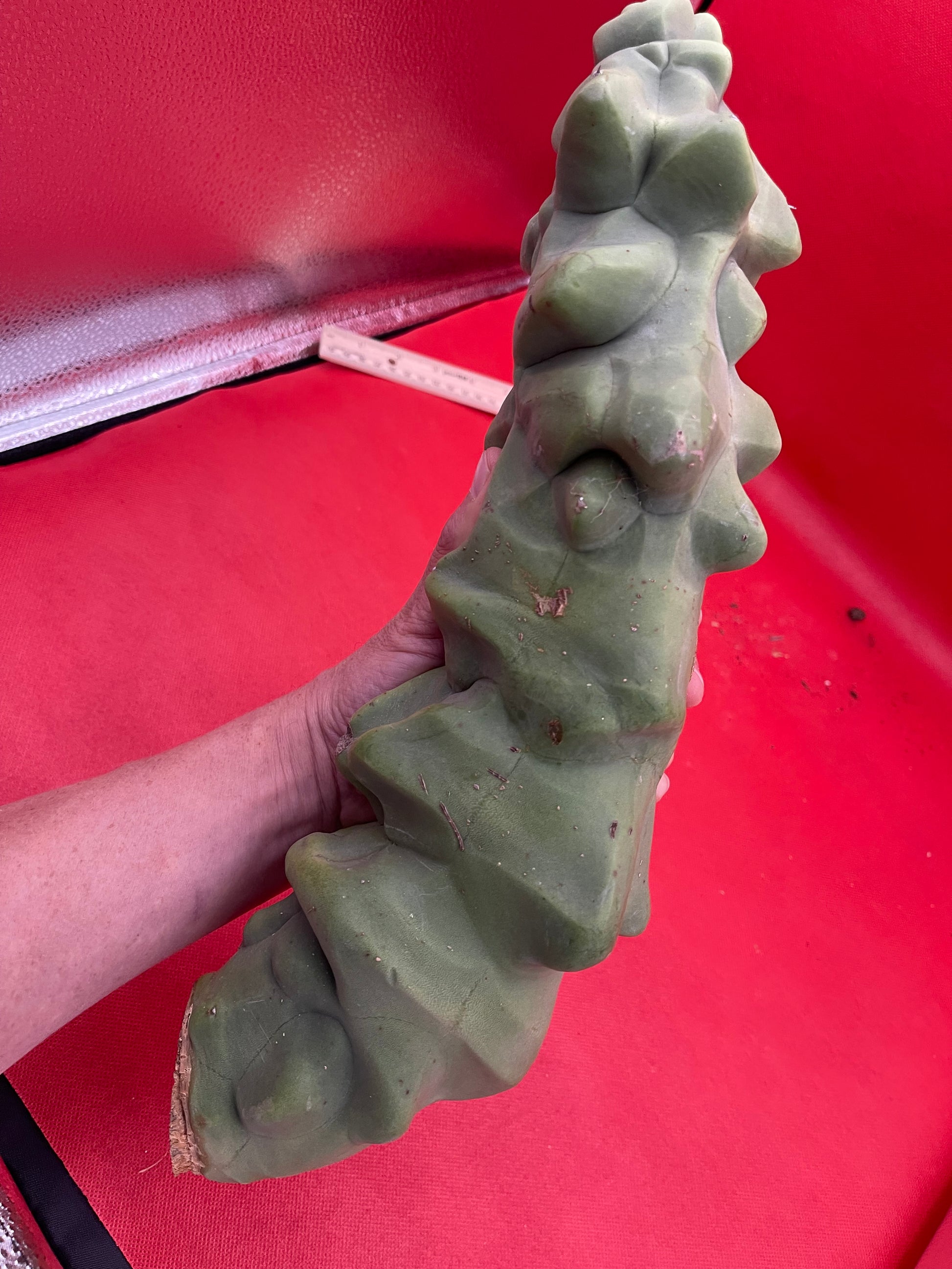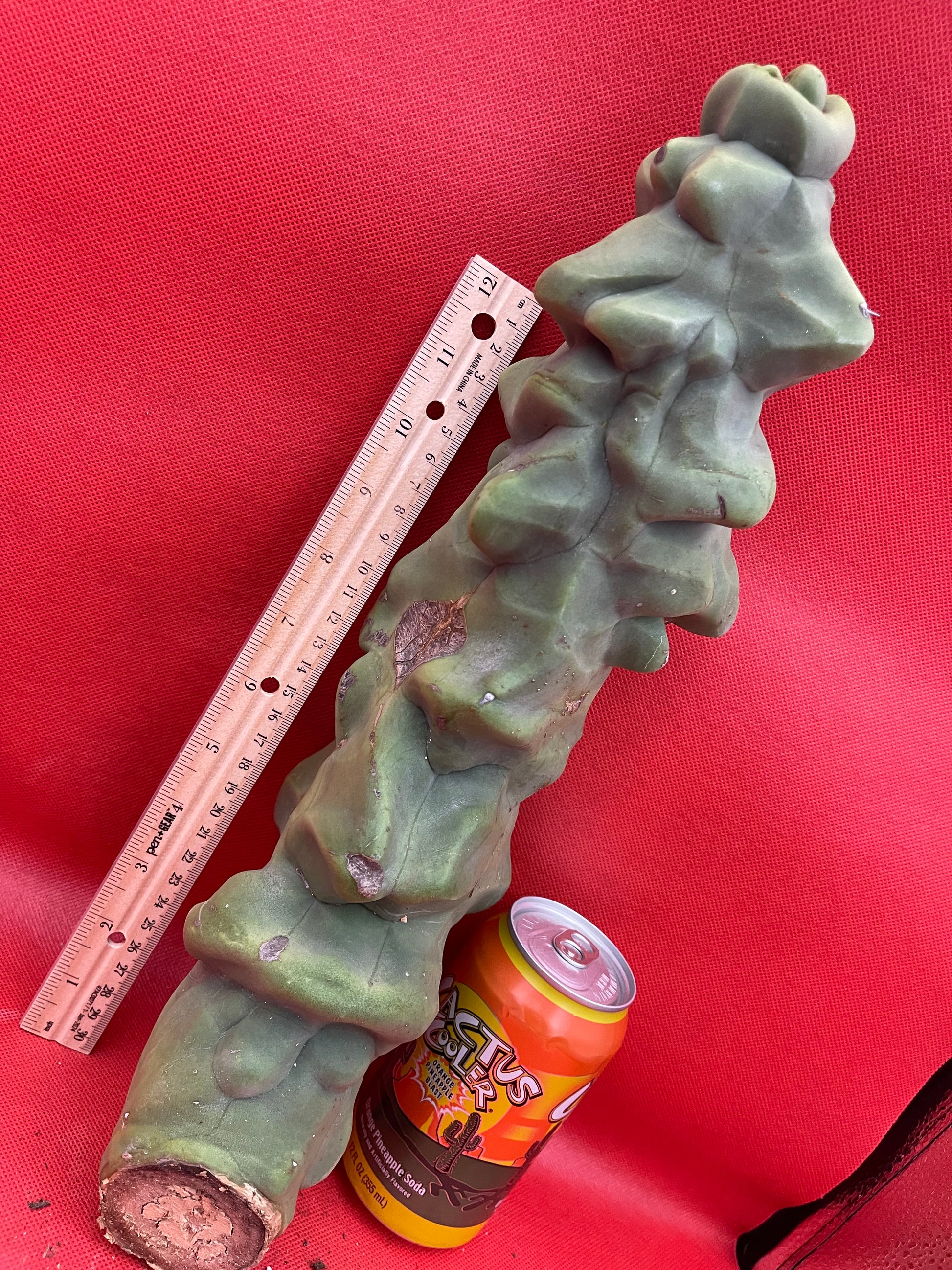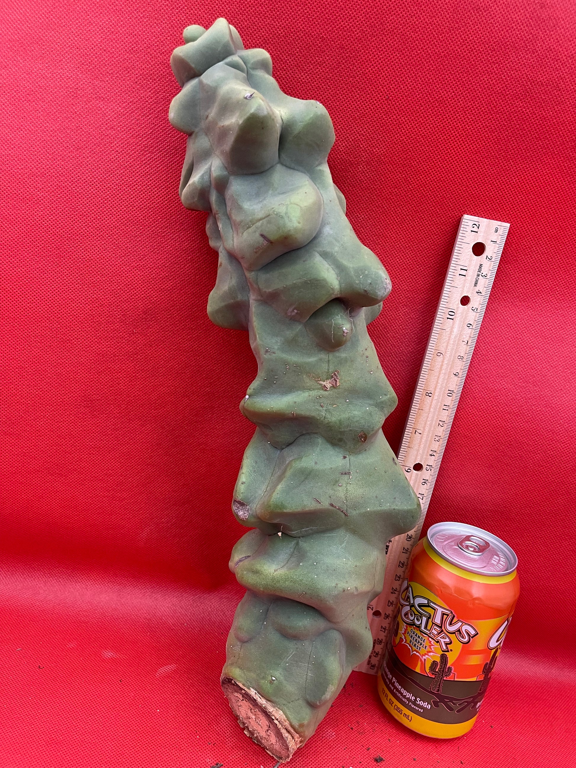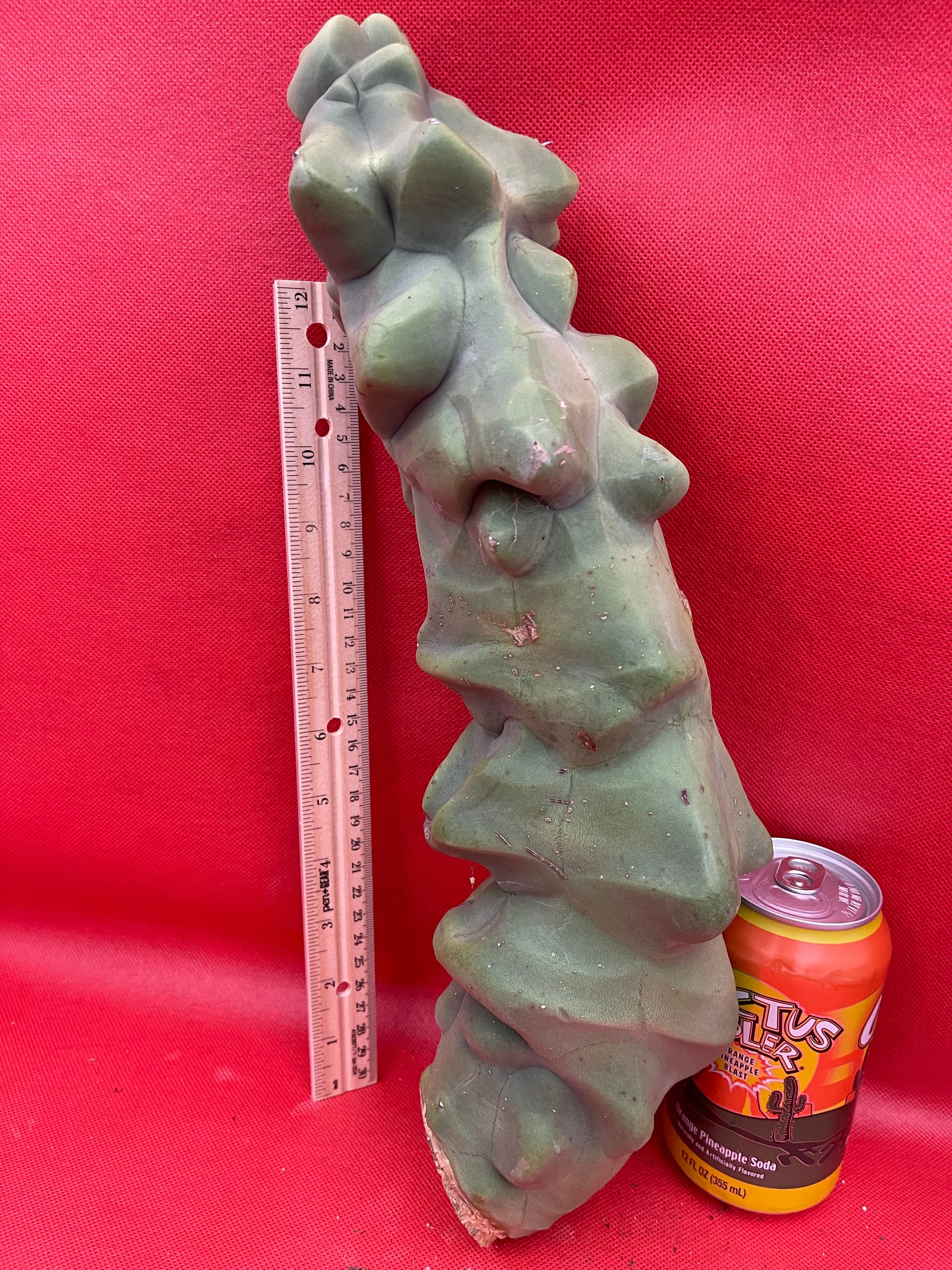 Lophocereus schottii Monstrose “obesa” You will receive this exact cutting shown here and all sides of the cactus are pictured- ruler is in inches and centimeters, & the soda can and my arm are pictured for size reference!!