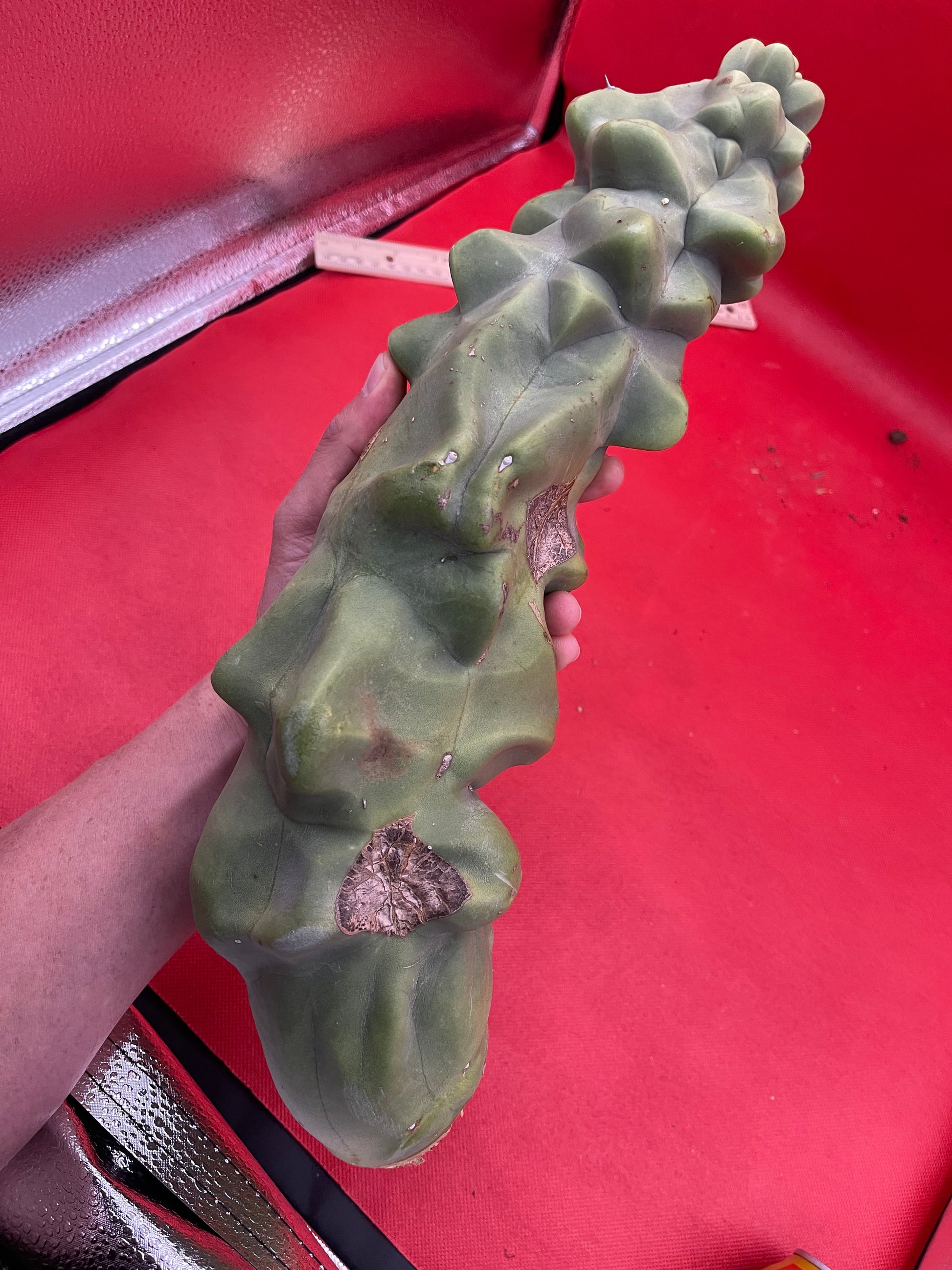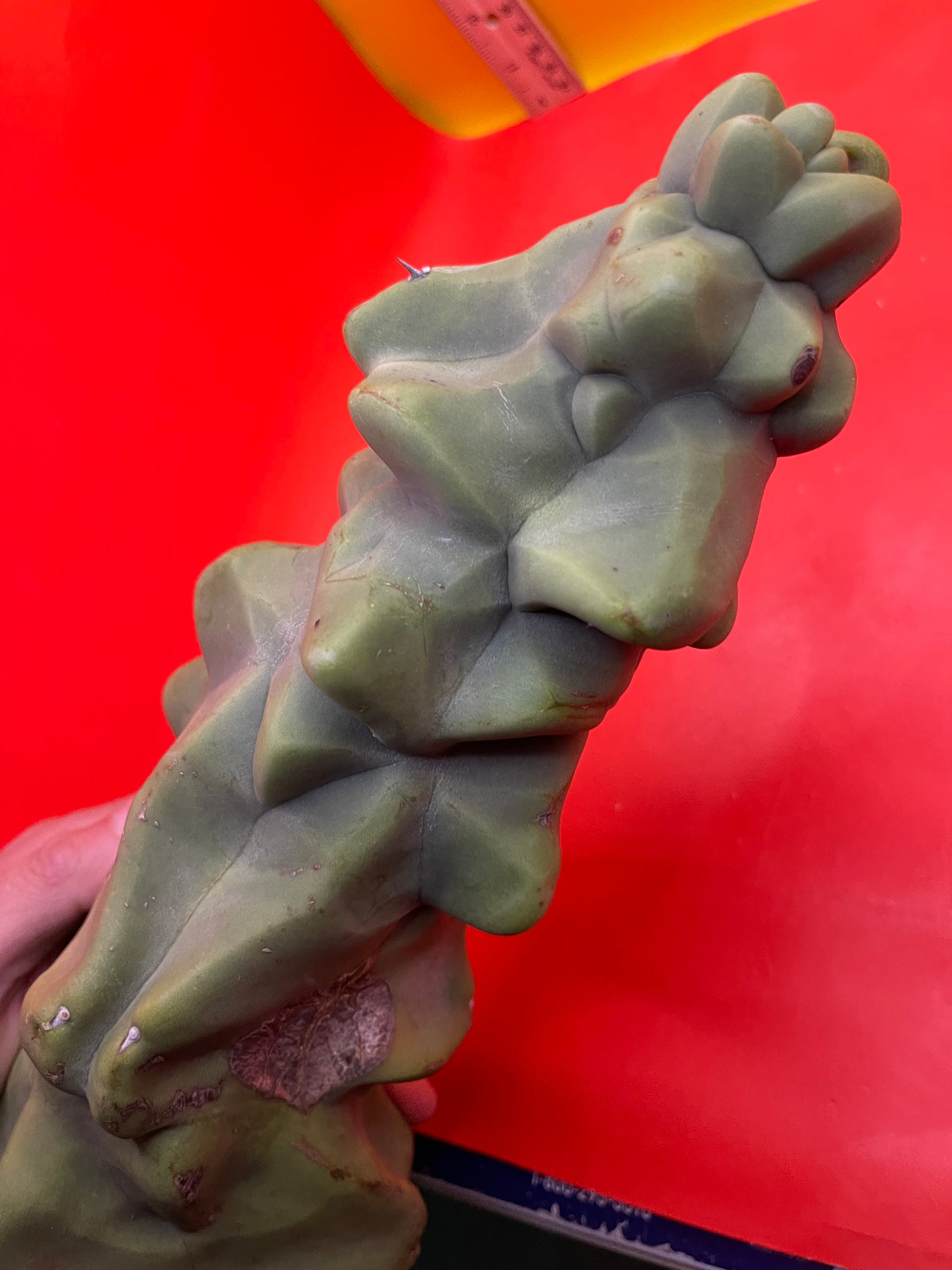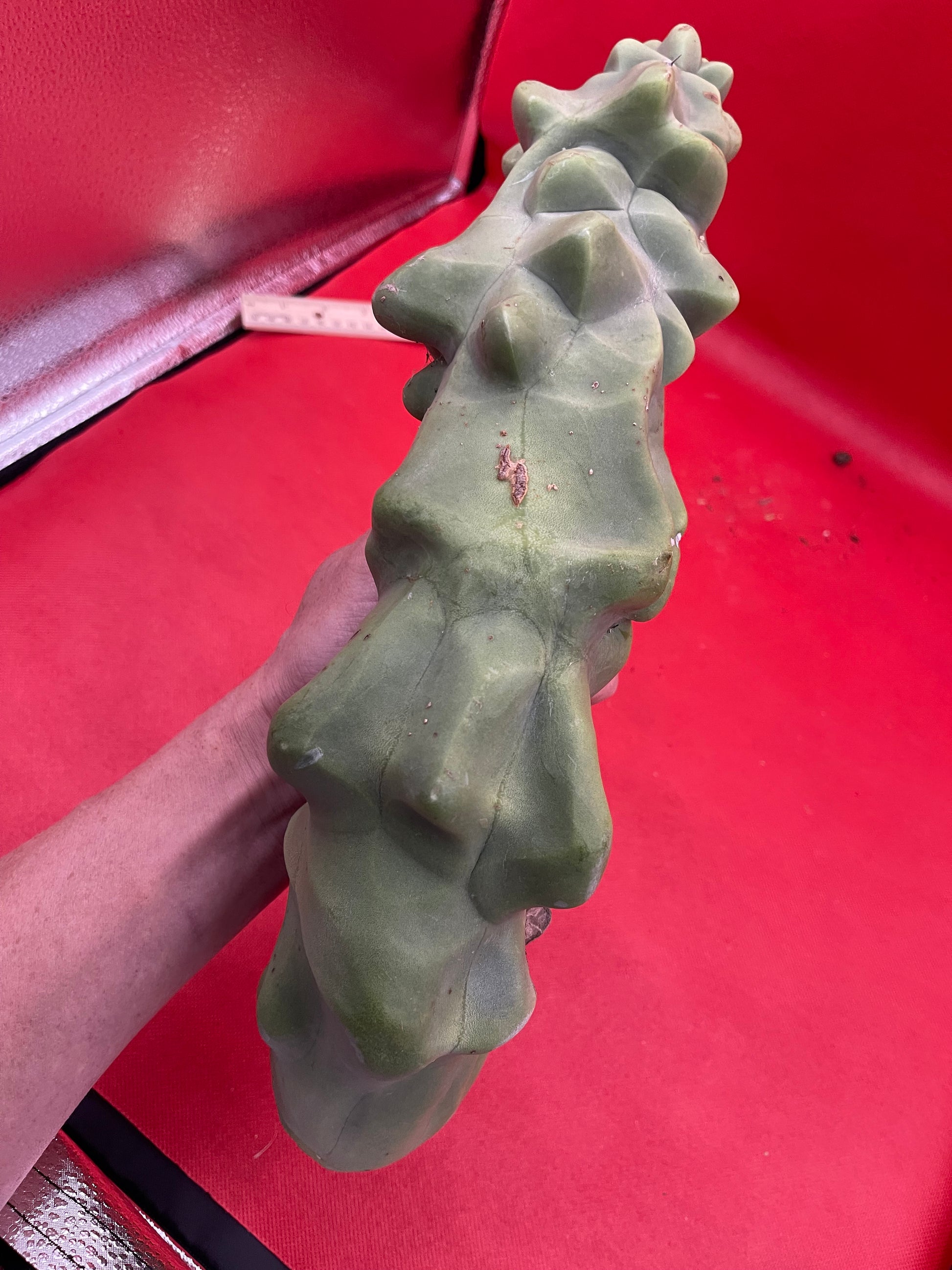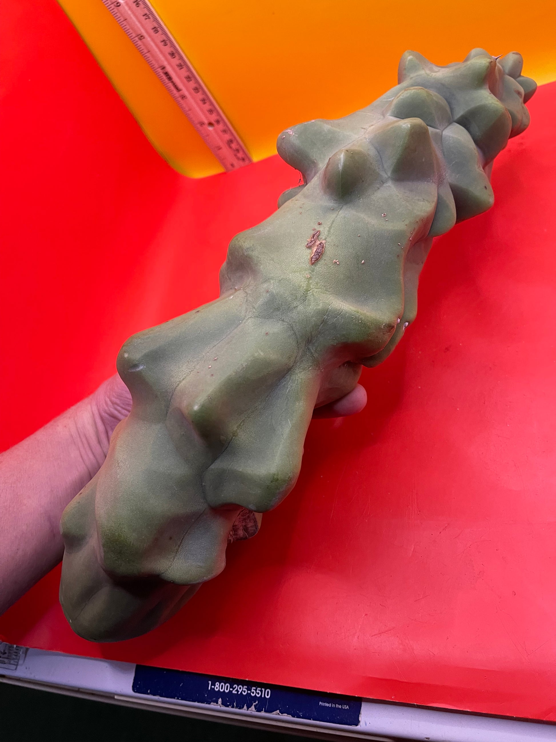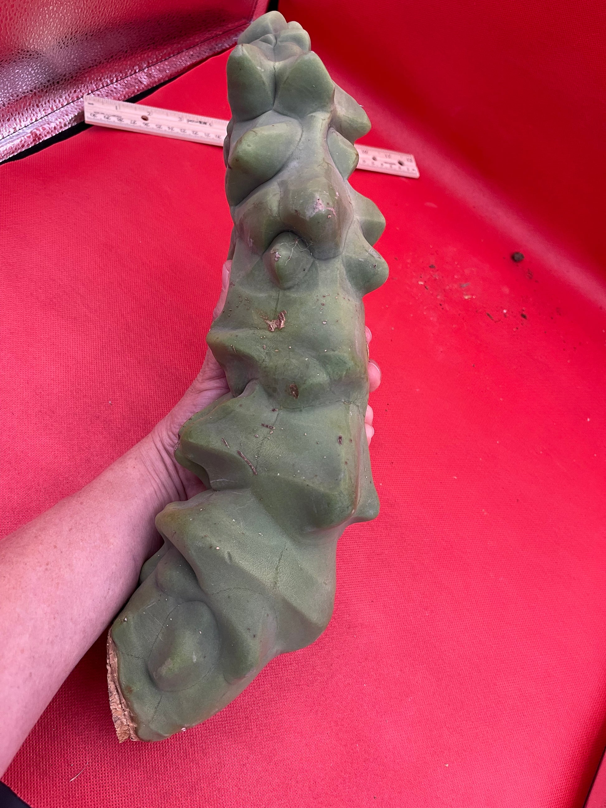 Lophocereus schottii Monstrose “obesa” You will receive this exact cutting shown here and all sides of the cactus are pictured- ruler is in inches and centimeters, & the soda can and my arm are pictured for size reference!!