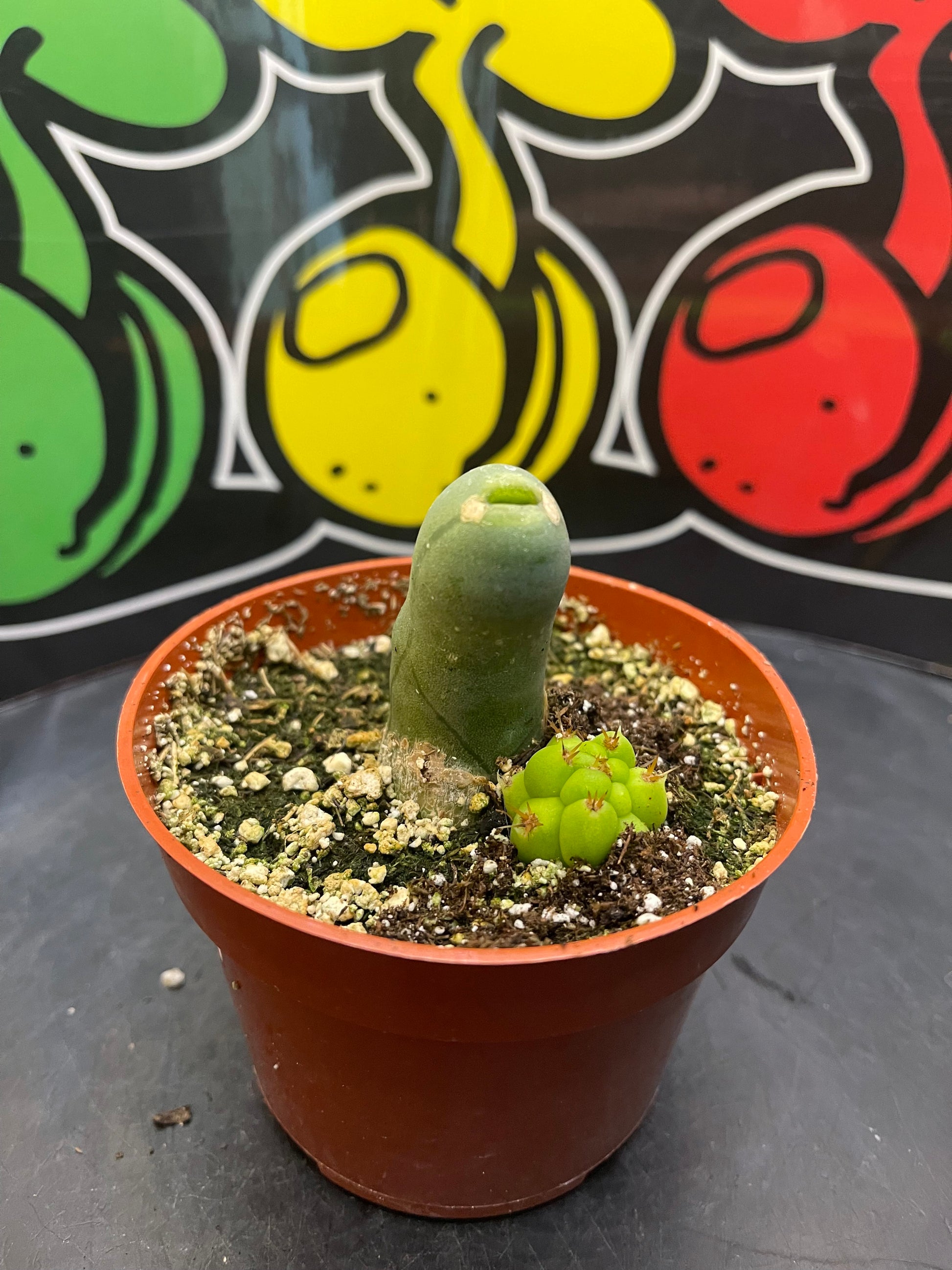 Trichocereus bridgesii monstrous Type B - shortform ! This is a 4” pot , fully rooted , it will arrive just the way you see it , in its pot , with it’s top dressing - I’ll pack it with love and care so it arrives safe and sound ! This just started growing a new strong section that will continue to grow and get long !
