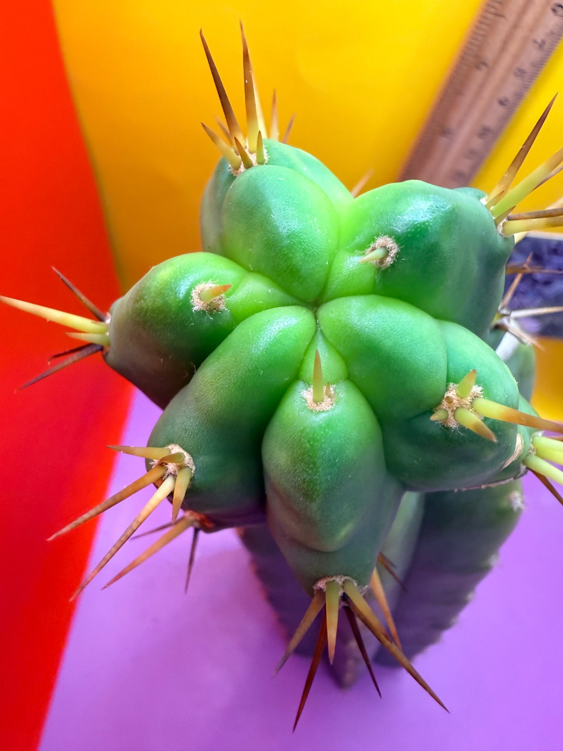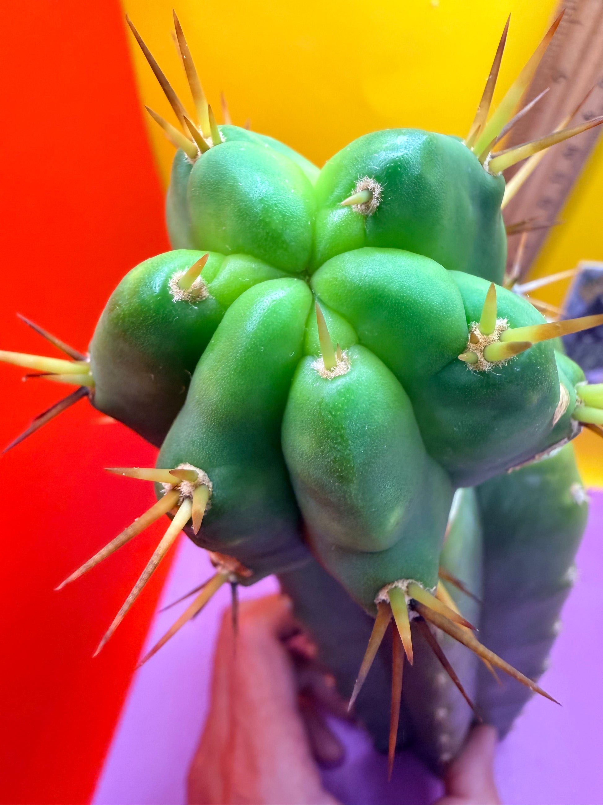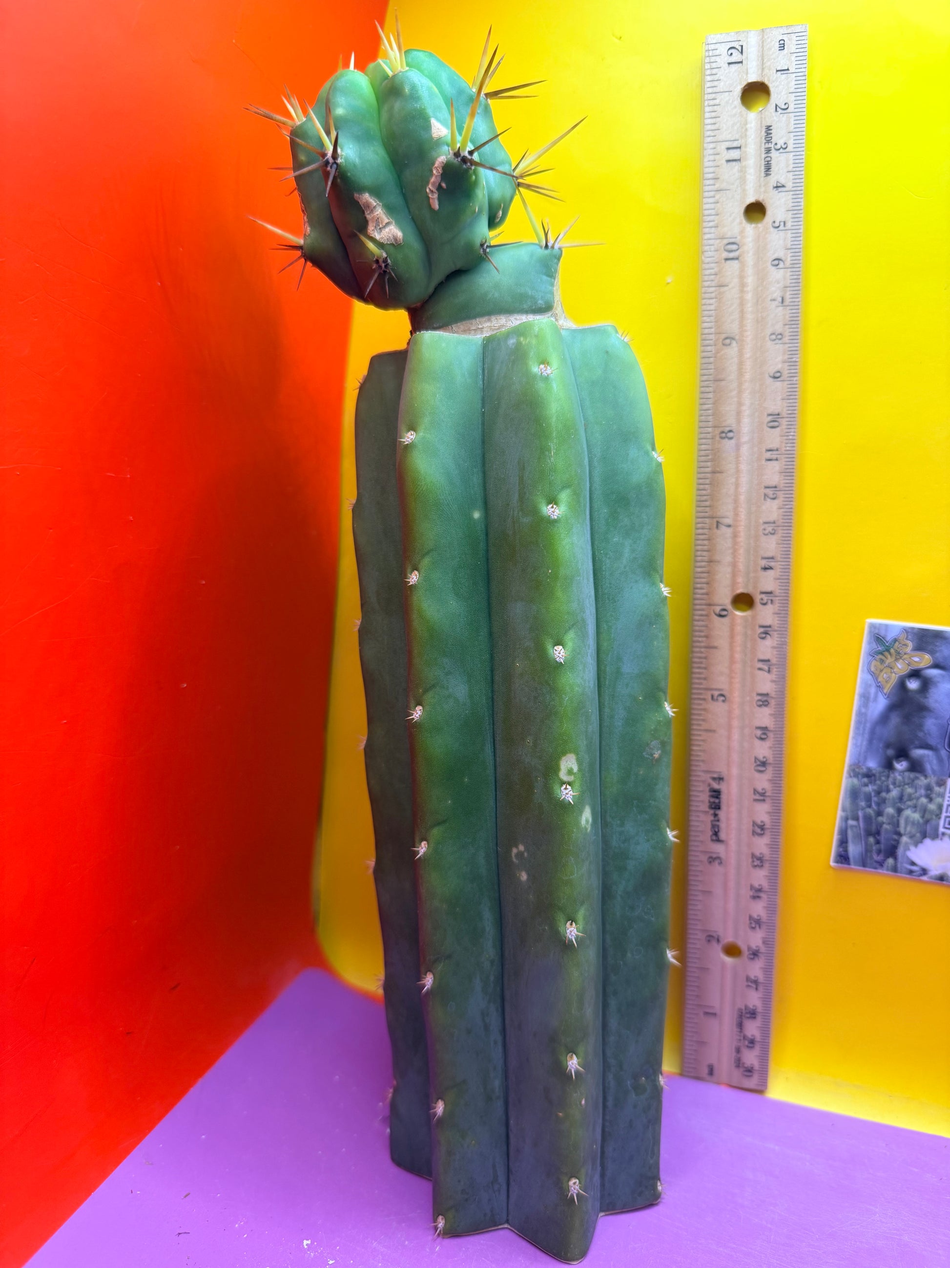 Sso2 is a very spicy and athletic trichocereus bridgesii and p.c. Is a very hardy and strong San Pedro cactus . This cultivar has the best of both qualities and is very fast growing, spicy , and hardy . This cultivar doesn’t easily get any humidity spots or black wounds and looks extremely similar to its mother Ss02 !
