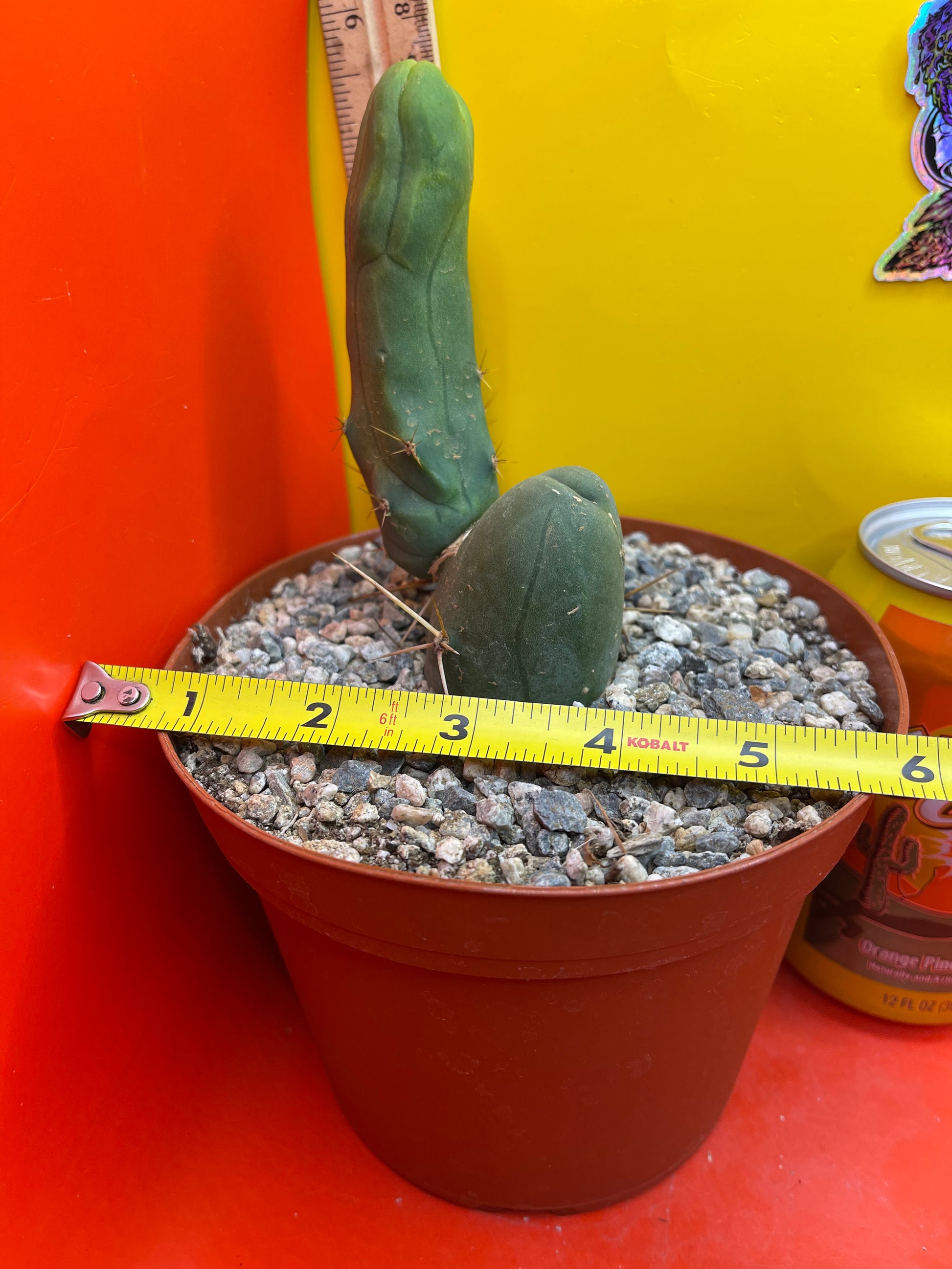 Exact cactus you will receive is the picture Trichocereus Bridgesii Monstrose - TBM type B short form . Fully rooted , ships in its pot ! 6” wide pot - cactus is approximately 8” tall in its pot - you will receive this exact cactus . All sides pictured , ruler in inches and soda can is for size reference.