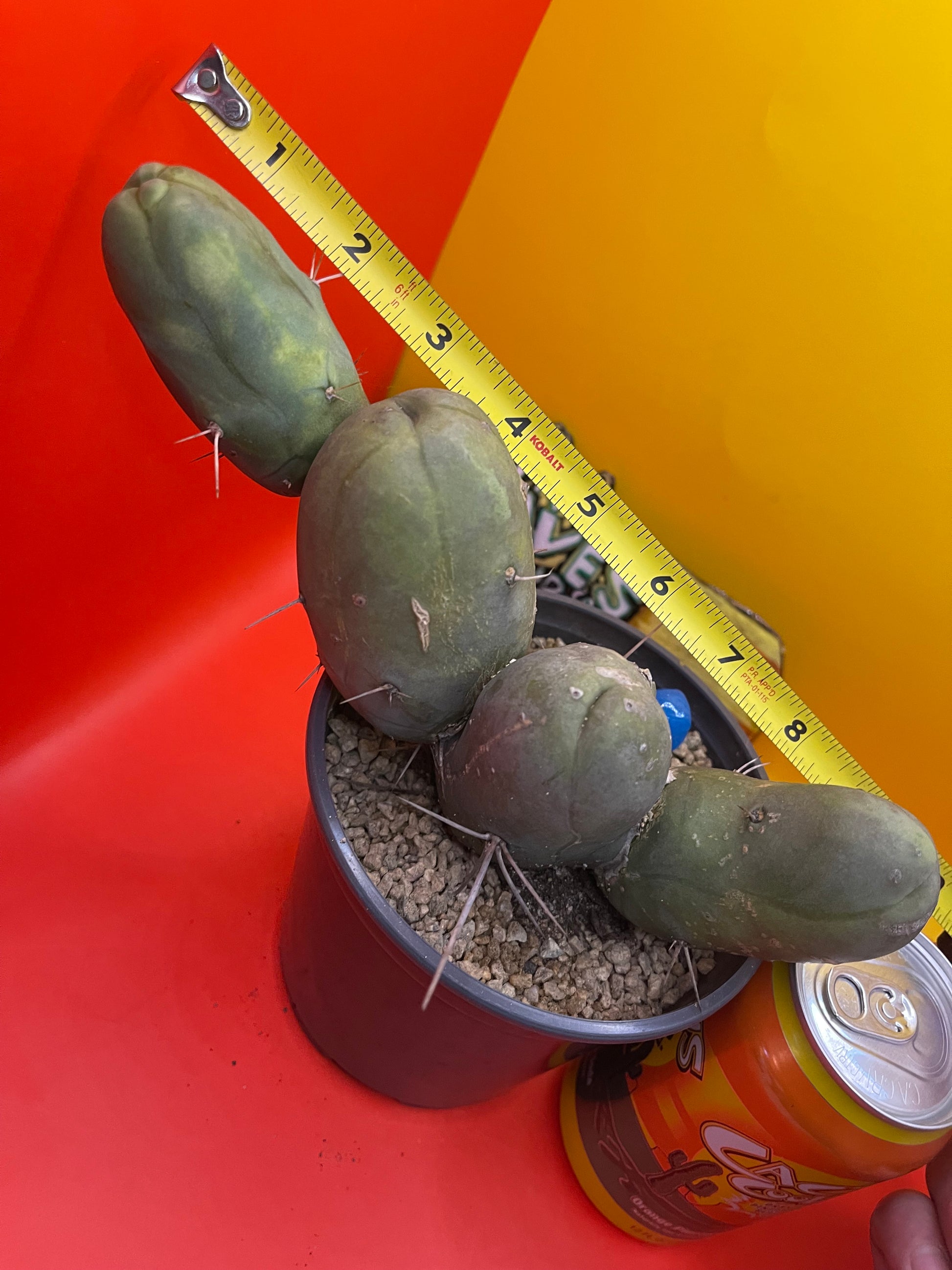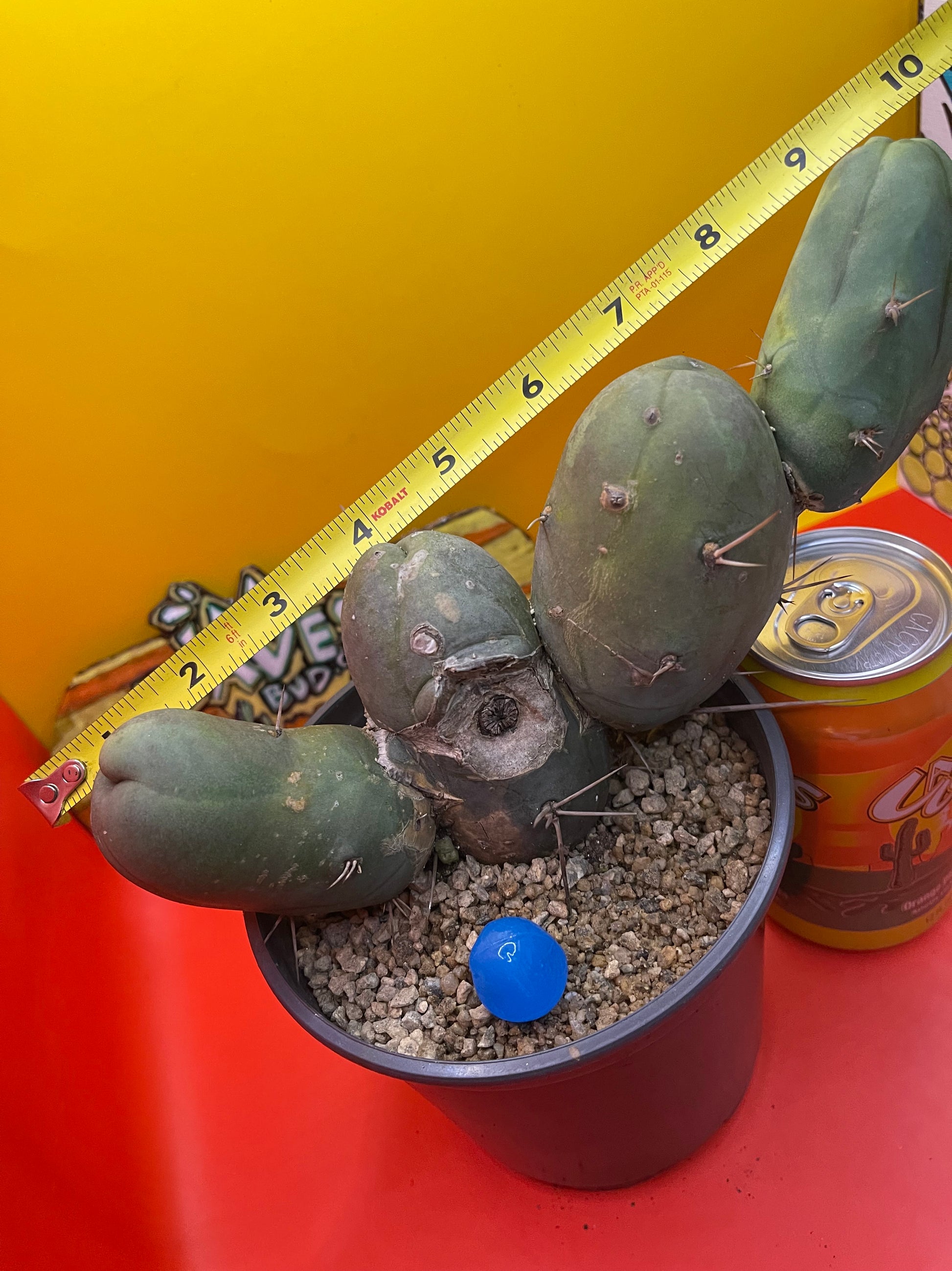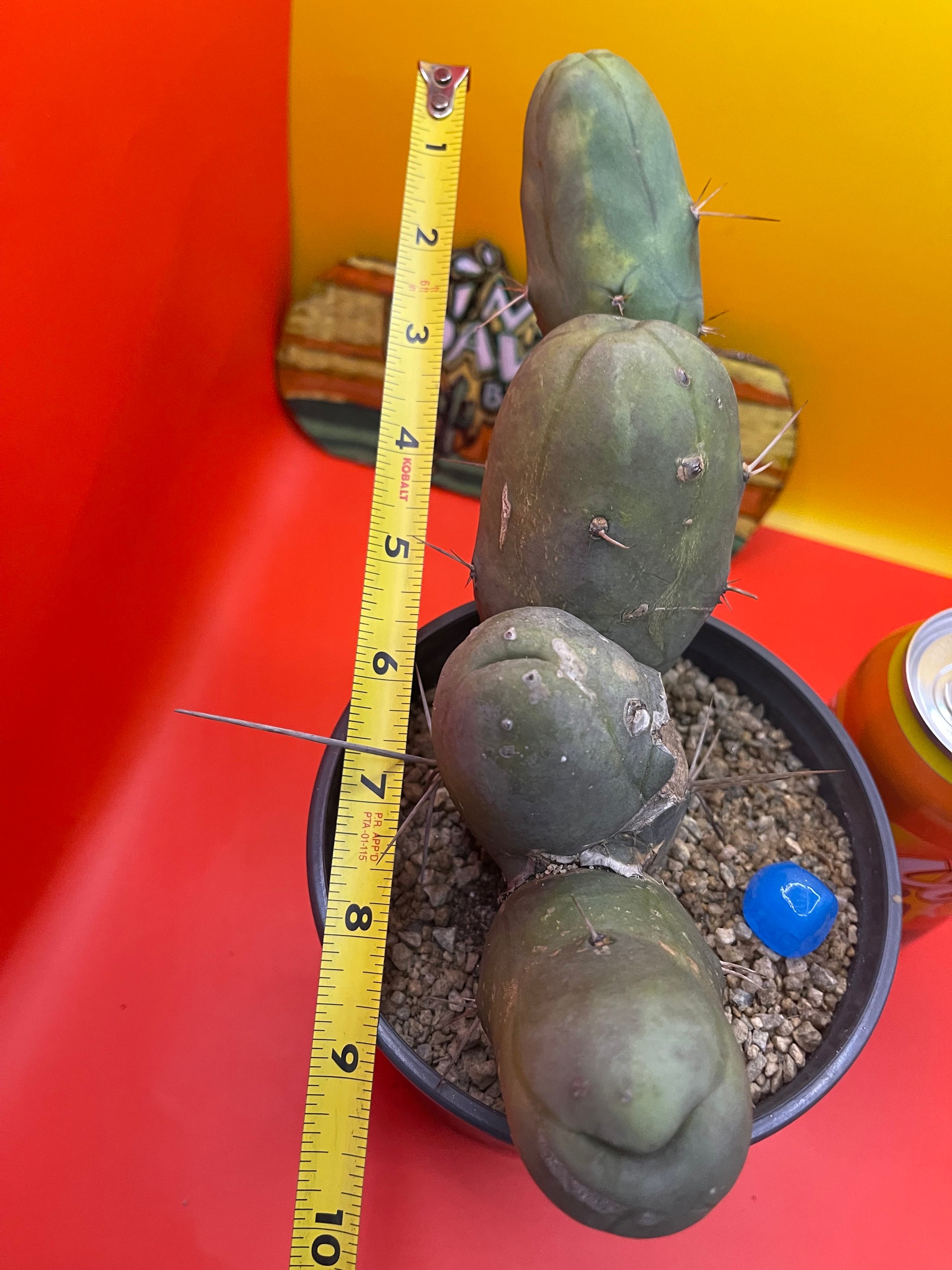 This one has some intriguing colors … it grew a bit “lemon lime” during the rains and sunshine - possibly a fun future varigated section !!! Tbm is an abbreviation for the botanical Latin name which is “Trichocereus Bridgesii monstrose” I personally cut this cactus , rooted & planted it in this new pot ……just for you ! I’ll send it as you see it - in the pot with top dressing and a hunk of hand made blue glass from my grandma bubbie ! This is a “short form” type B PENISCACTUS ! All sides are pictured & the tape measure reads in inches . Shipping is 8$ no matter how much ya get -(don’t forget to grab something for a buck !!!) Thanks for your support!!