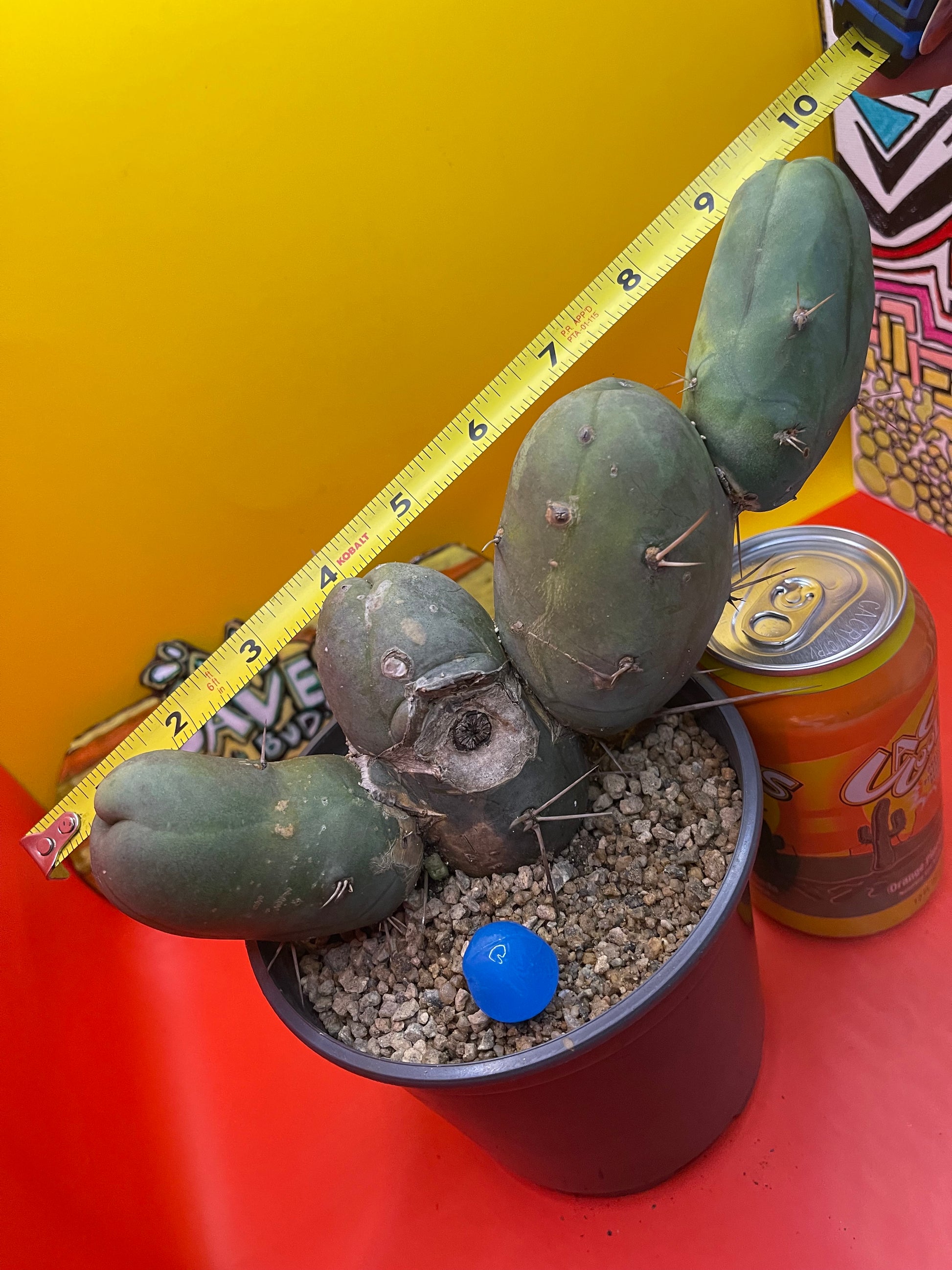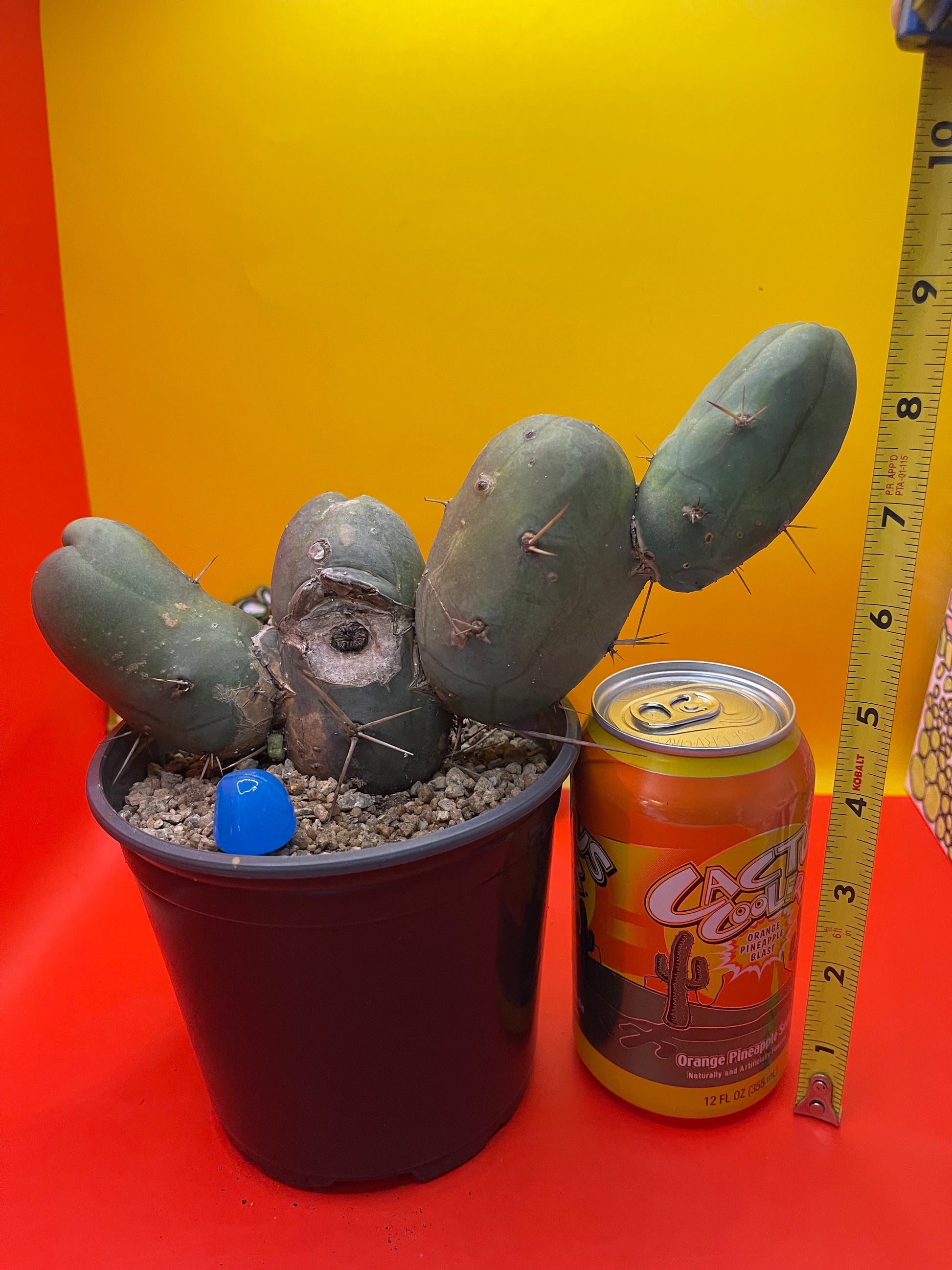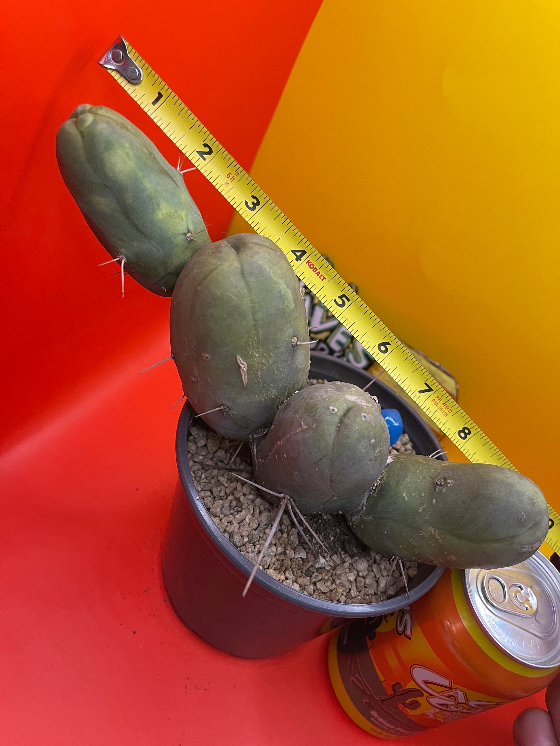 This one has some intriguing colors … it grew a bit “lemon lime” during the rains and sunshine - possibly a fun future varigated section !!! Tbm is an abbreviation for the botanical Latin name which is “Trichocereus Bridgesii monstrose” I personally cut this cactus , rooted & planted it in this new pot ……just for you ! I’ll send it as you see it - in the pot with top dressing and a hunk of hand made blue glass from my grandma bubbie ! This is a “short form” type B PENISCACTUS ! All sides are pictured & the tape measure reads in inches . Shipping is 8$ no matter how much ya get -(don’t forget to grab something for a buck !!!) Thanks for your support!!