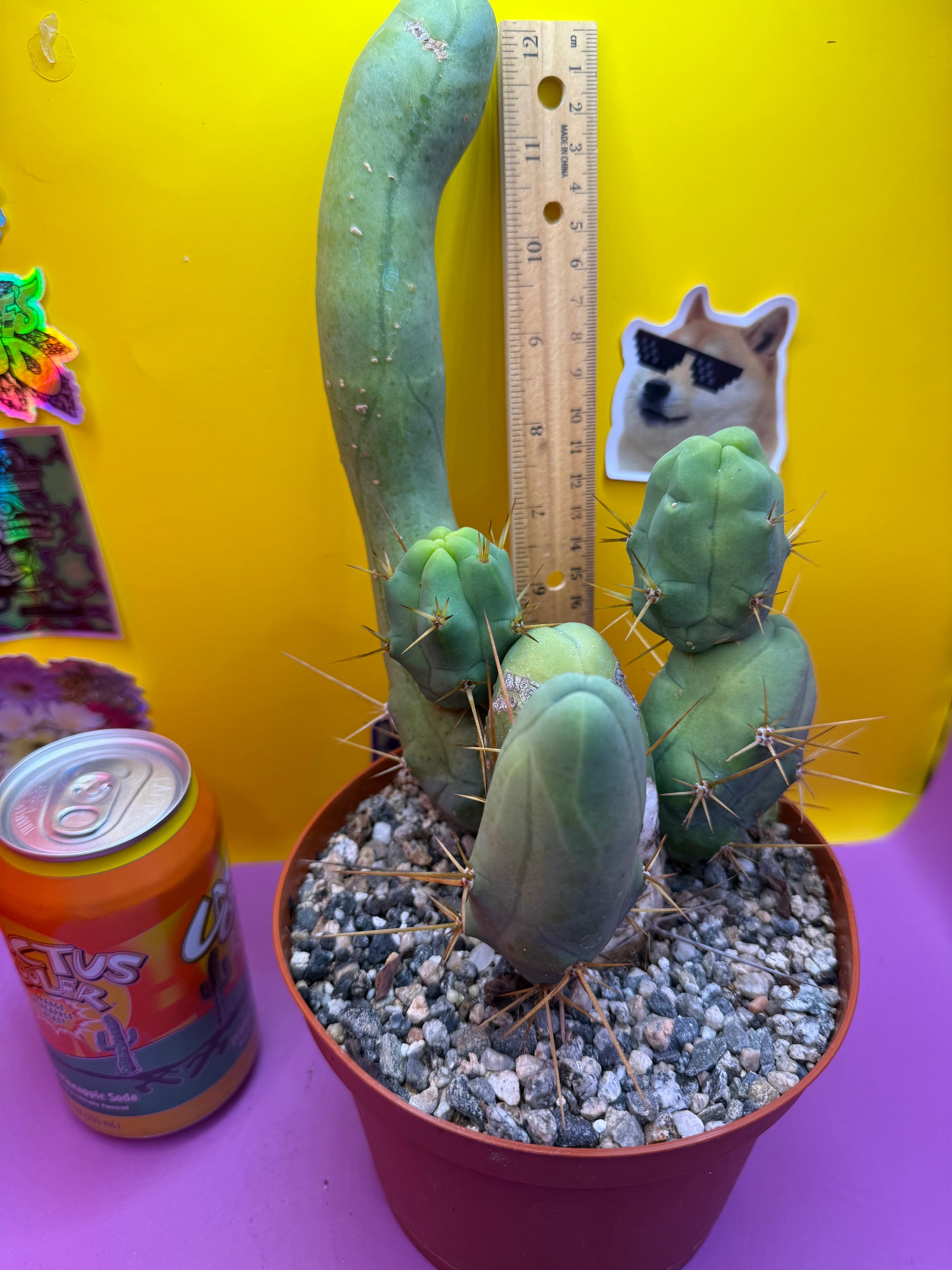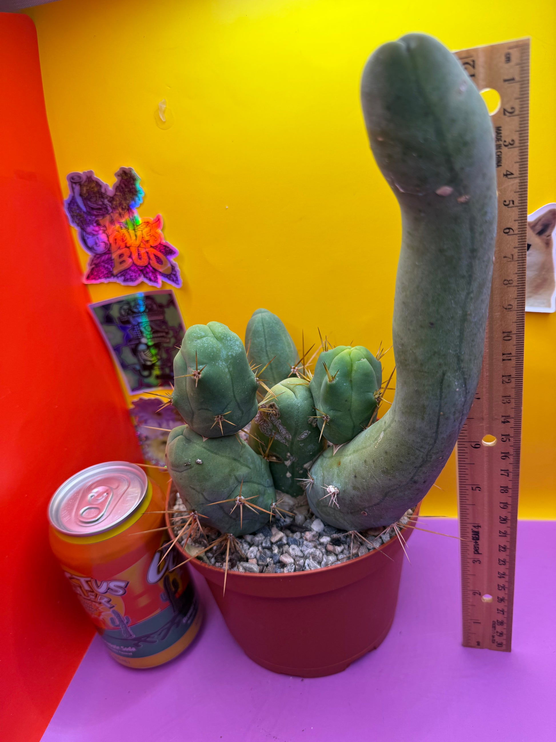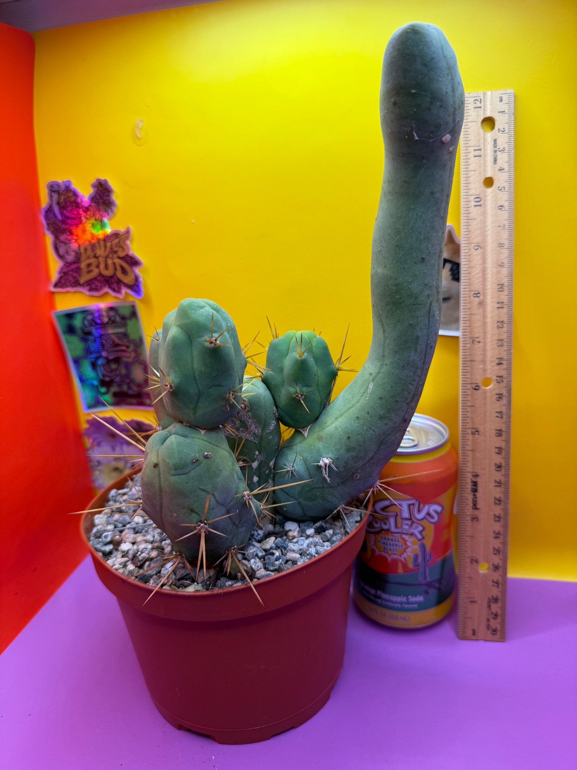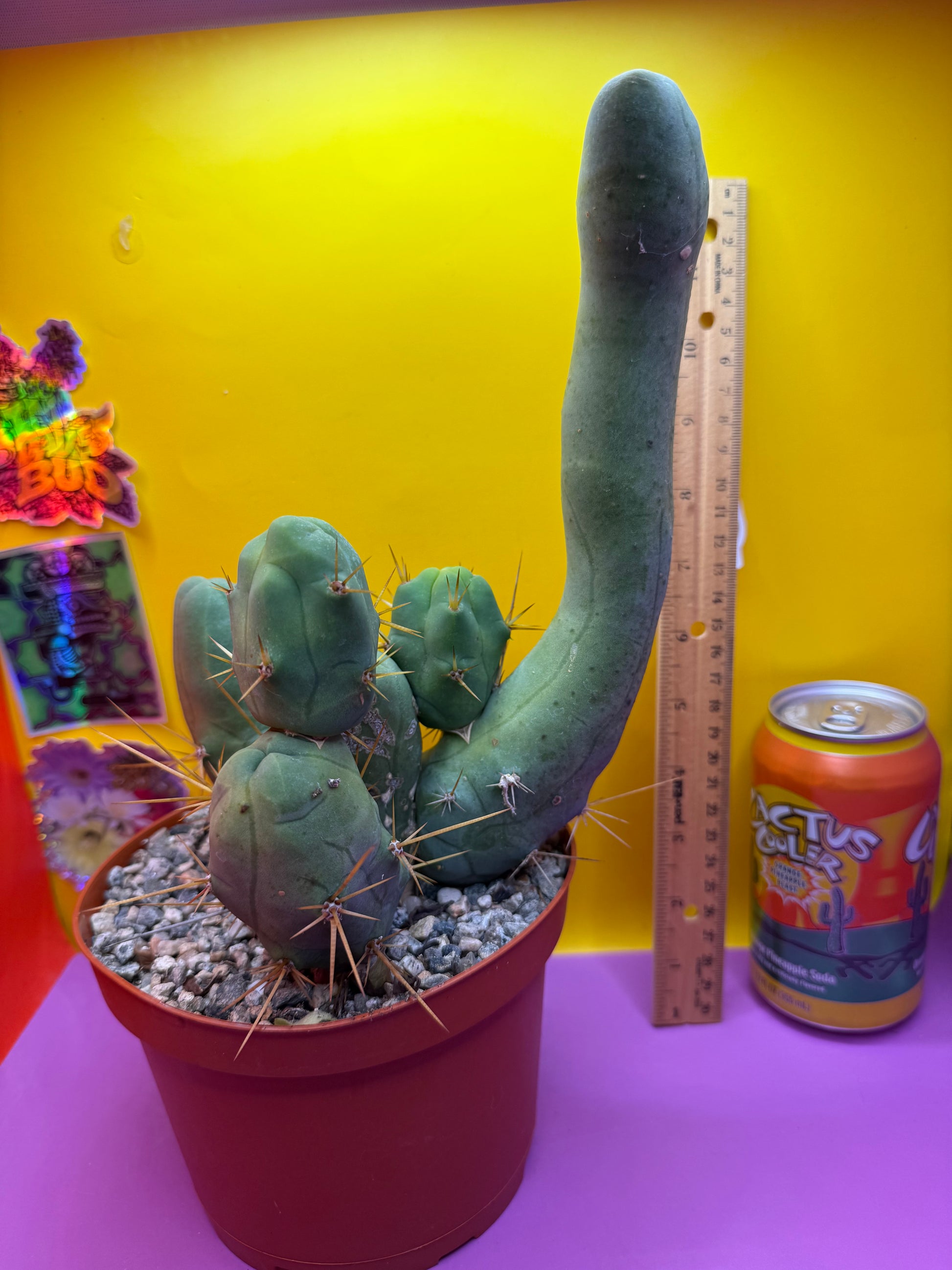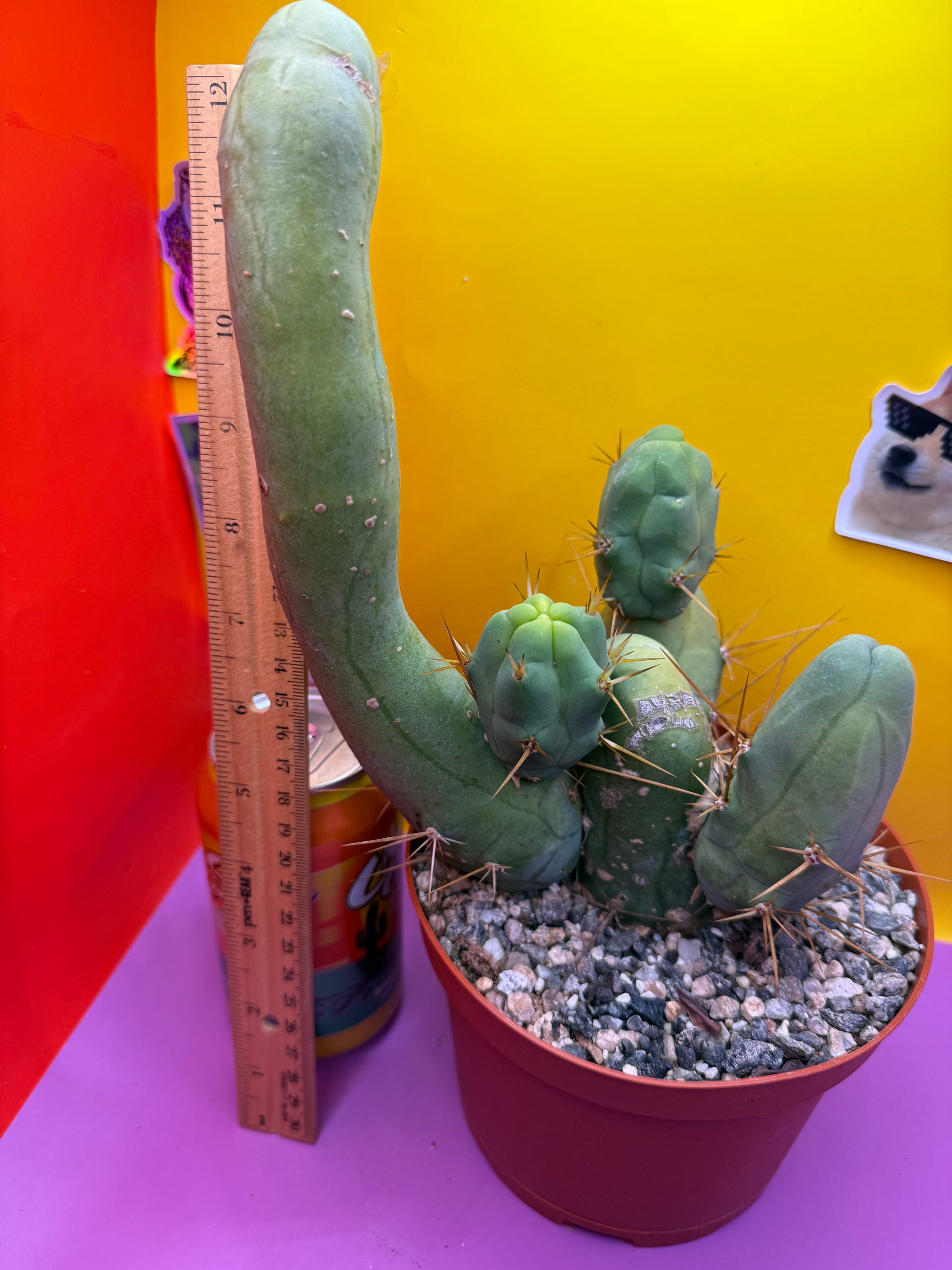 Big mature main section , this is a very hardy cactus that will grow into a bushy motherstand ! Extremely Long thick branching arm segment . You will receive this exact potted cactus . This ships in the pot ! . Trichocereus Bridgesii Monstrose type b short form with a fat solid base and a strong branching arm ! Very healthy and growing happy in its pot ! This is fully rooted and planted into my custom blended cactus mix , great well draining mix , super easy to take care of !