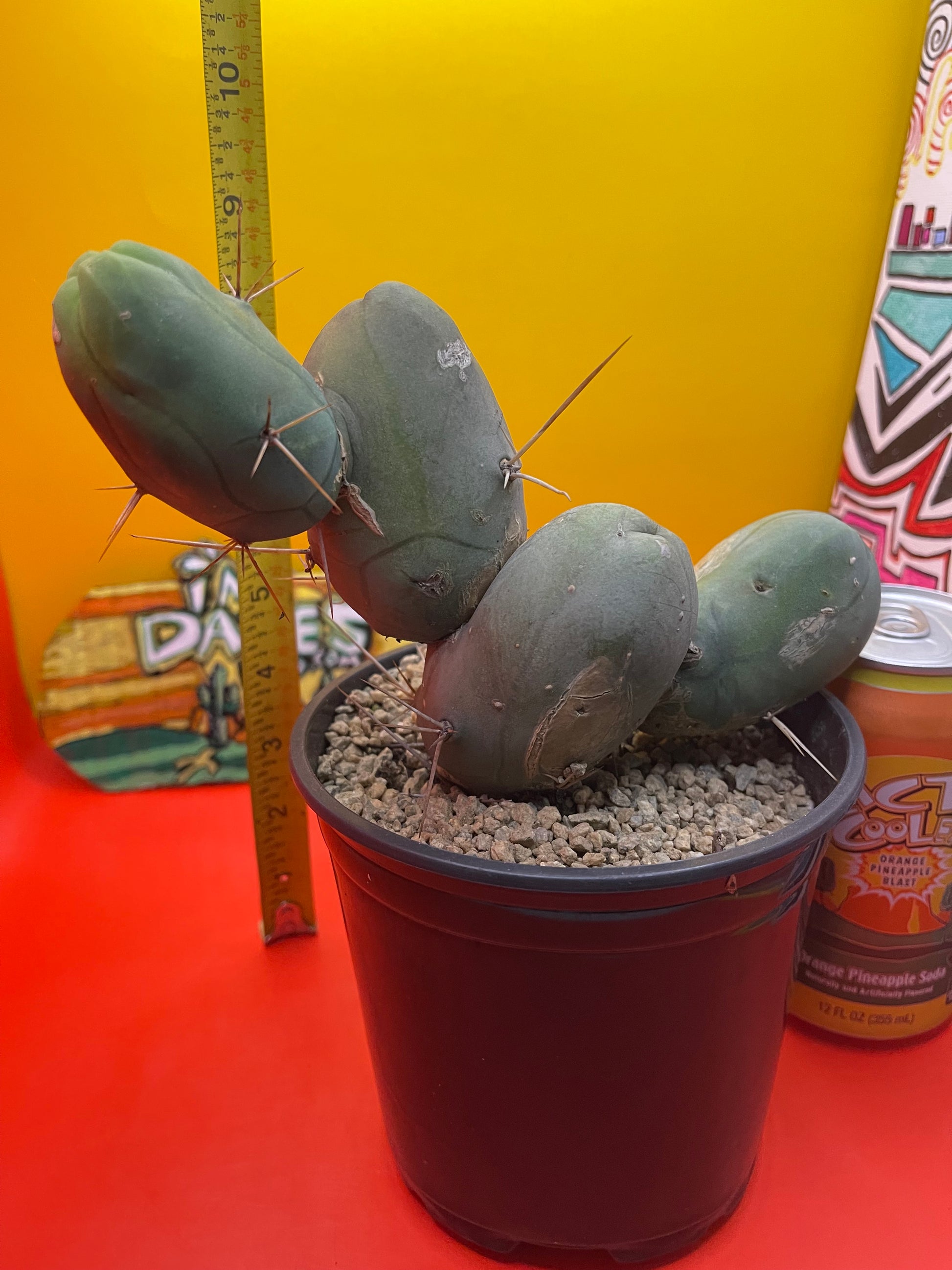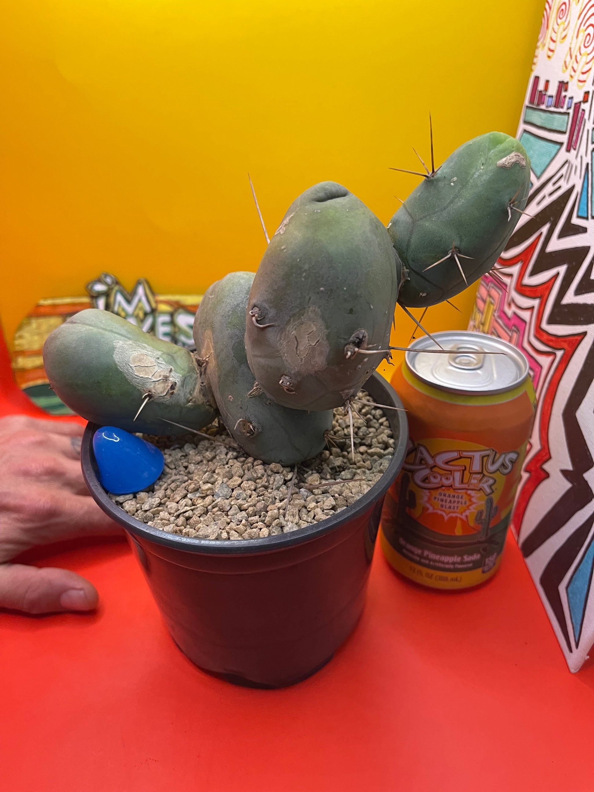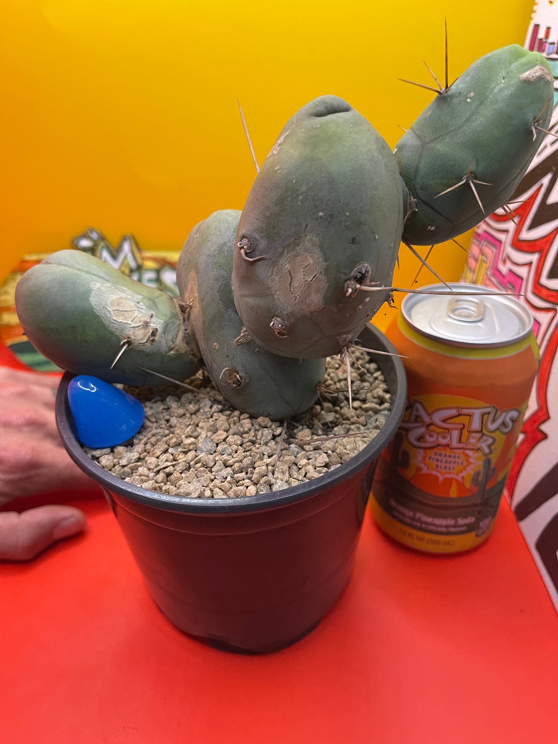 San Pedro cactus - Tbm cactus ! The botanical Latin name of this cactus is trichocereus bridgesii monstrose . It is commonly called the “PENISCACTUS” there are different types and this particular one is -TYPE B- it’s also known as a “shortform” . This is a rare cactus that you will not find at a commercial nursery or box store , this one is for collectors and is considered a SCORE if you can locate one !!! - I personally cut this off my stand and planted it in this brand new pot , I’ve dressed it up with some “Birdseye grit” and a chunk of decorative hand made glass !