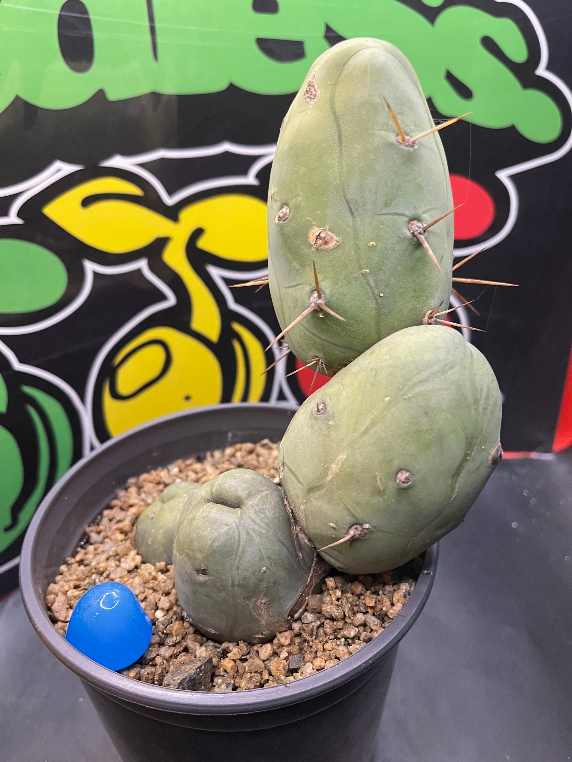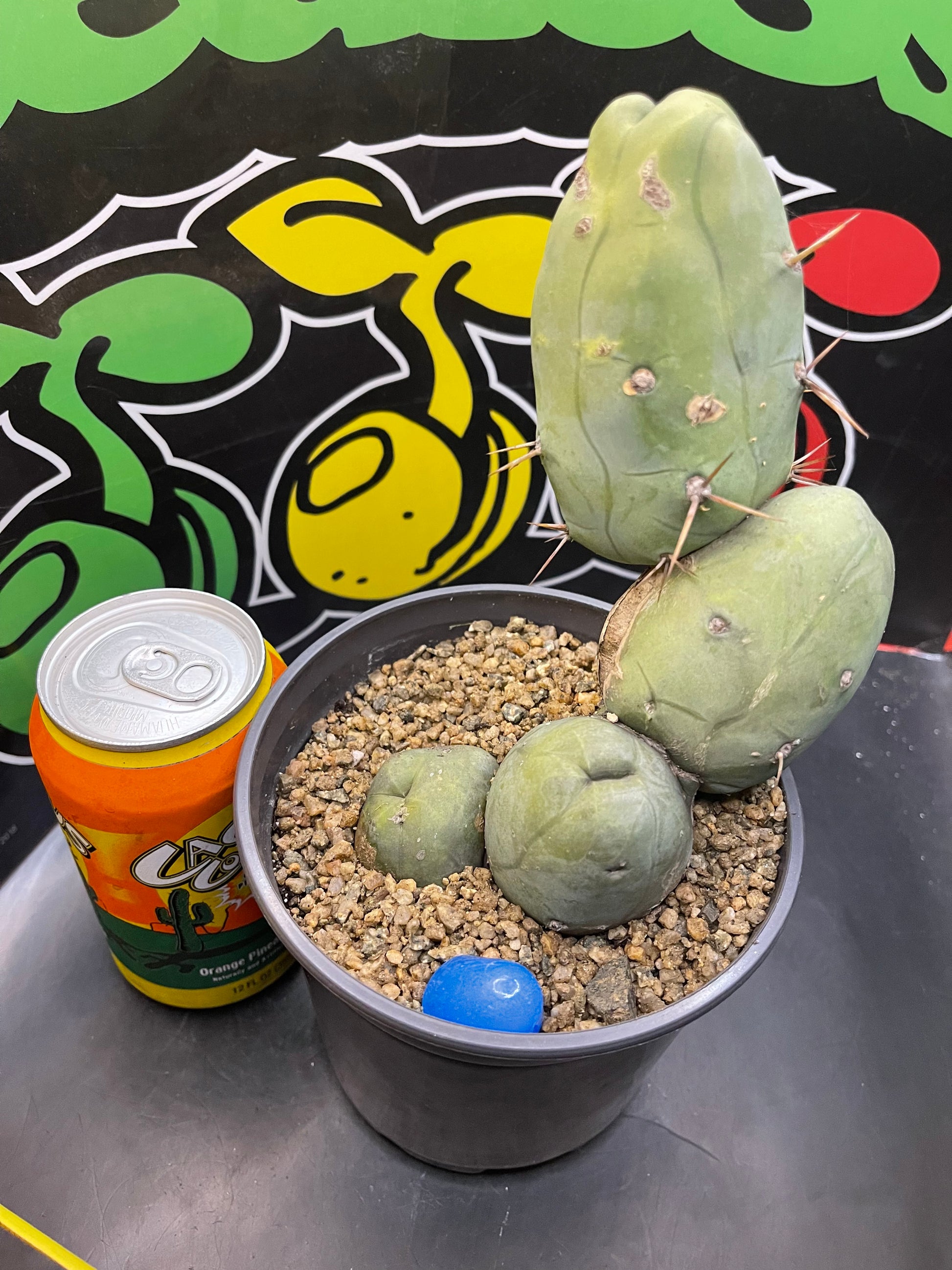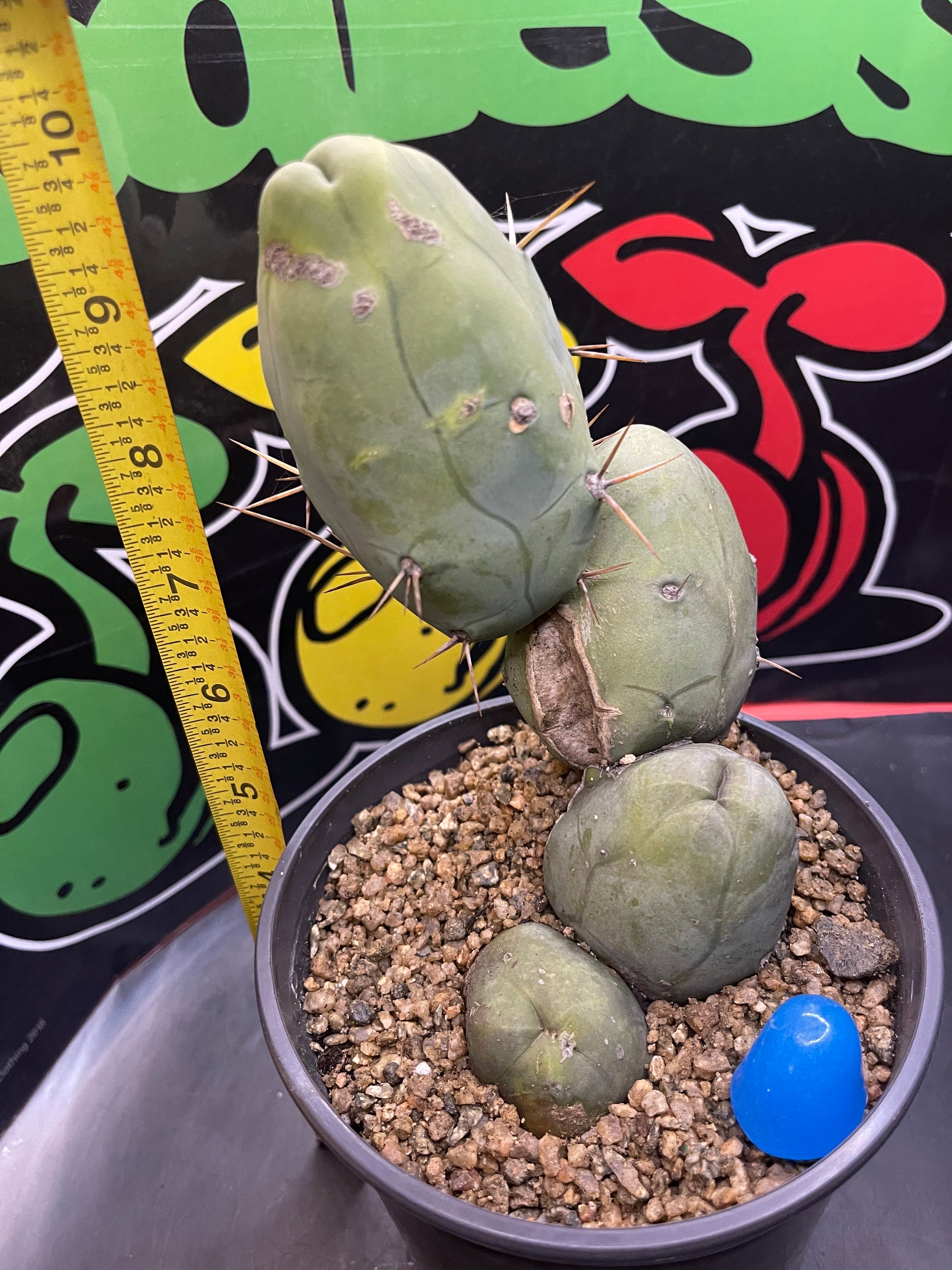Trichocereus bridgesii monstrous Type B - shortform ! This is a half gallon pot , fully rooted , I took this cutting myself , planted and grew it just for you !!!! Happy to send one of my special cactus to your home !!it will arrive just the way you see it , it it’s pot will top dressing and a lil blue glass for decoration- I’ll pack it with love and care so it arrives safe and sound !