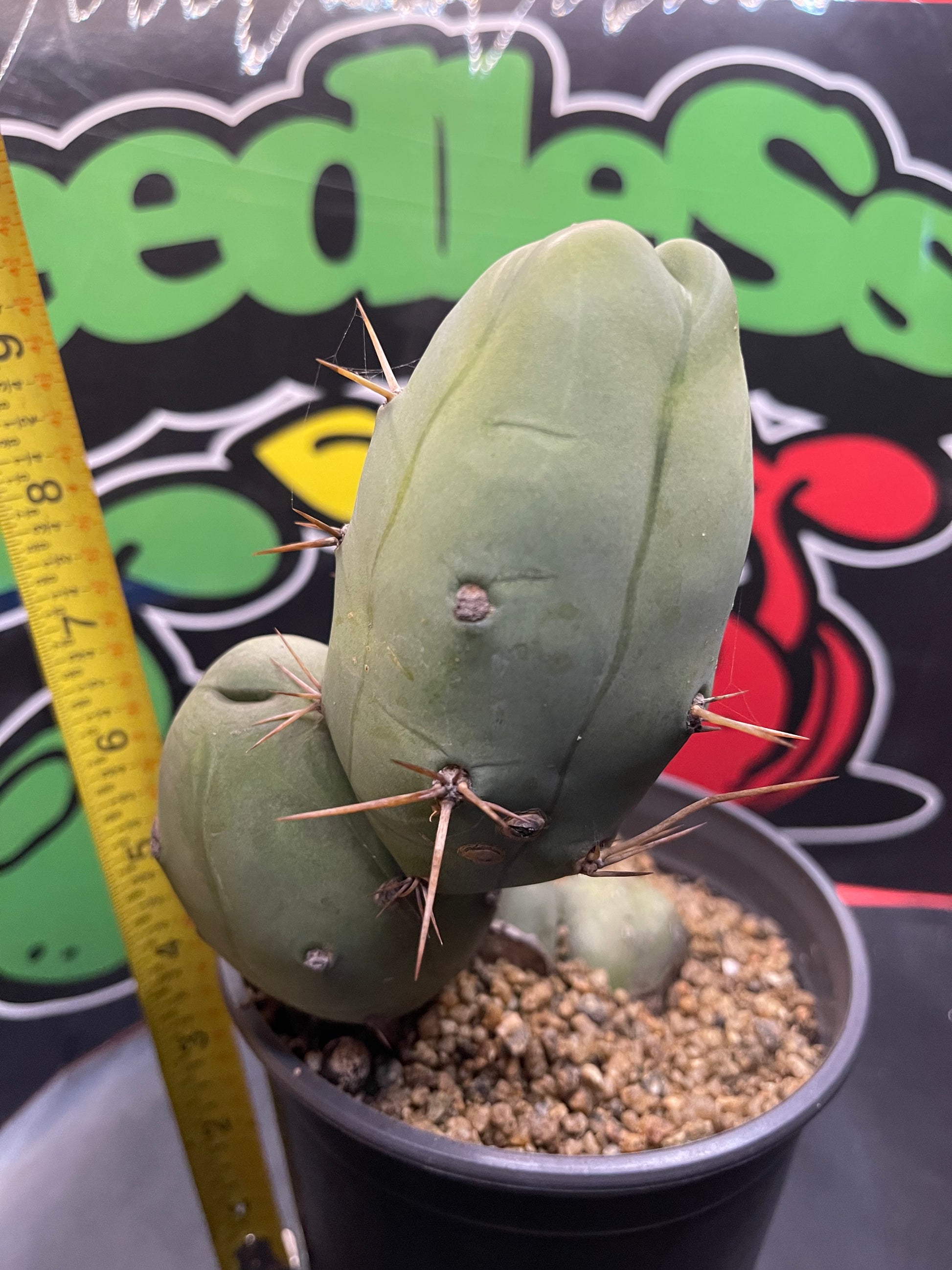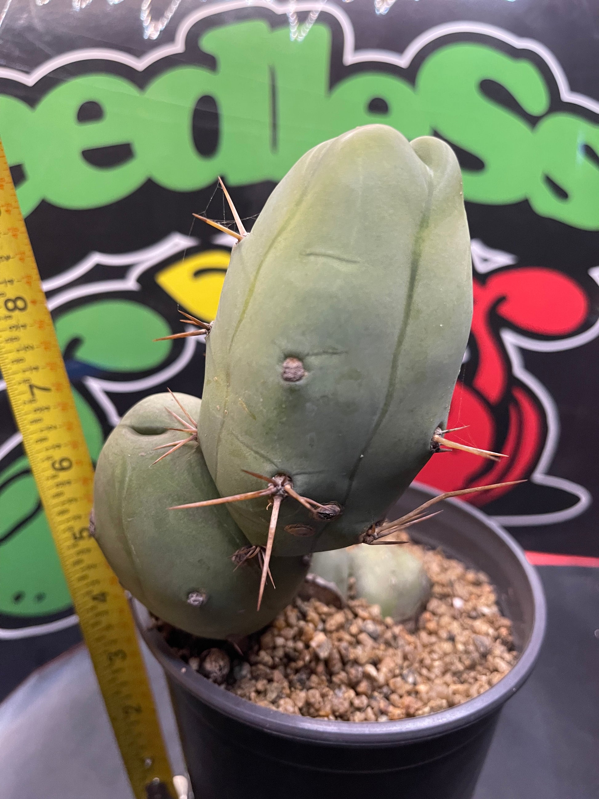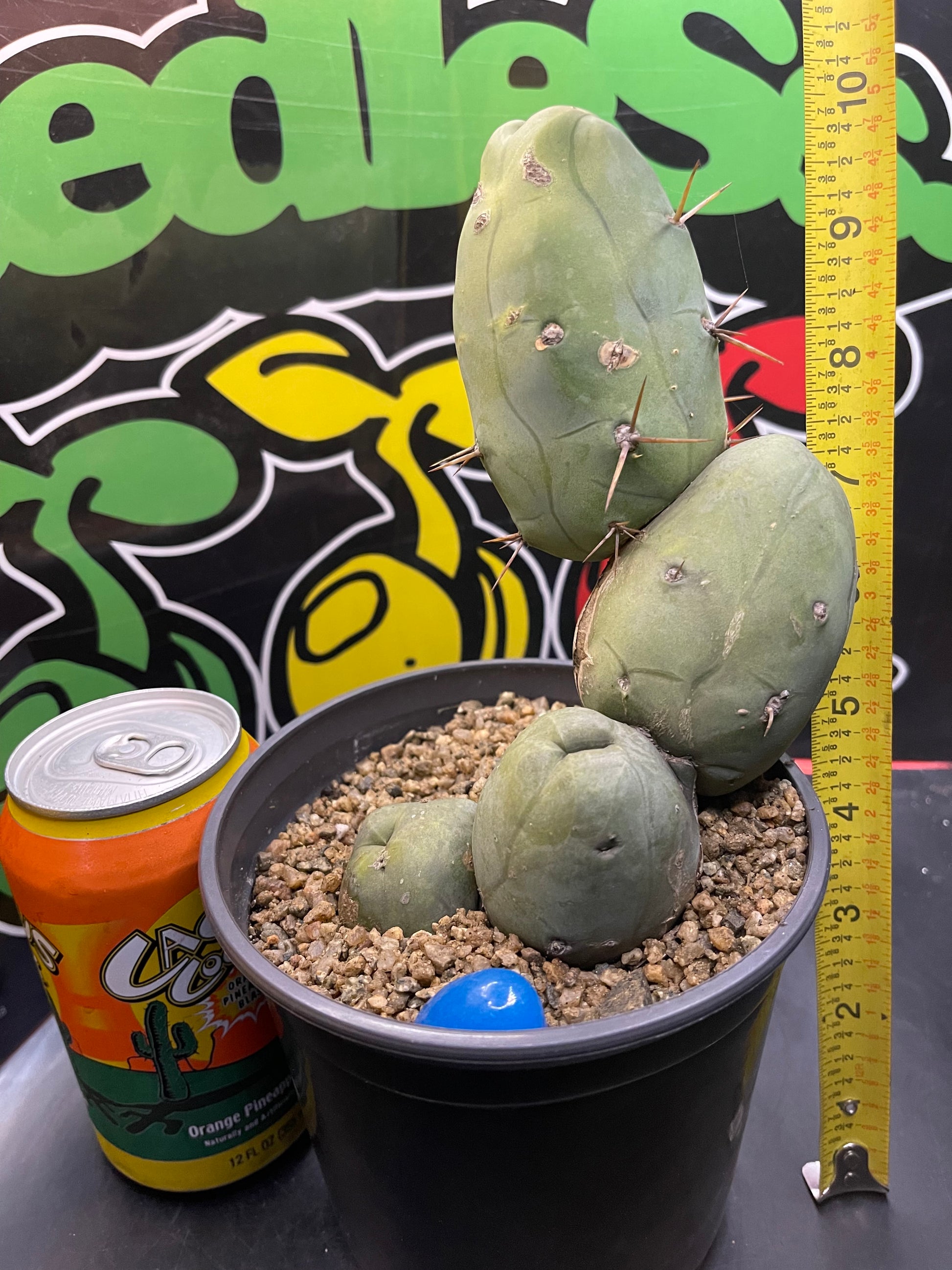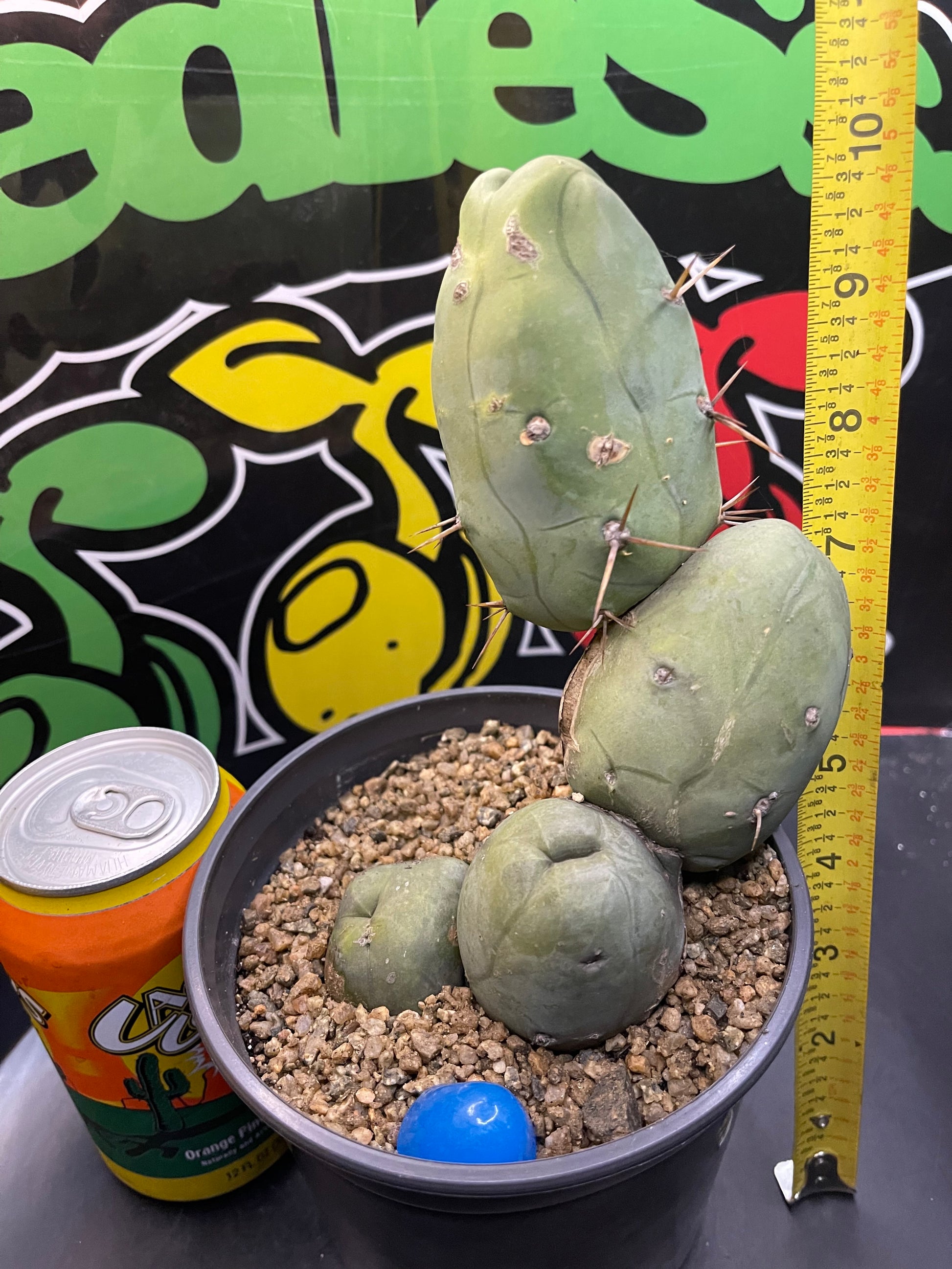 Trichocereus bridgesii monstrous Type B - shortform ! This is a half gallon pot , fully rooted , I took this cutting myself , planted and grew it just for you !!!! Happy to send one of my special cactus to your home !!it will arrive just the way you see it , it it’s pot will top dressing and a lil blue glass for decoration- I’ll pack it with love and care so it arrives safe and sound !