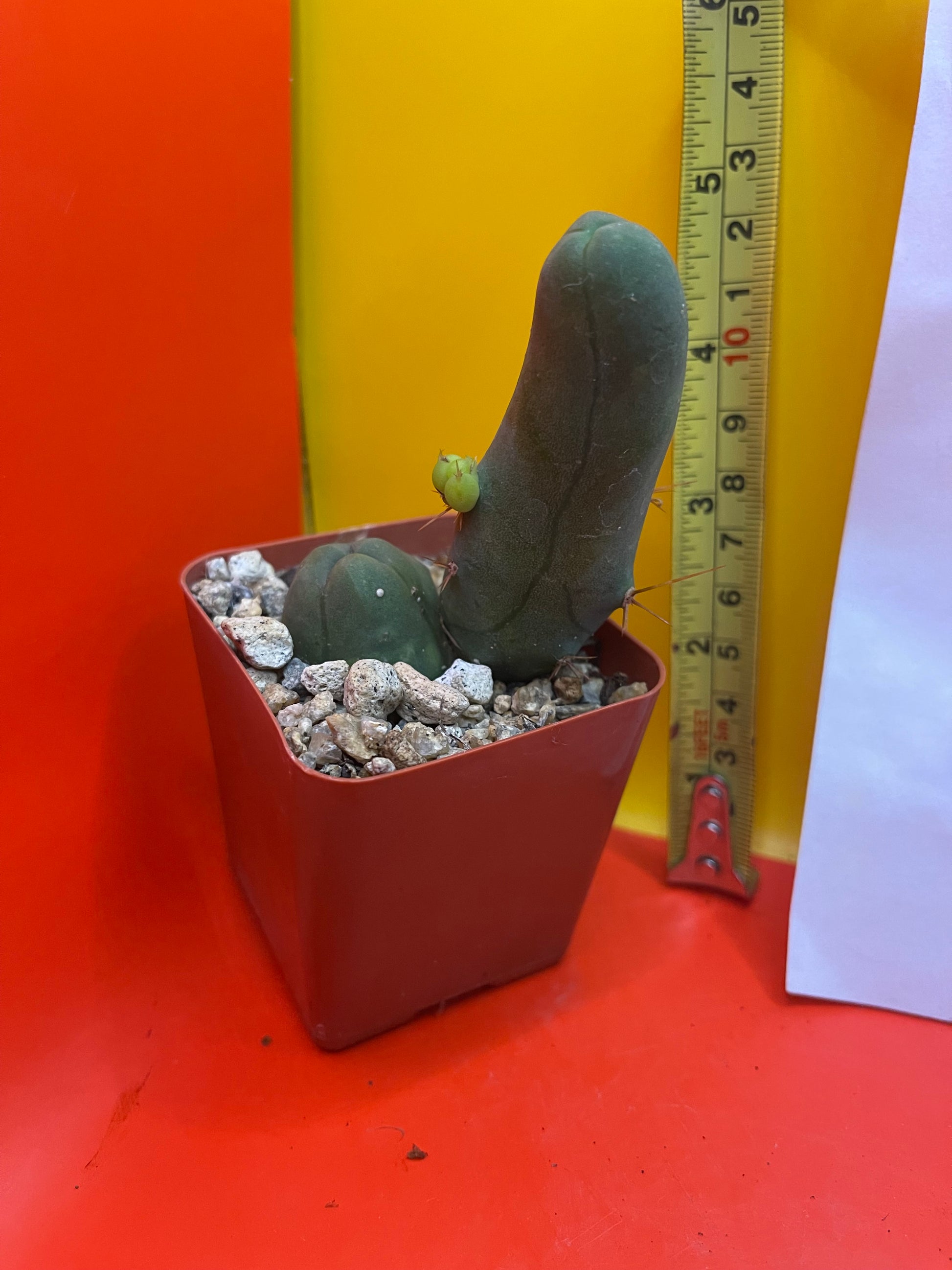 This is Trichocereus bridgesii monstrose . This is commonly known as the PENISCACTUS . These cuttings were taken from “cactus Rons” stand , his stand is very large and bushy - it’s shade grown and tends to produce longer segments that stay rather skinny…. Not quite a long form or a short form - I wouldn’t classify this as a “type-b” because it’s changing growth is different than the stands originally dubbed “type-b” . It is however definitely a penis cactus and definitely a must for any collection!! 4 available, you will receive 1 cactus potted and rooted , it will ship to you in the pot .