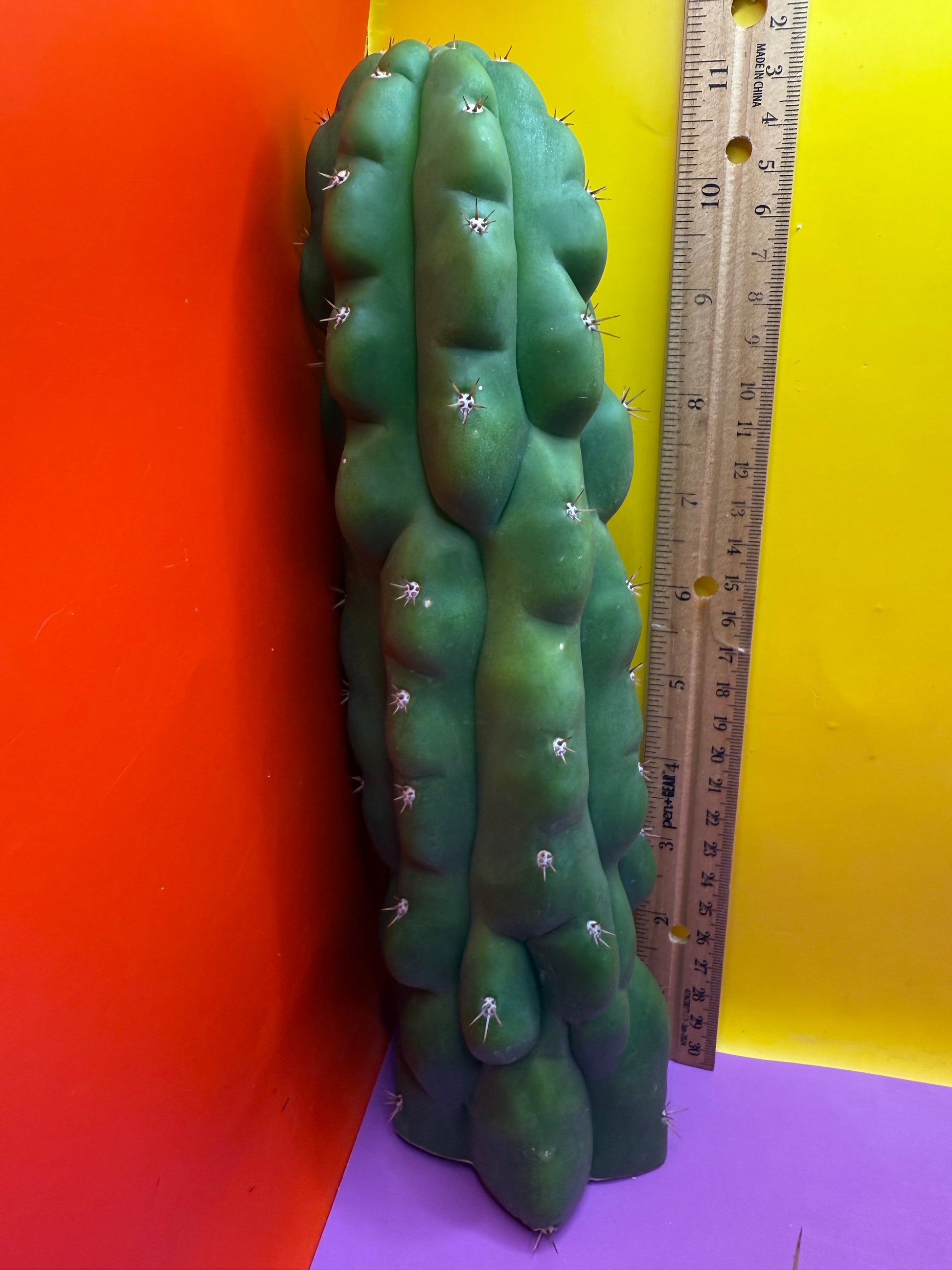 You will receive this exact cut with a really cool tip ! Trichocereus Pachanoi Monstrose . Tpm is a monstrose San Pedro cactus that grows extremely weird . It gets very notchy with Bumps , boobies and all sorts of strange growth . Tpm often crests and sends out branches and side pups , multiple heads is common on this weirdo cactus ! Expect the unexpected, very fun to watch grow ! Sometimes this cactus crests and sometimes it pumps out fast growth of straight regular growth , only to get weird all over again ! This monstrose cactus get extremely Thic and is revered as a prized rootstock because of its size and fast growth !