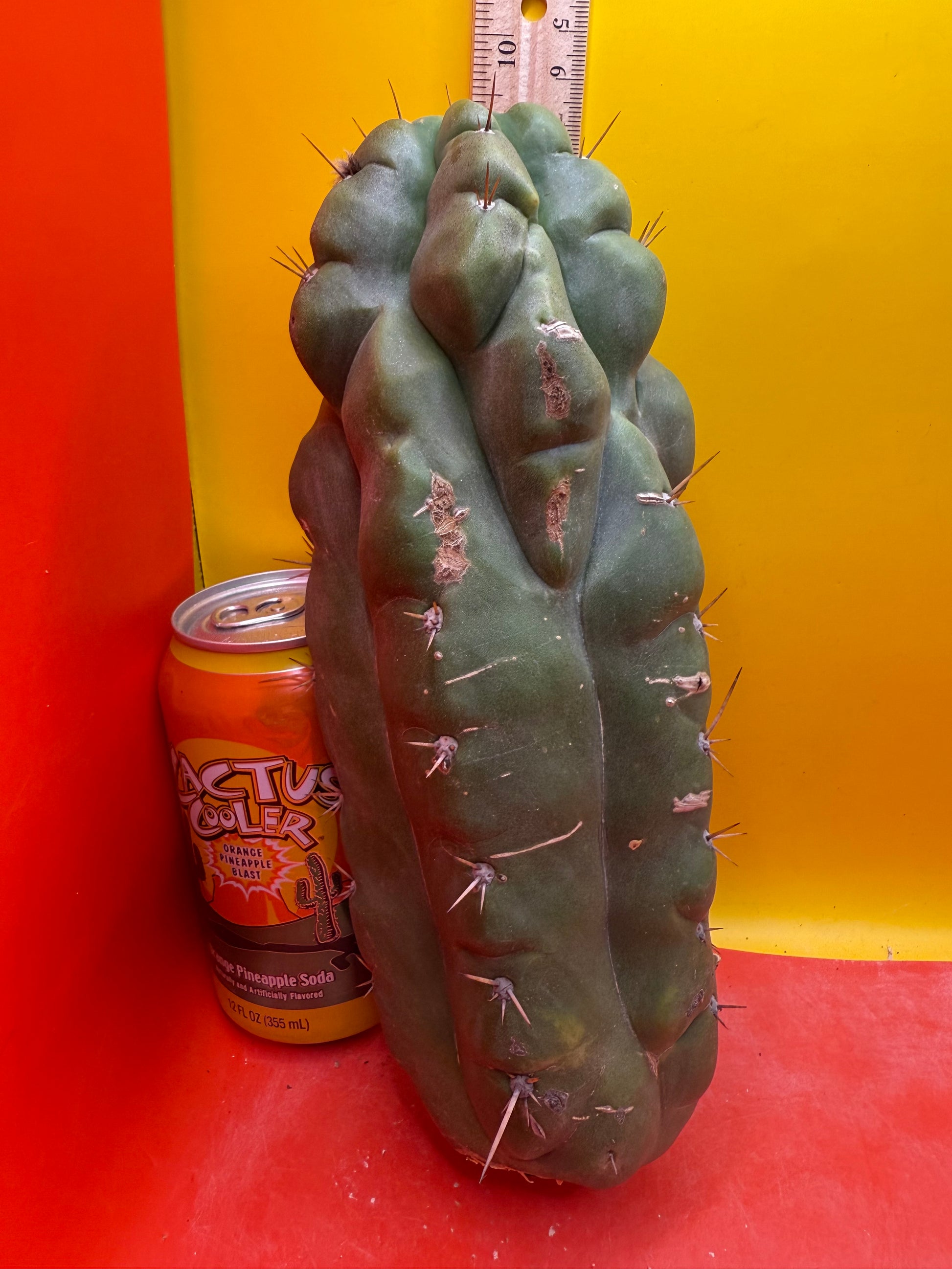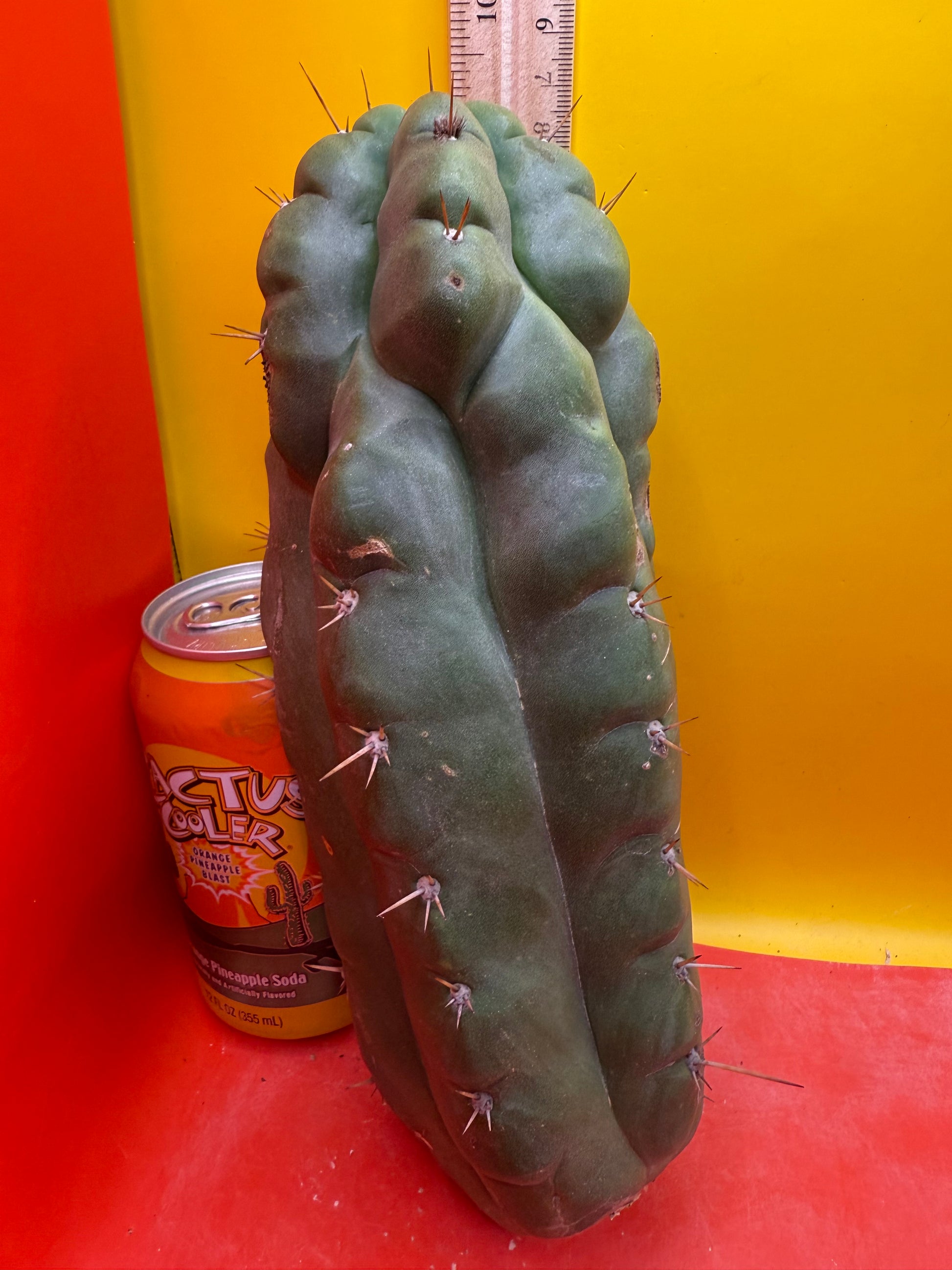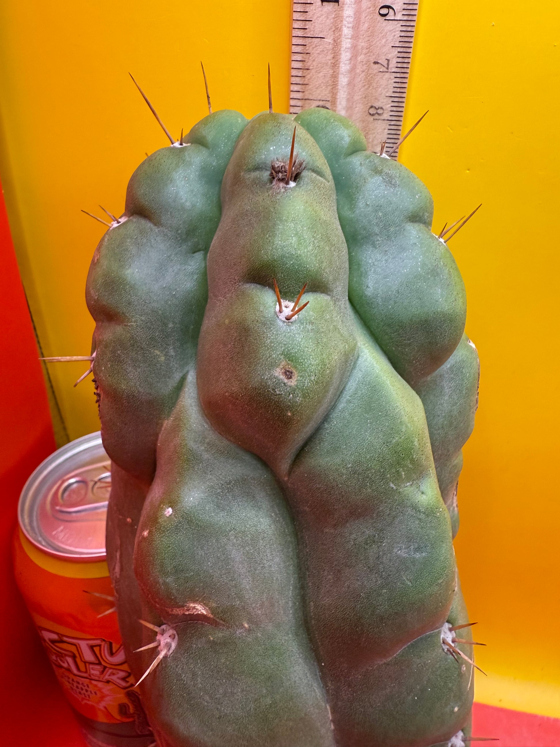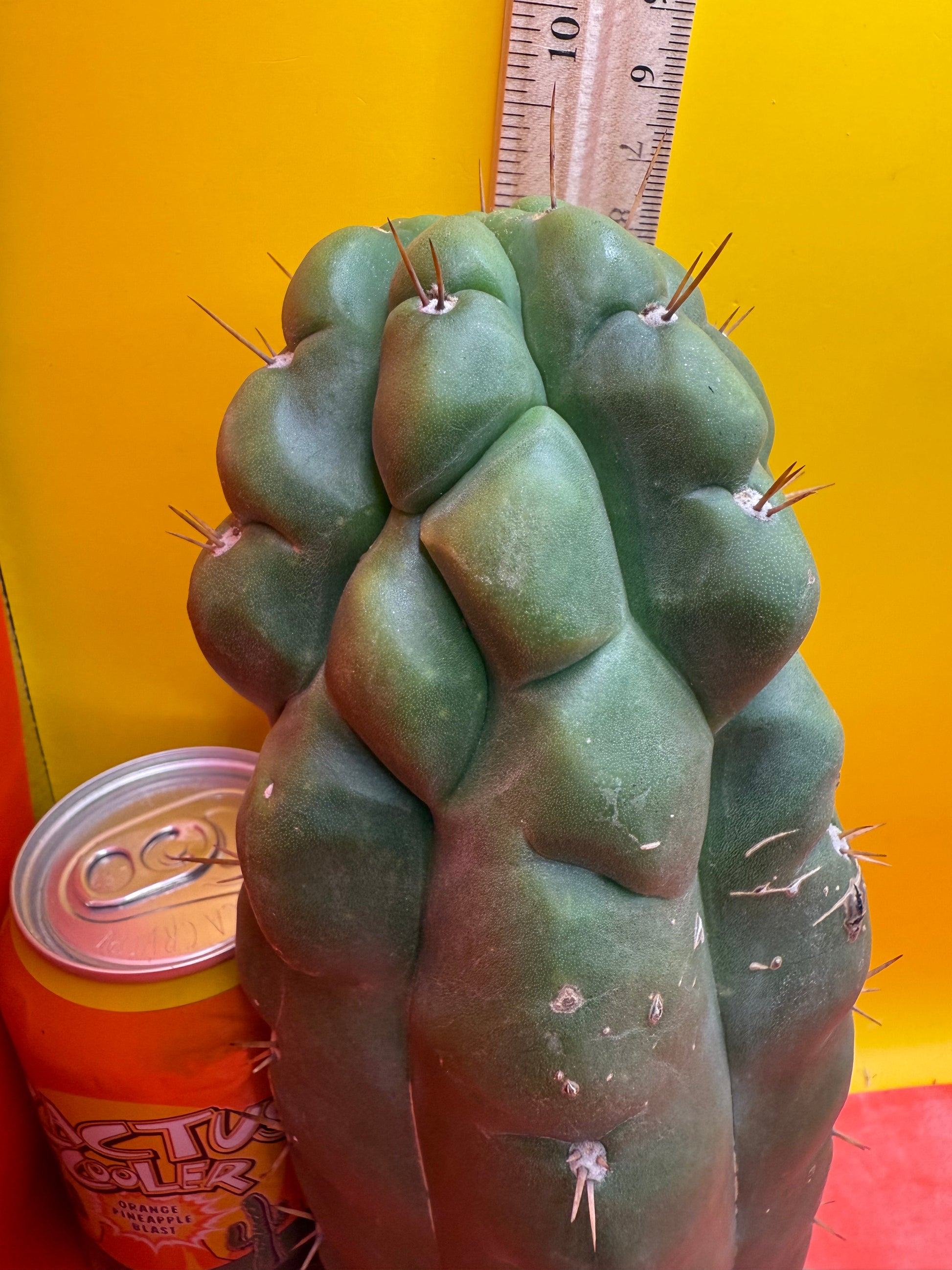 Fat thick TPM with a flower blossom forming on its really cool tip doing all kinds of weird strange bumpy growth ! This huge mature chonk has a furry bud forming at its tip ! Actively growing tip will continue to change and give constant surprise! TPM is known to crest , get notchy , monstrose smooth growth, revert , go from no spines to expressing longer spines - definitely a fun one to watch grow and change ! All sides are pictured, ruler is one foot long in inches and centimeters, soda can is for size reference