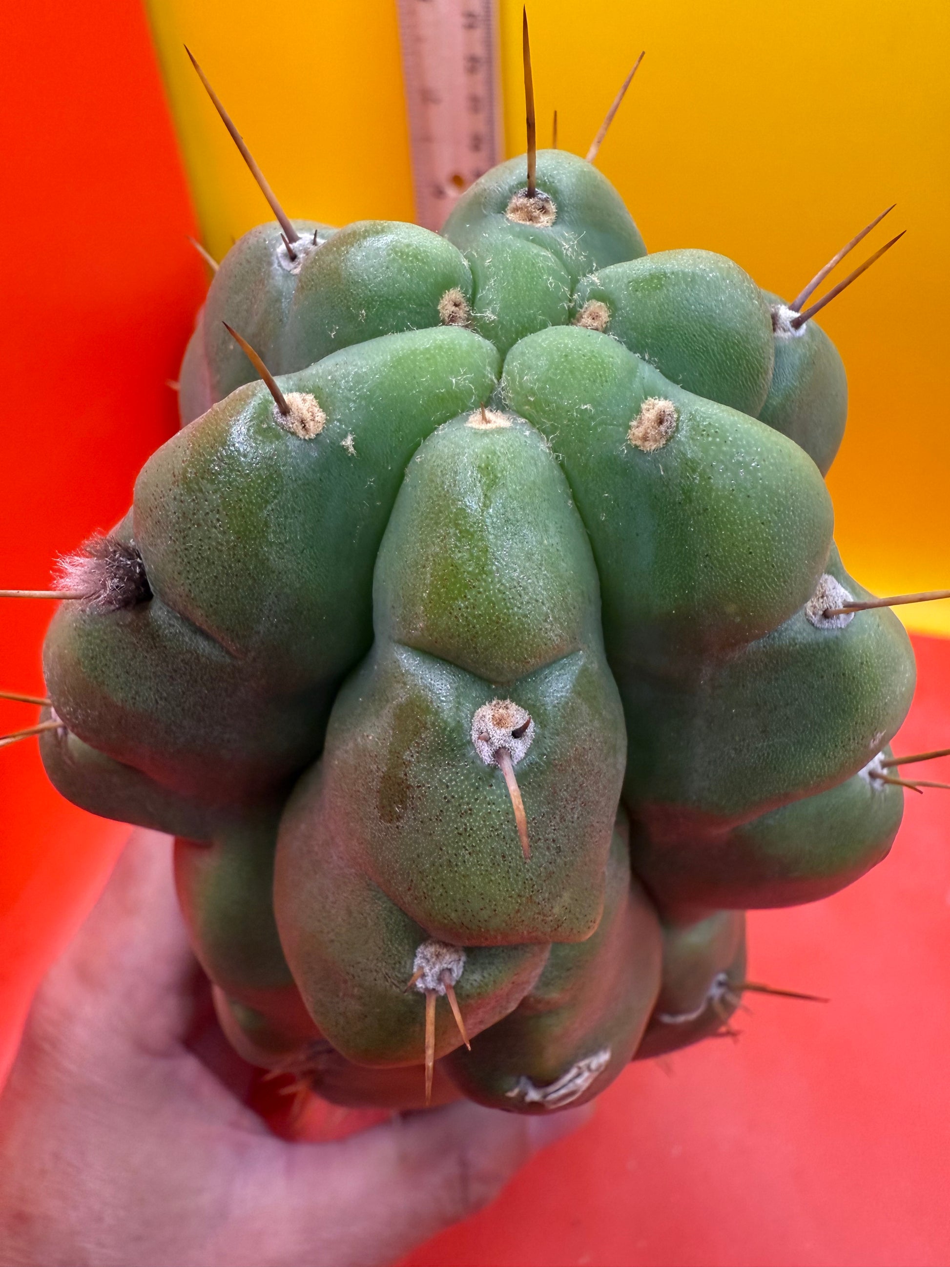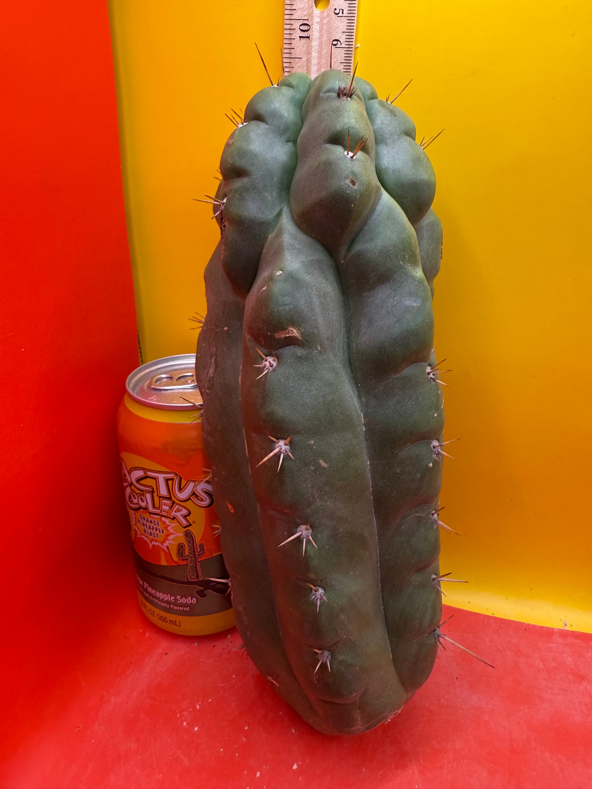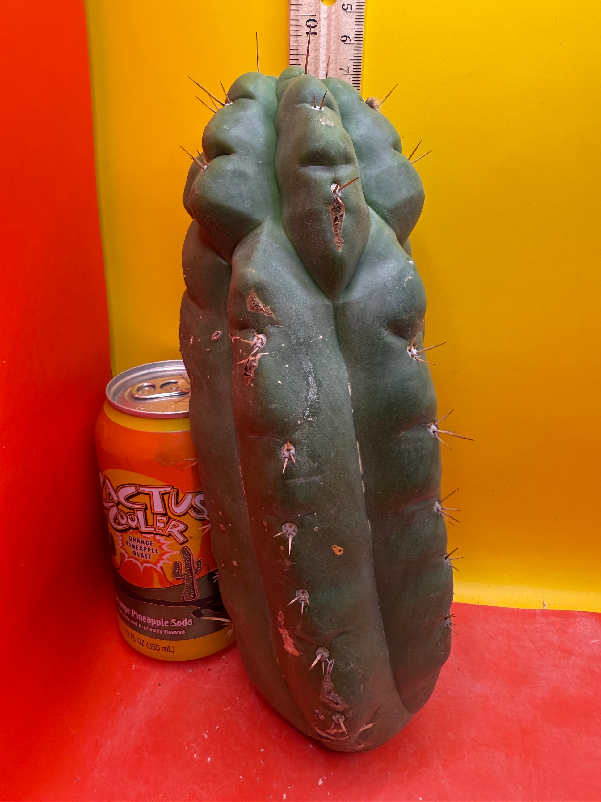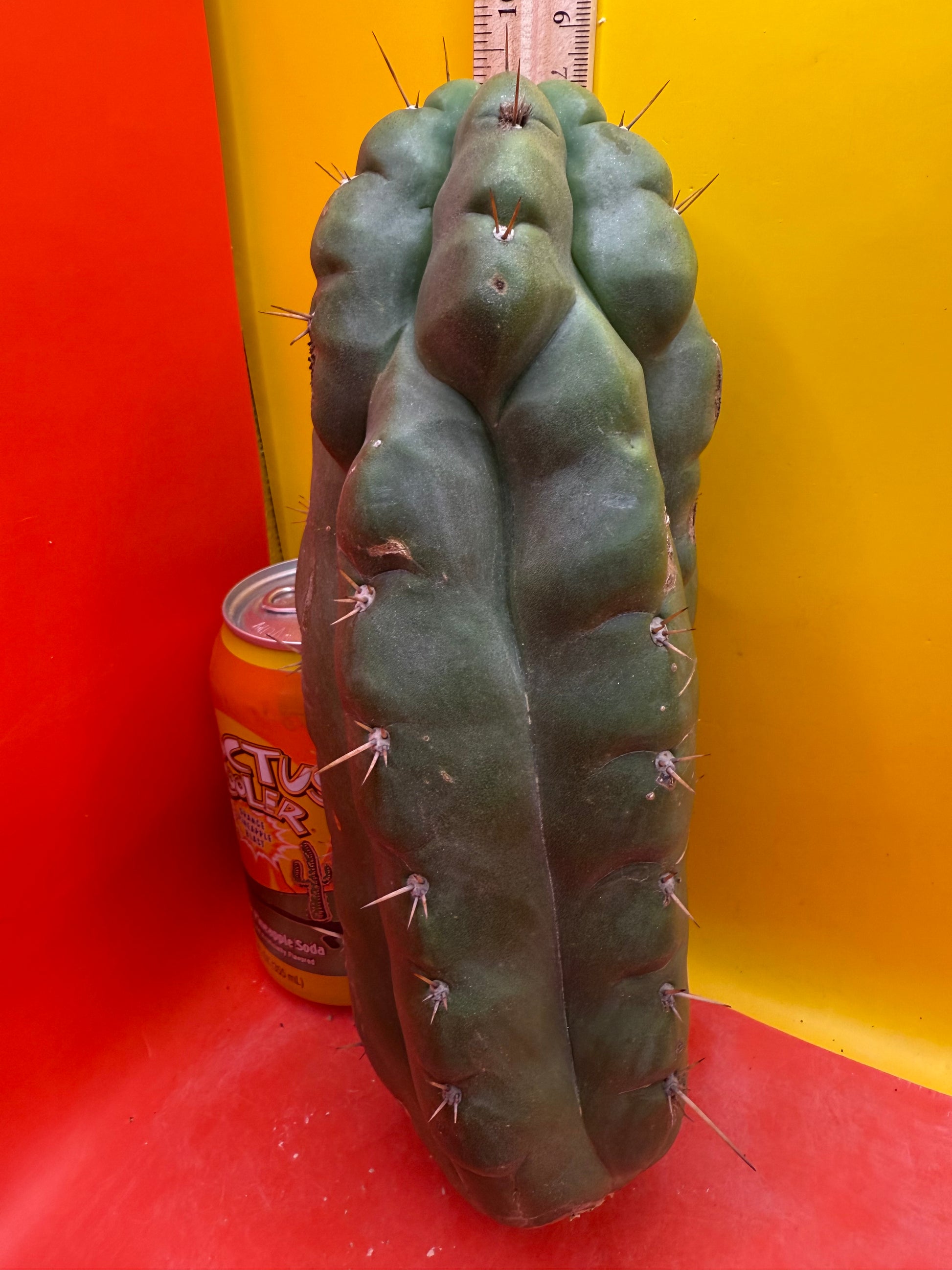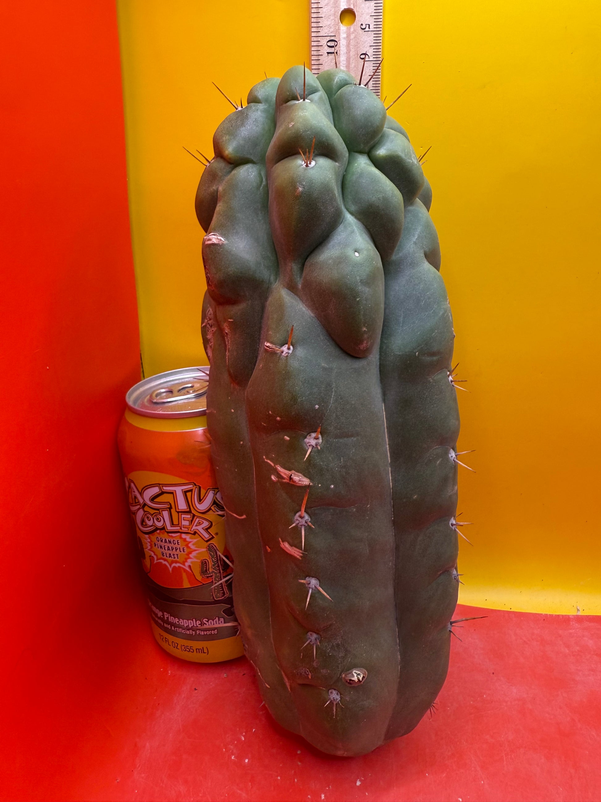 Fat thick TPM with a flower blossom forming on its really cool tip doing all kinds of weird strange bumpy growth ! This huge mature chonk has a furry bud forming at its tip ! Actively growing tip will continue to change and give constant surprise! TPM is known to crest , get notchy , monstrose smooth growth, revert , go from no spines to expressing longer spines - definitely a fun one to watch grow and change ! All sides are pictured, ruler is one foot long in inches and centimeters, soda can is for size reference