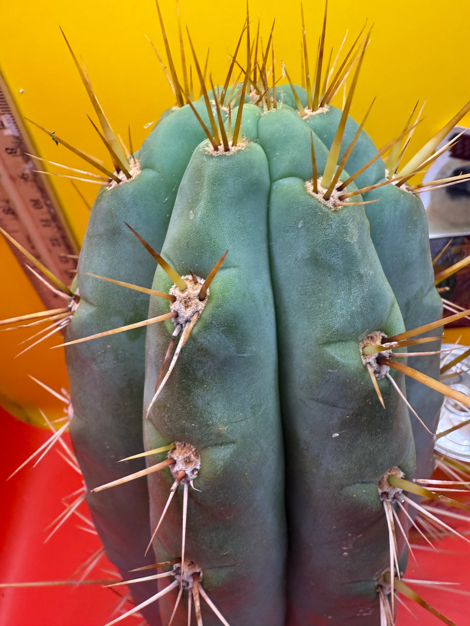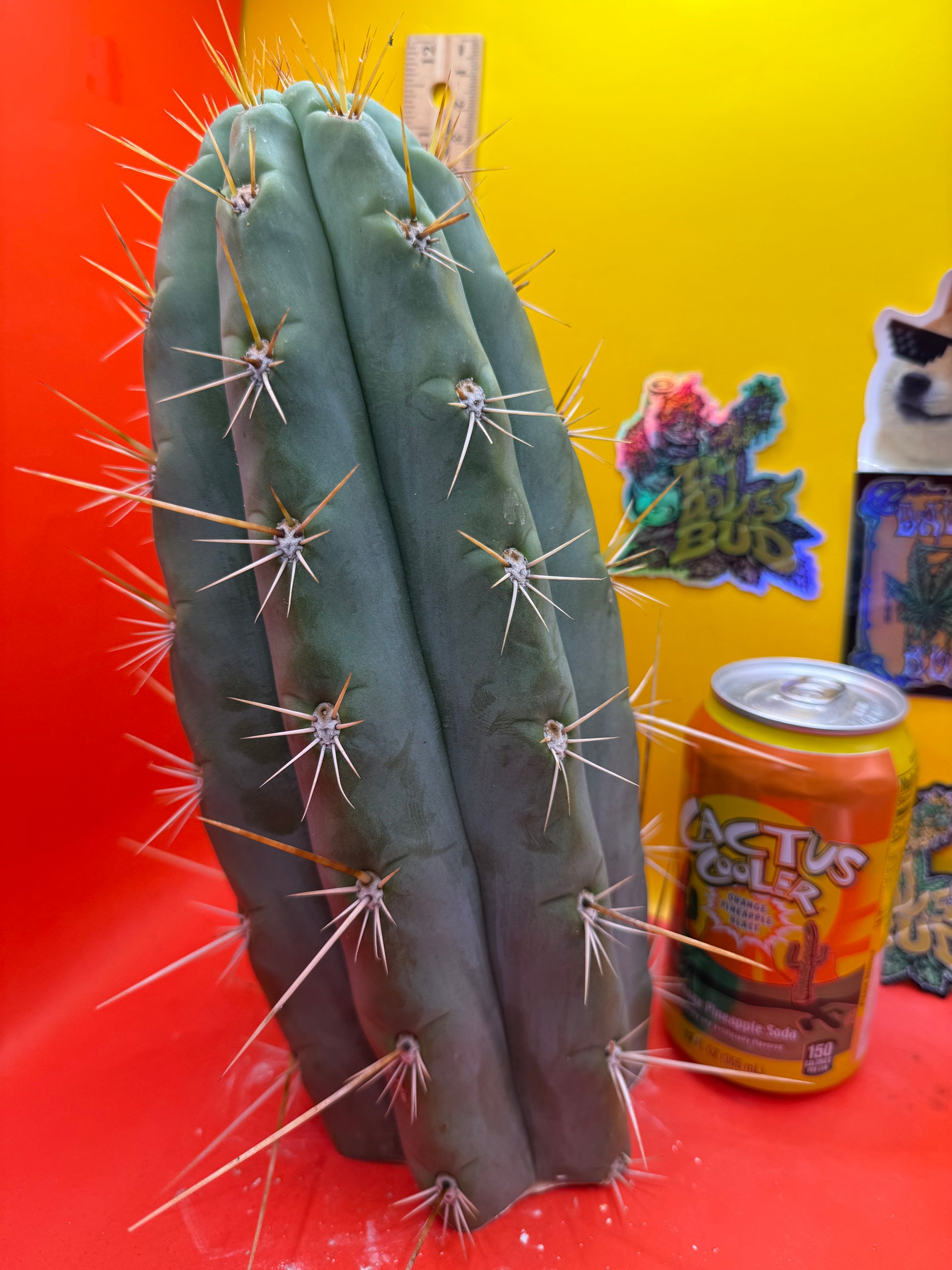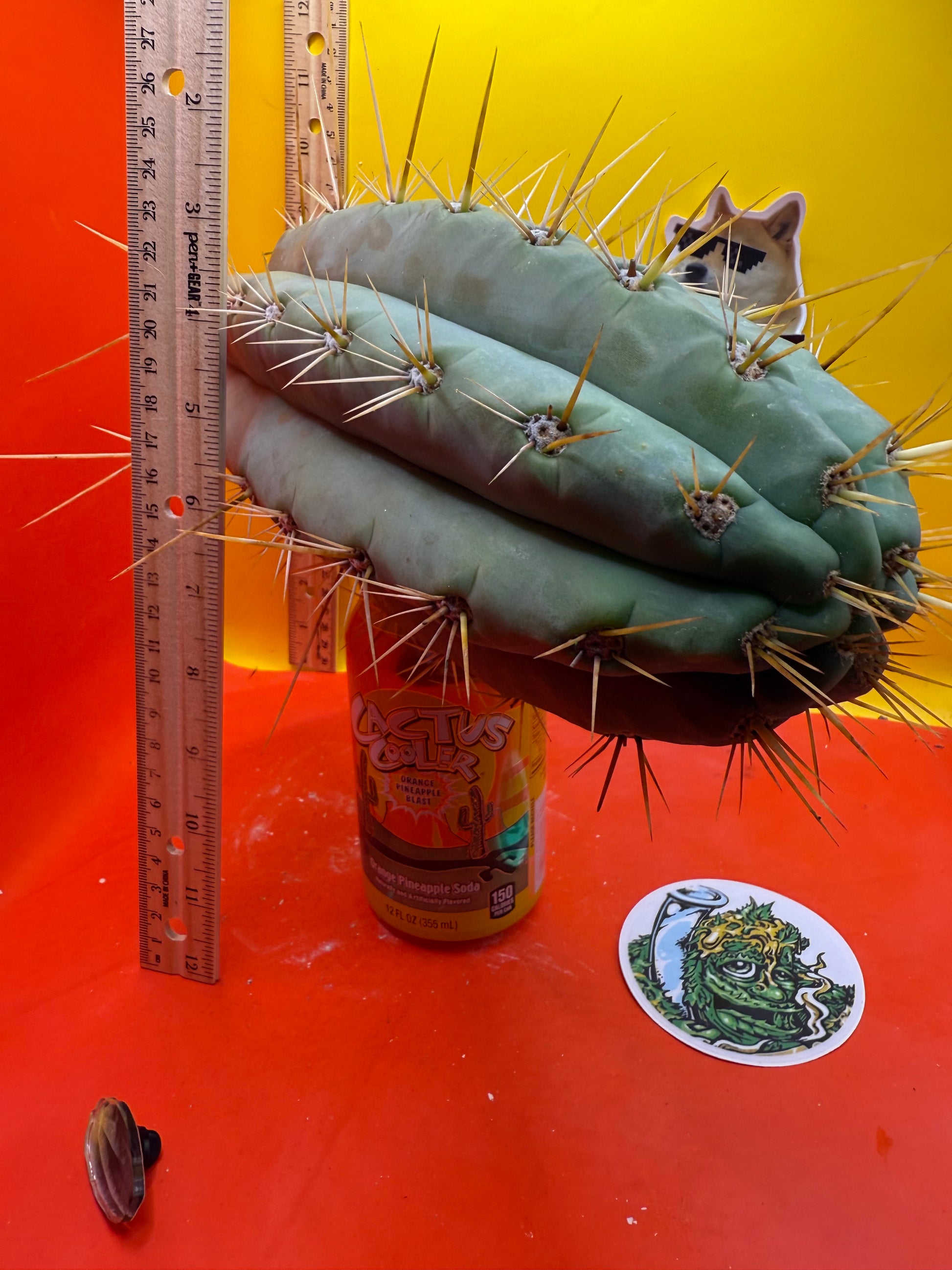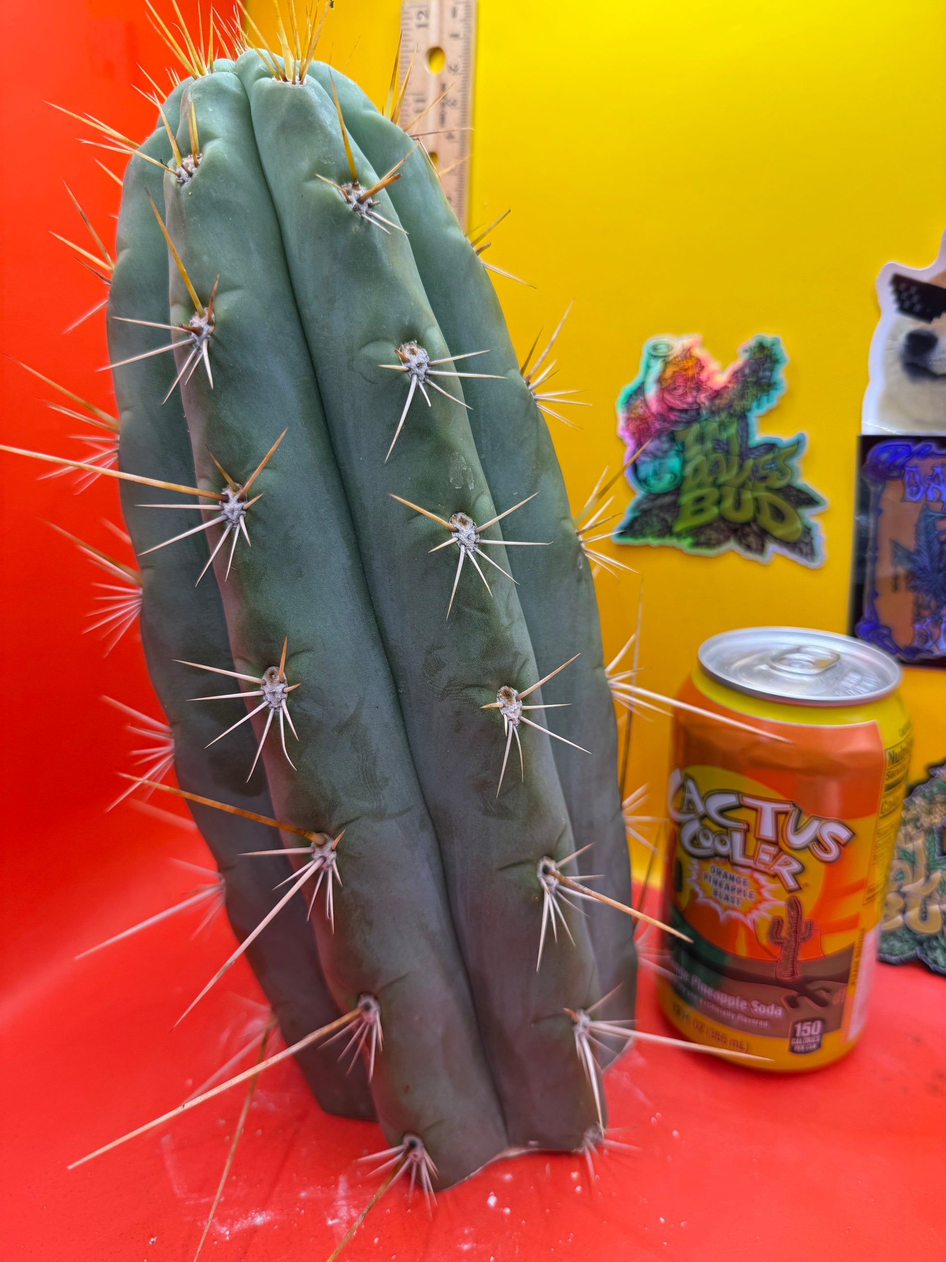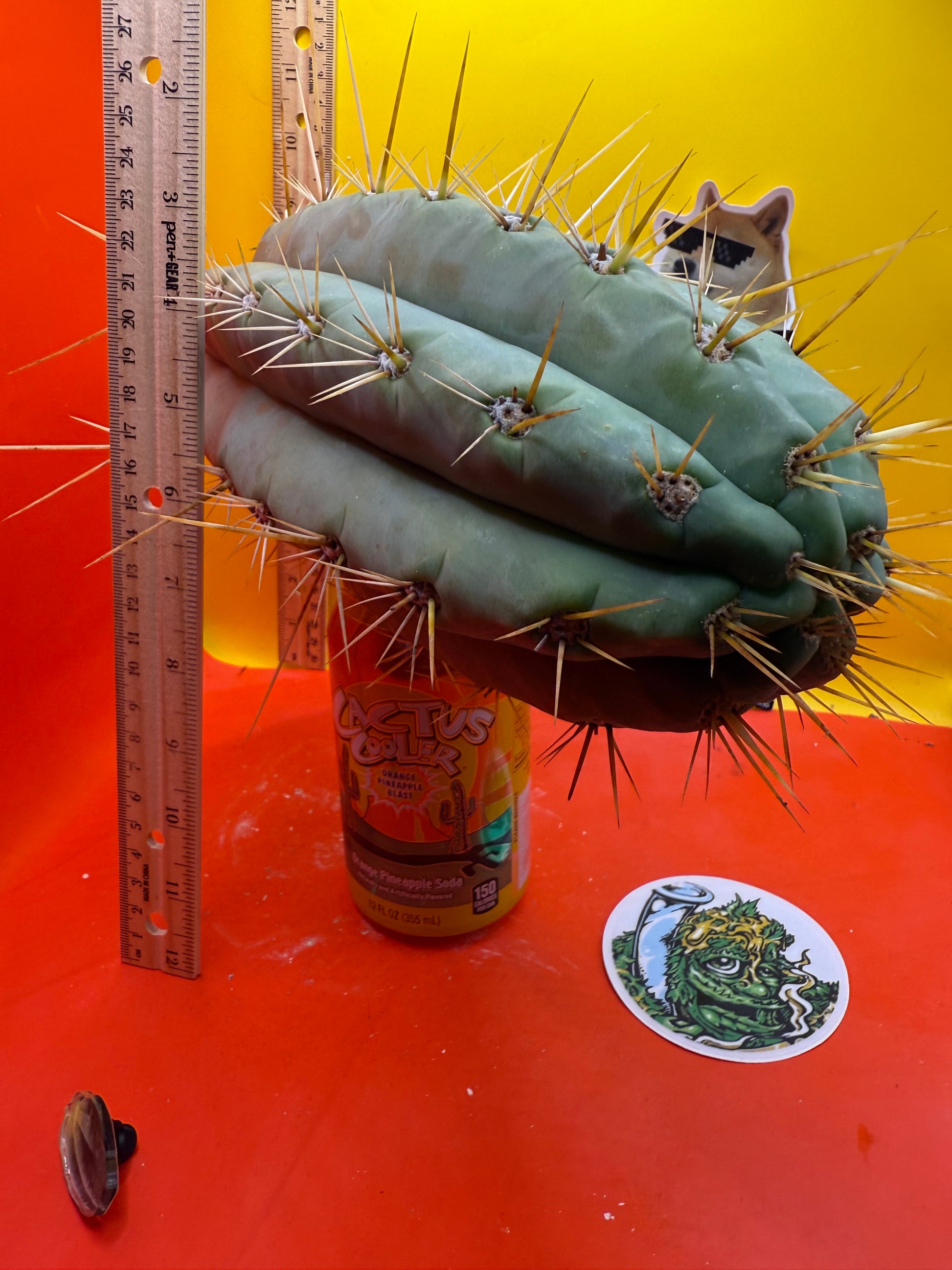 Big huge fat cutting ! This San Pedro cactus is over 4” thick ! Very well hydrated with rubbery blue flesh , and long spines reaching 3 inches in length!! Round white areole adorn the glaucous skin of this beautiful blue beast . This is ready to ship and ready to burst out roots ! Perfect tip and clean cut this is a trophy 🏆!