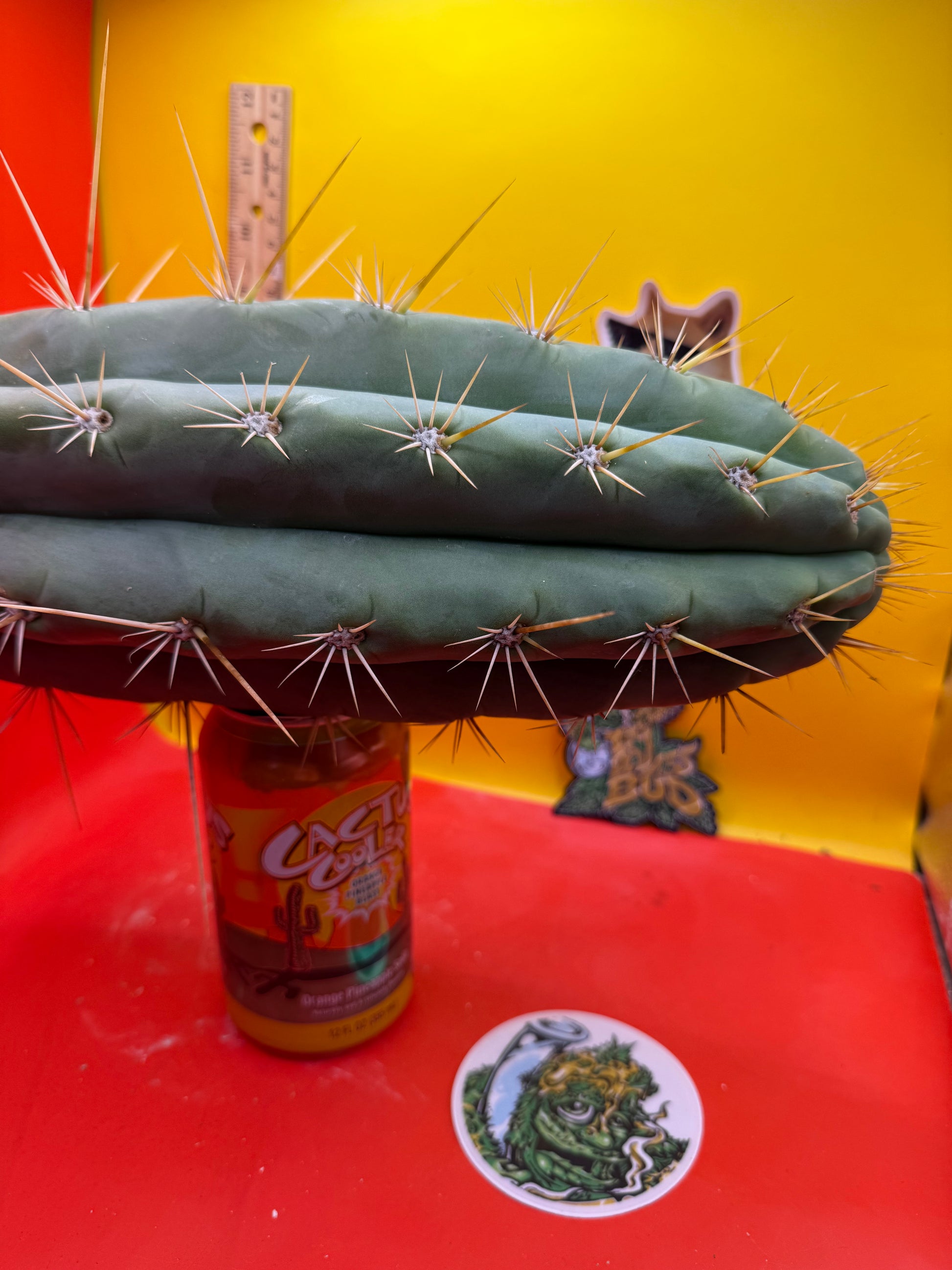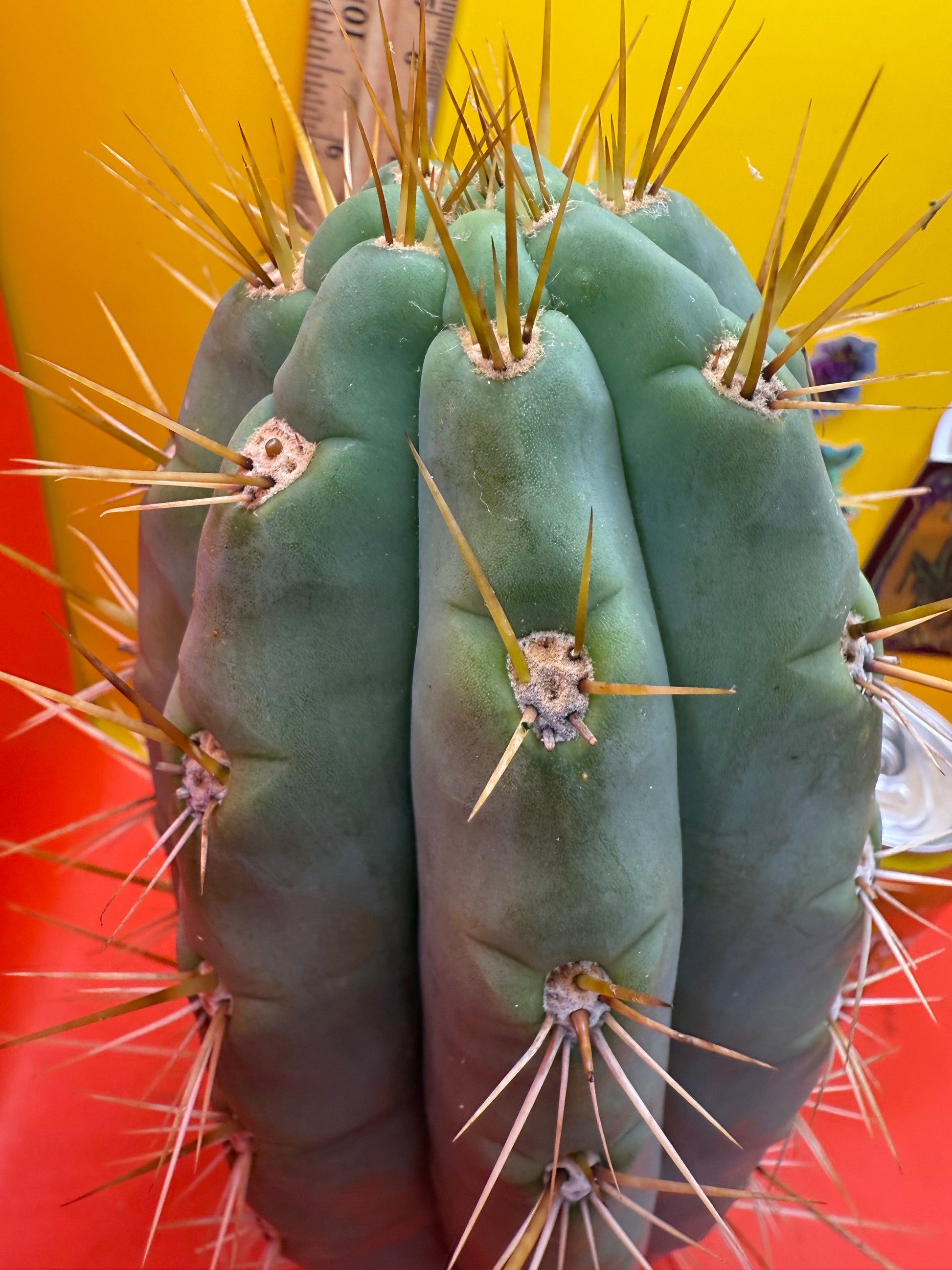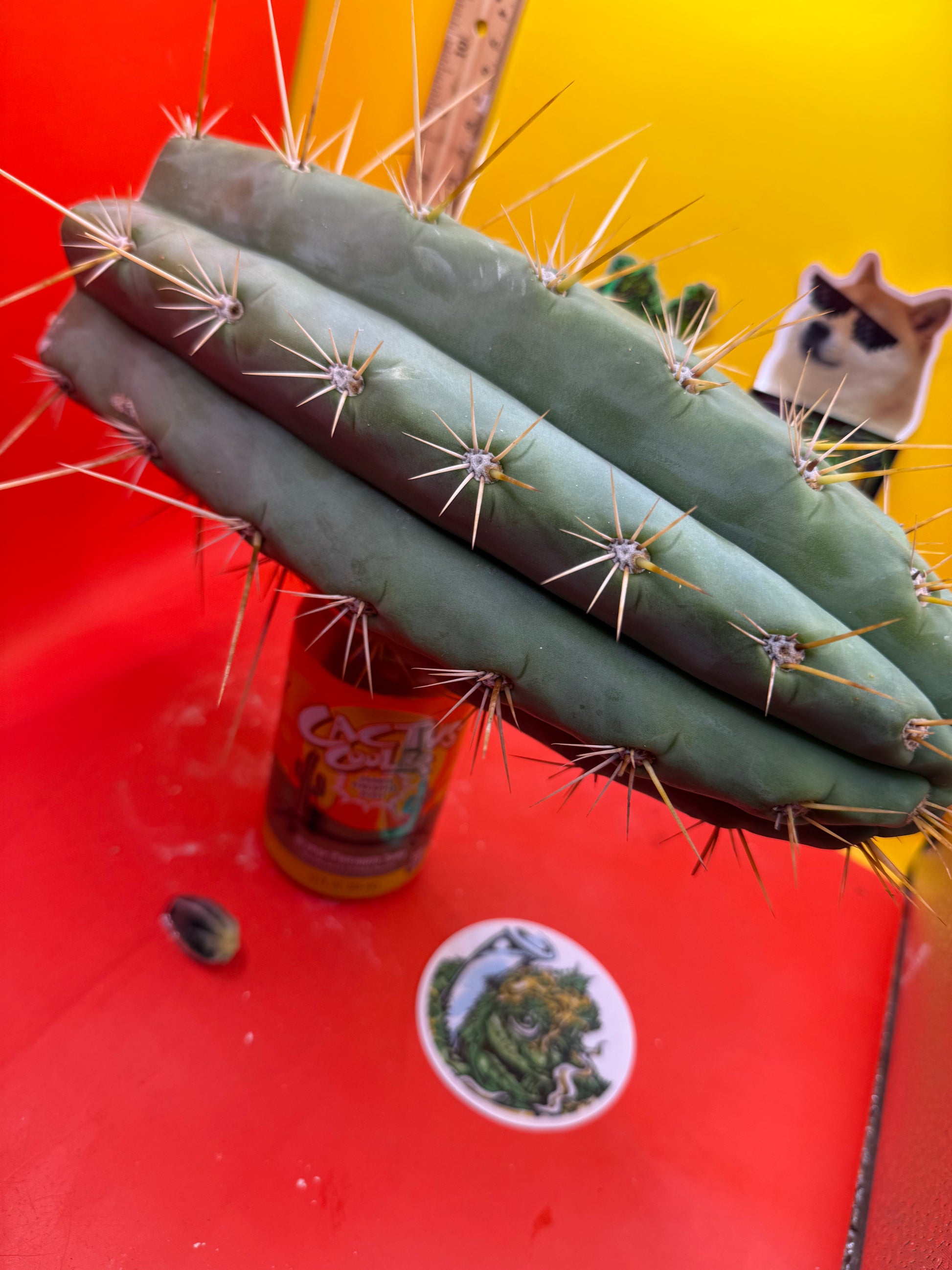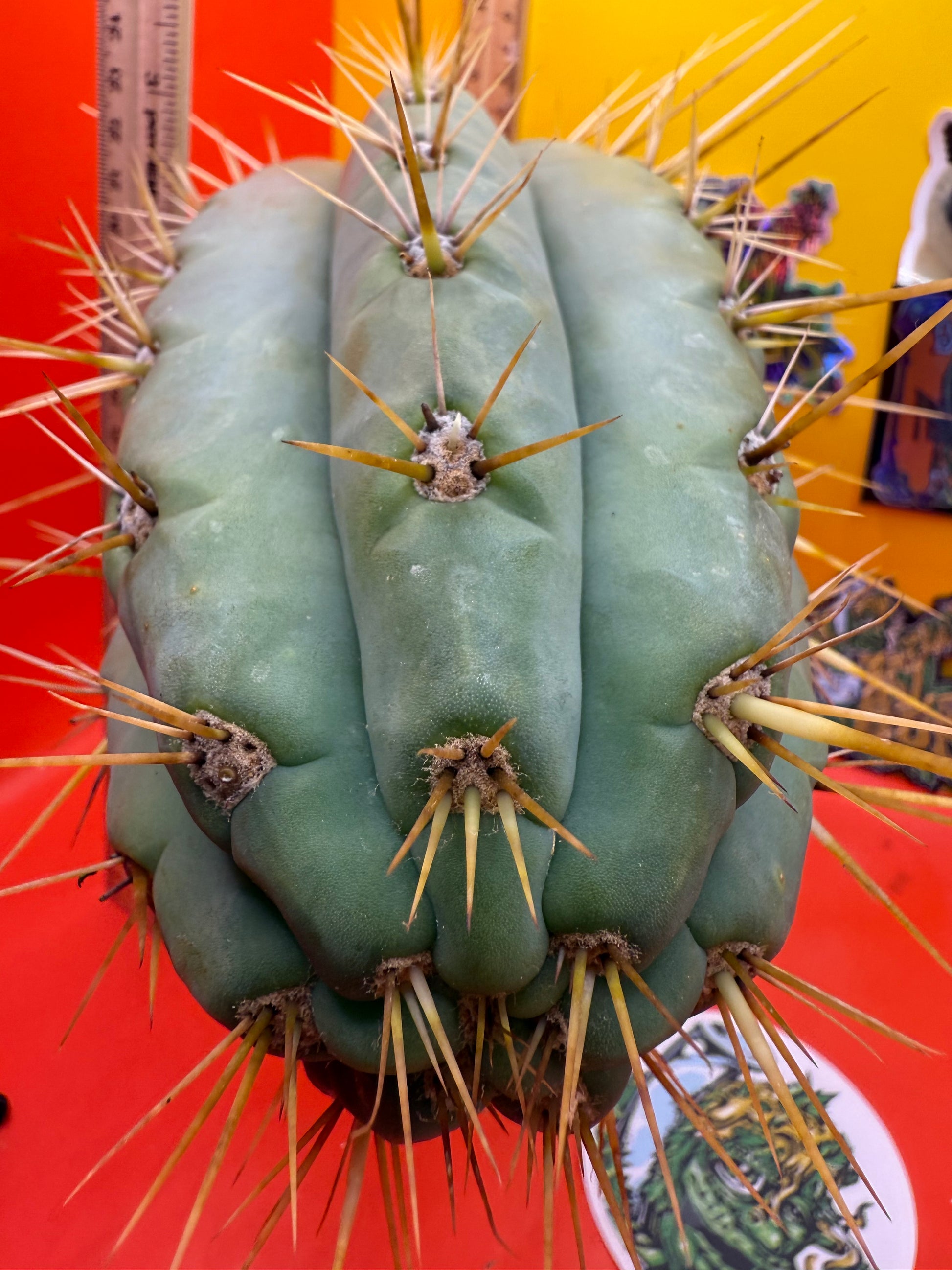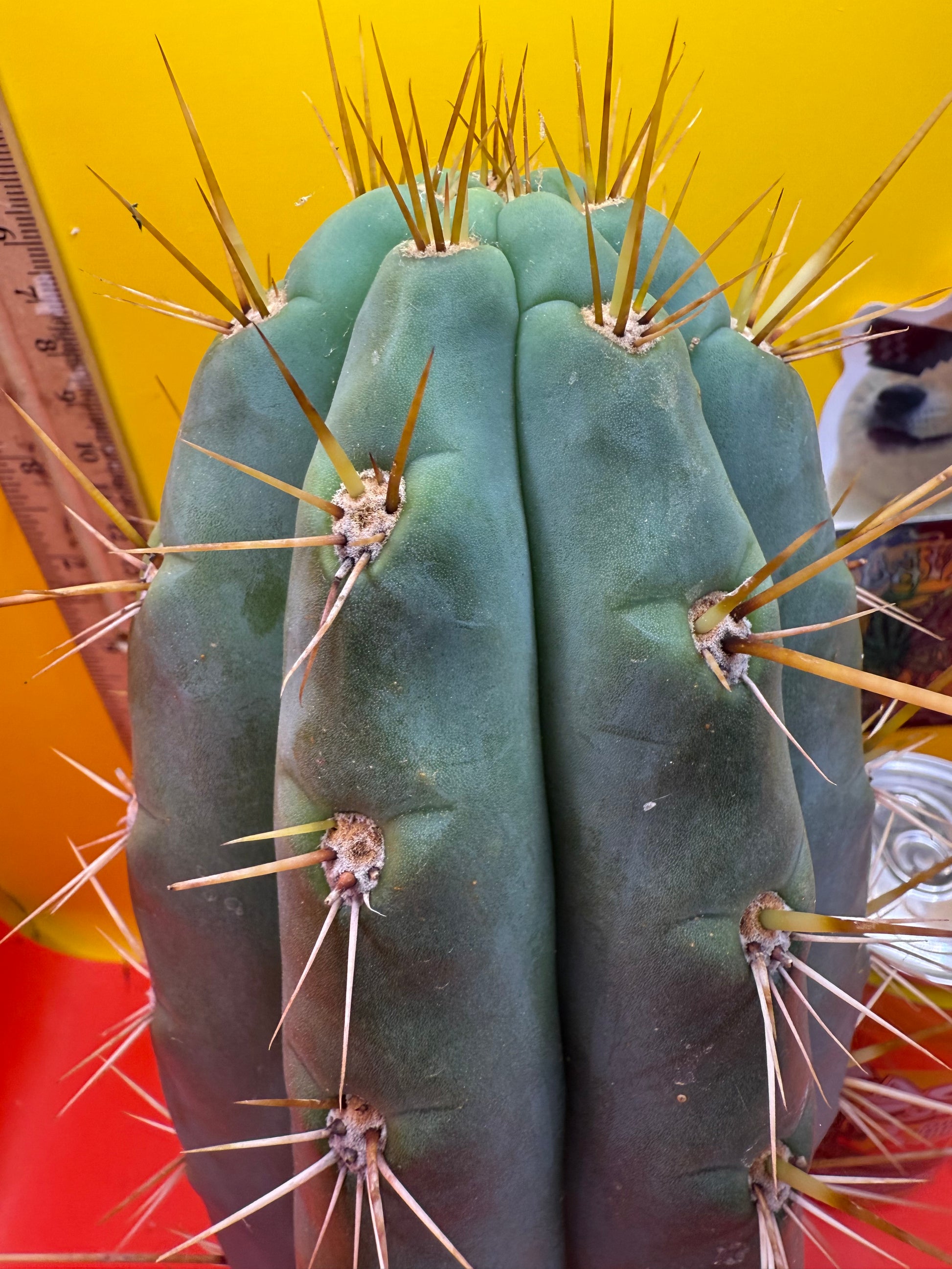 Big huge fat cutting ! This San Pedro cactus is over 4” thick ! Very well hydrated with rubbery blue flesh , and long spines reaching 3 inches in length!! Round white areole adorn the glaucous skin of this beautiful blue beast . This is ready to ship and ready to burst out roots ! Perfect tip and clean cut this is a trophy 🏆!