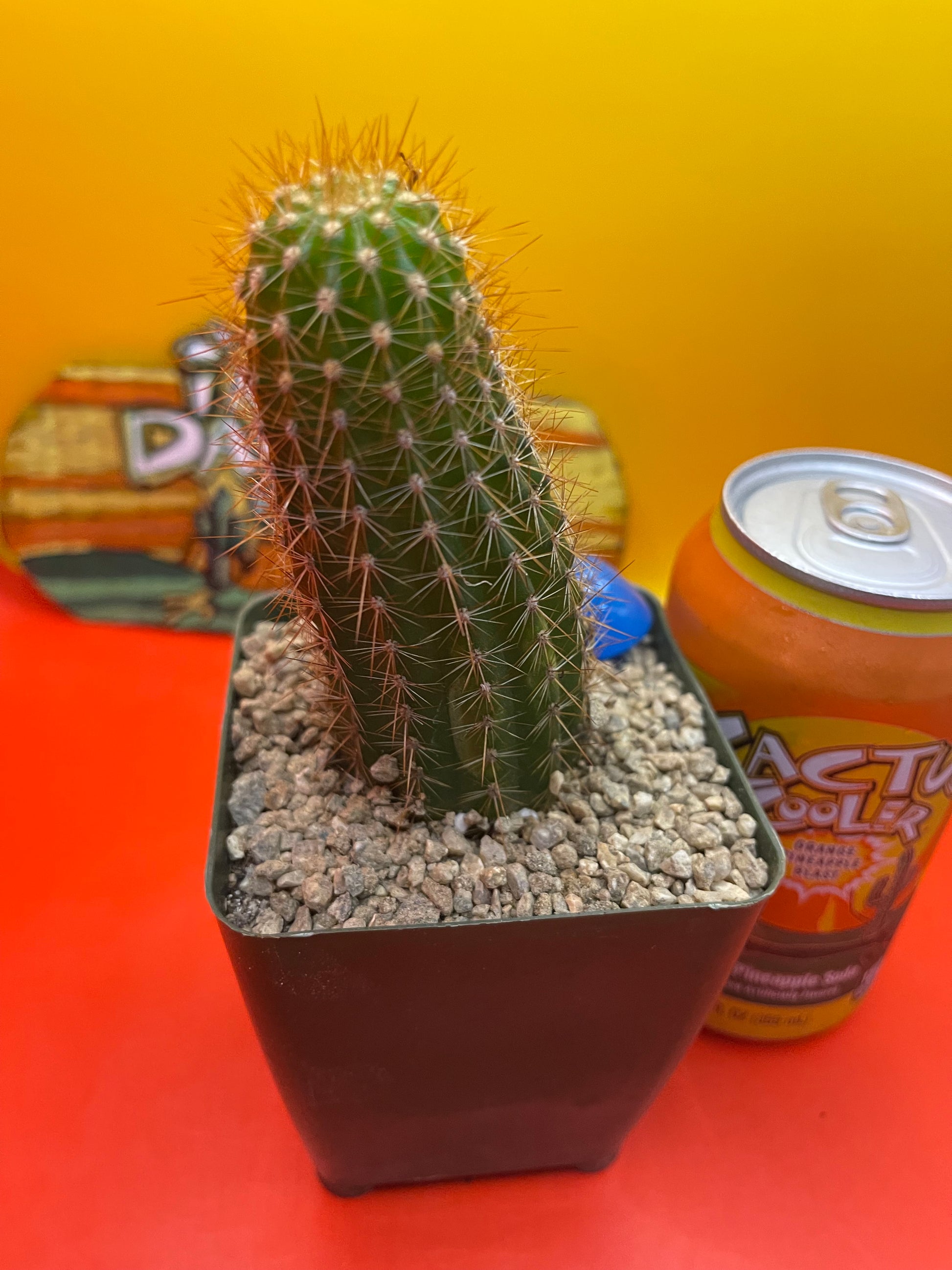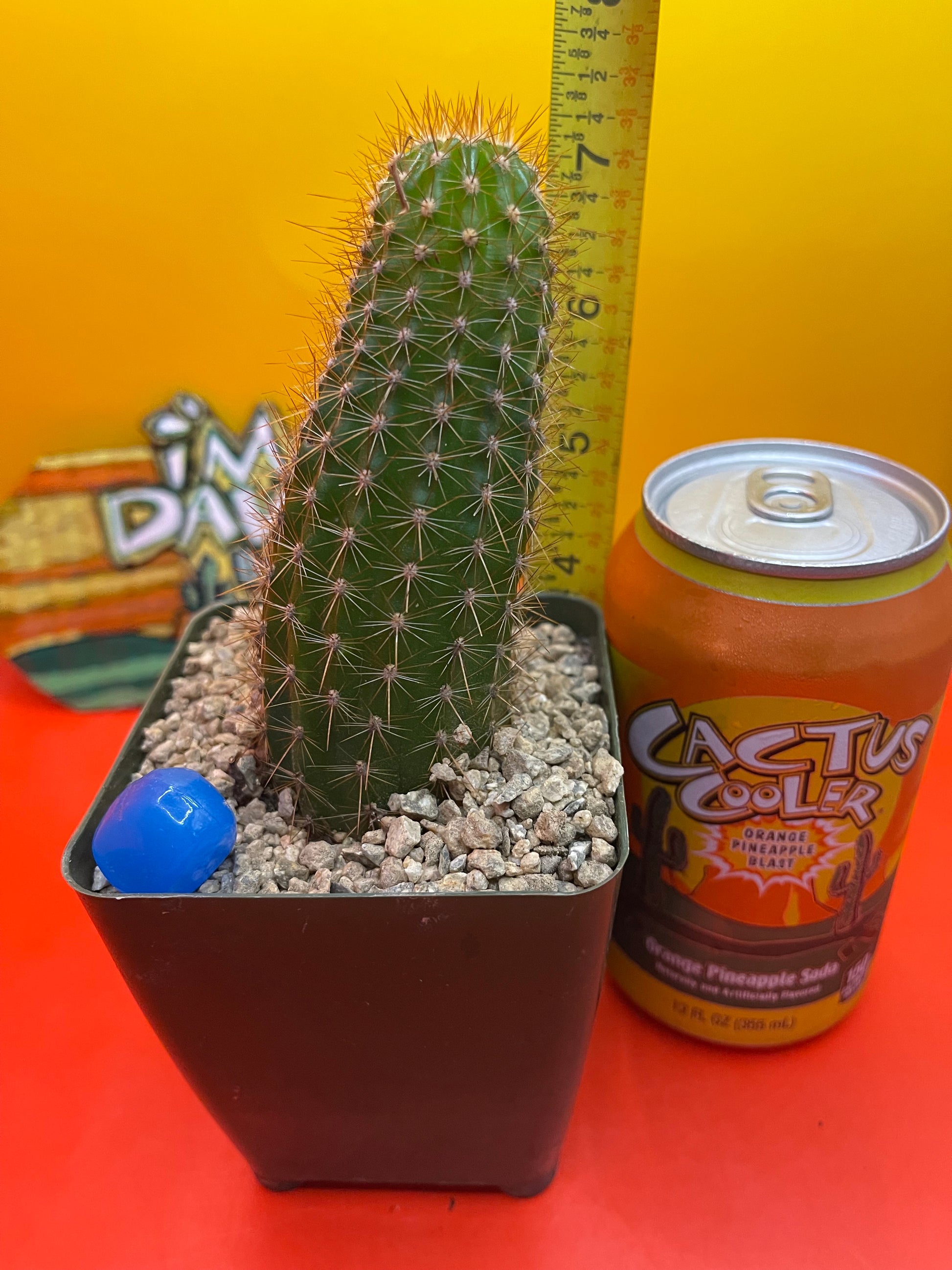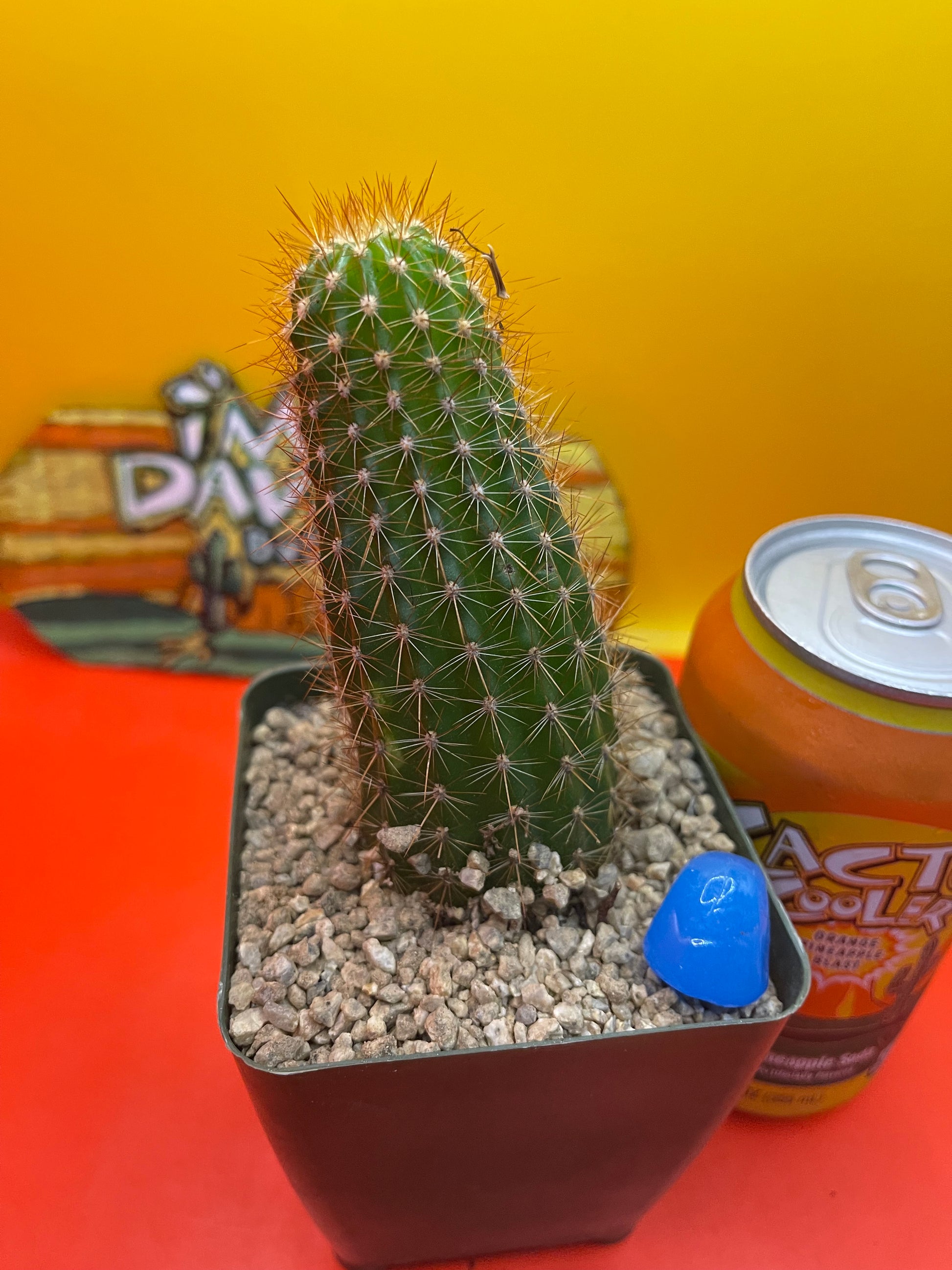 Trichocereus spachianus gets a huge beautiful white flower and can be cross pollinated with other San Pedro cacti! This is a clumping cactus that spreads and grows quite aggressively , works great as a rootstock for grafting & they bloom throughout summer ! I personally cut this off my stand and planted it in this 4” tall green pot ! This cactus ships to you in the pot with the top dressing - EXACTLY THE WAY ITS PICTURED- with the glass bead , I’ll package it carefully so it arrives safe & sound ! This will continue to grow taller and wider and will put out new pups from the base within a month or two !