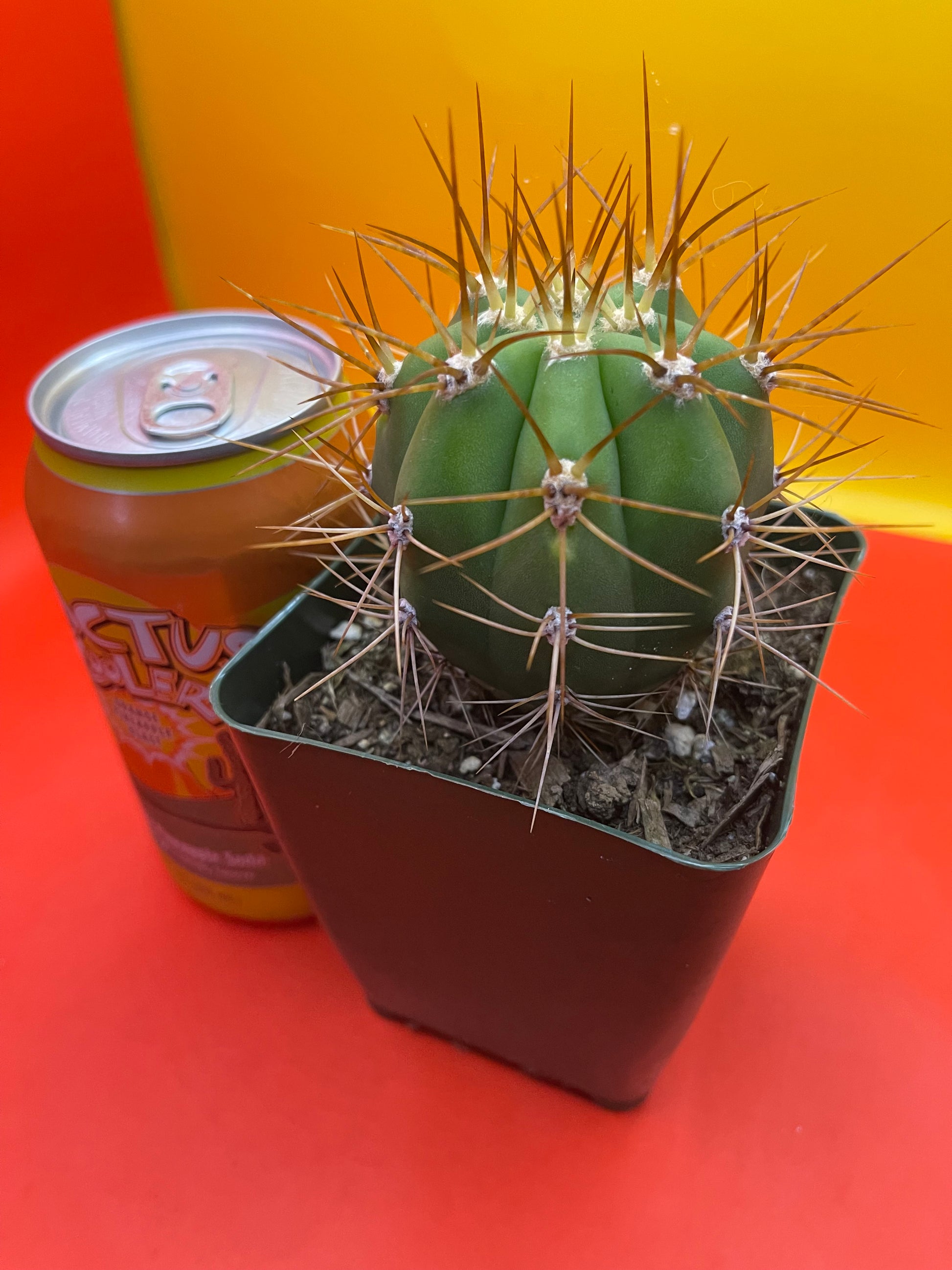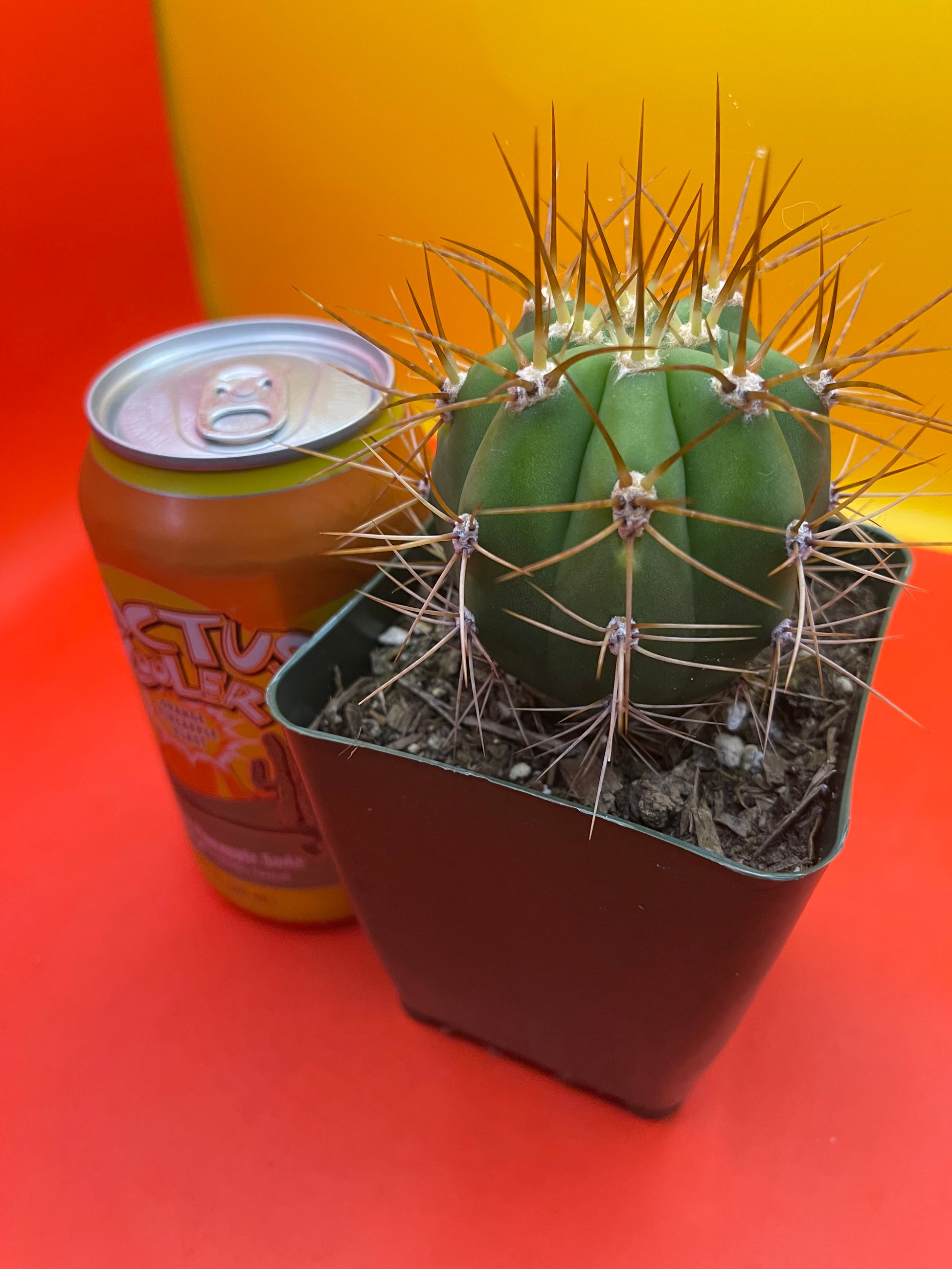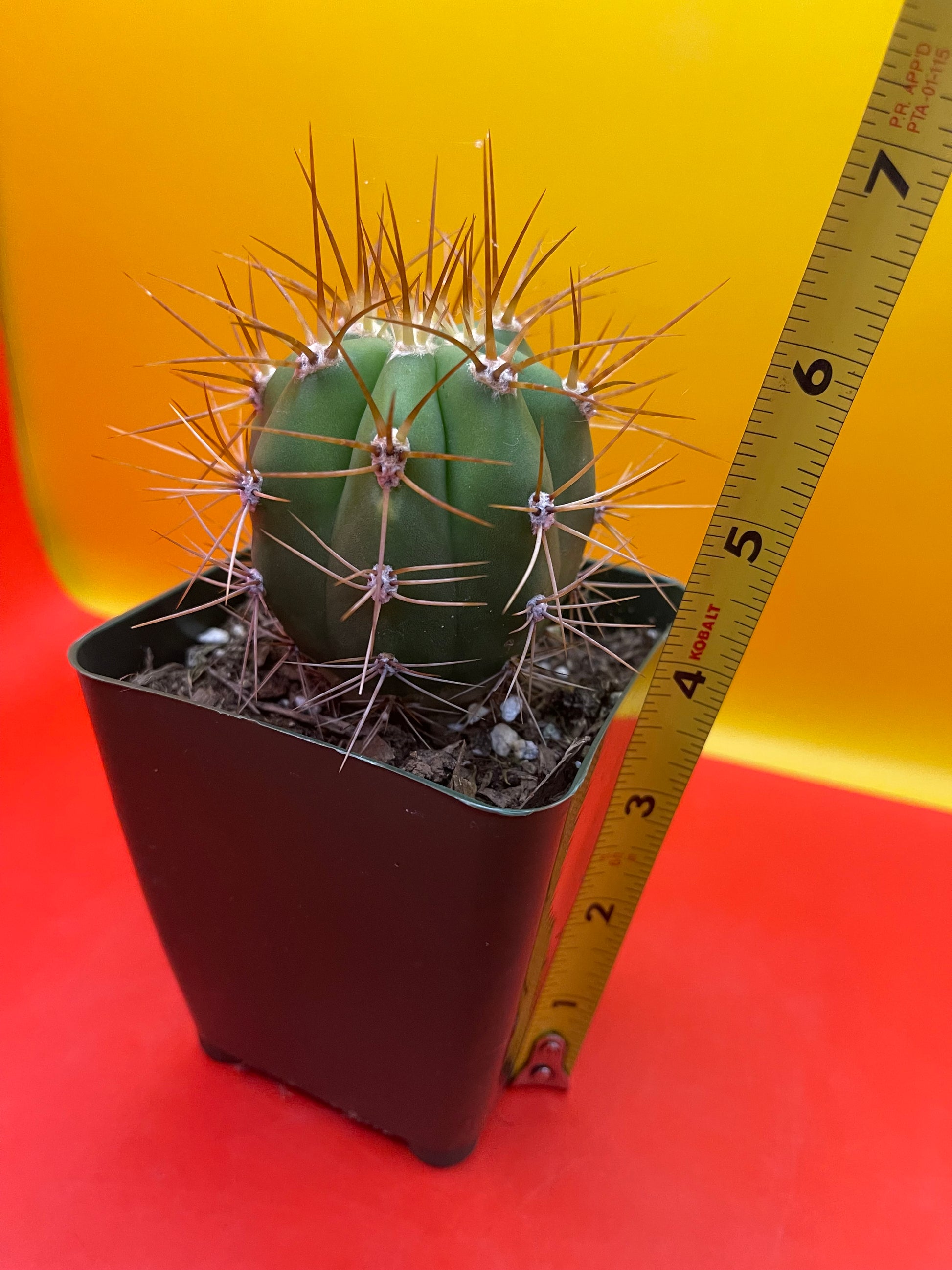 Big , Fat , Branching cactus when mature! Highly sought after these are a MUST for any cactus collection! Very fun to watch grow , long curved spines give a strong look and protect this fleshy cactus from critters ! These are fully rooted and grown from seed , they produce a beautiful flower and can be cross pollinated with other trichocereus! Being grown from seed gives them each their own unique DNA although they all look very similar. You will receive 1 terscheckii rooted and in its pot . This cactus is growing healthy in its 4” tall green pot with a high quality custom cactus soil and the pot itself has great drainage!!
