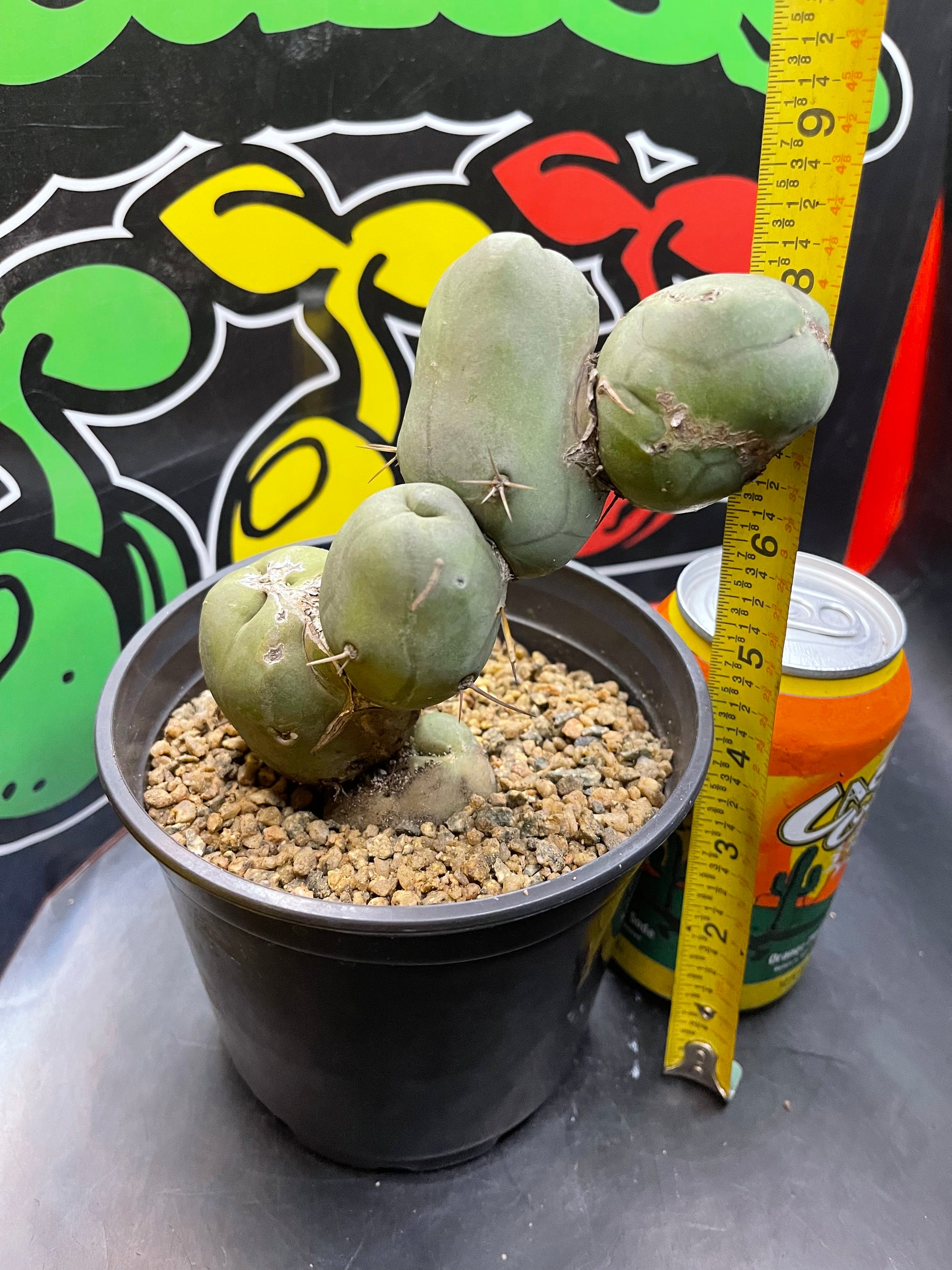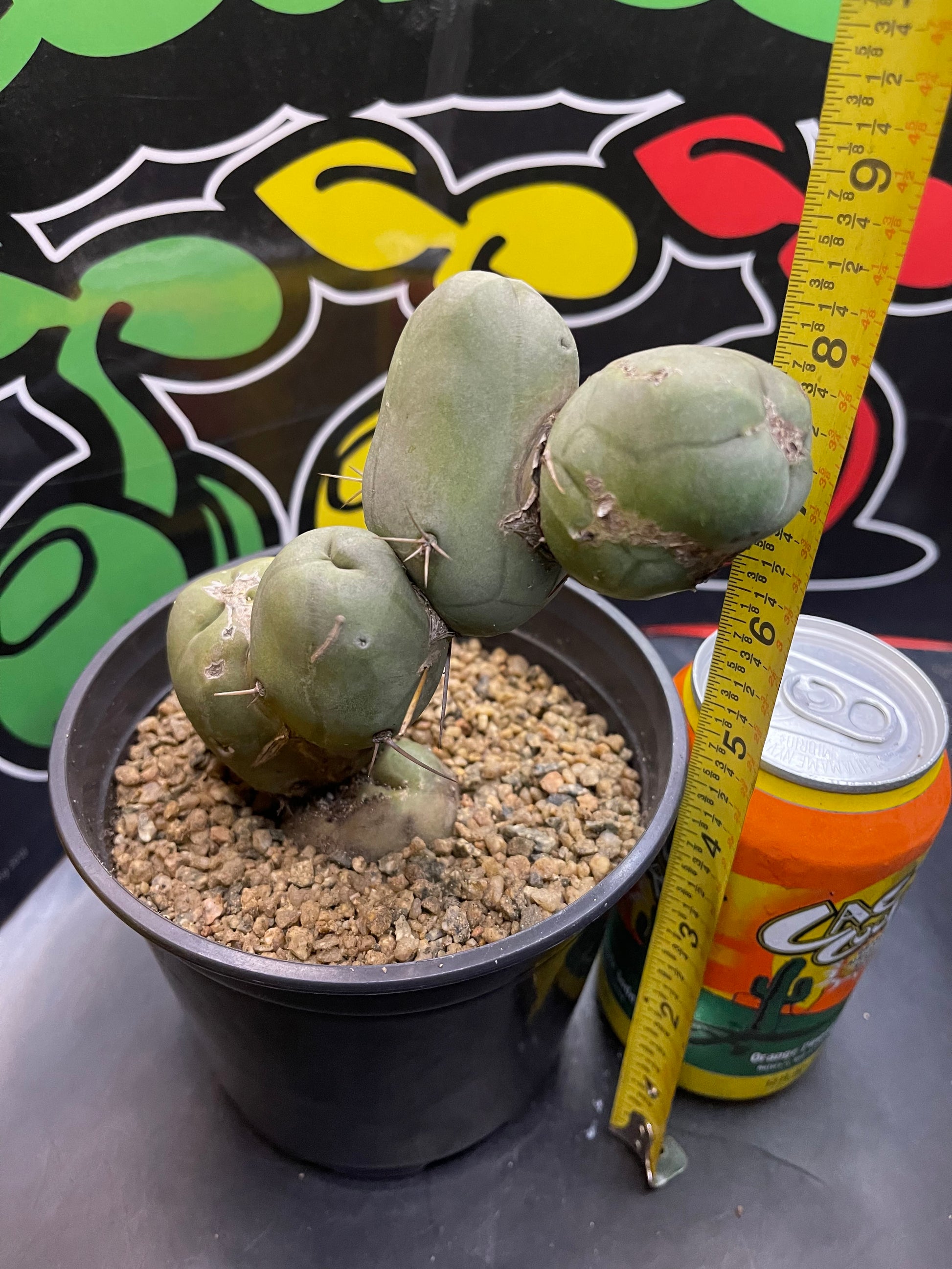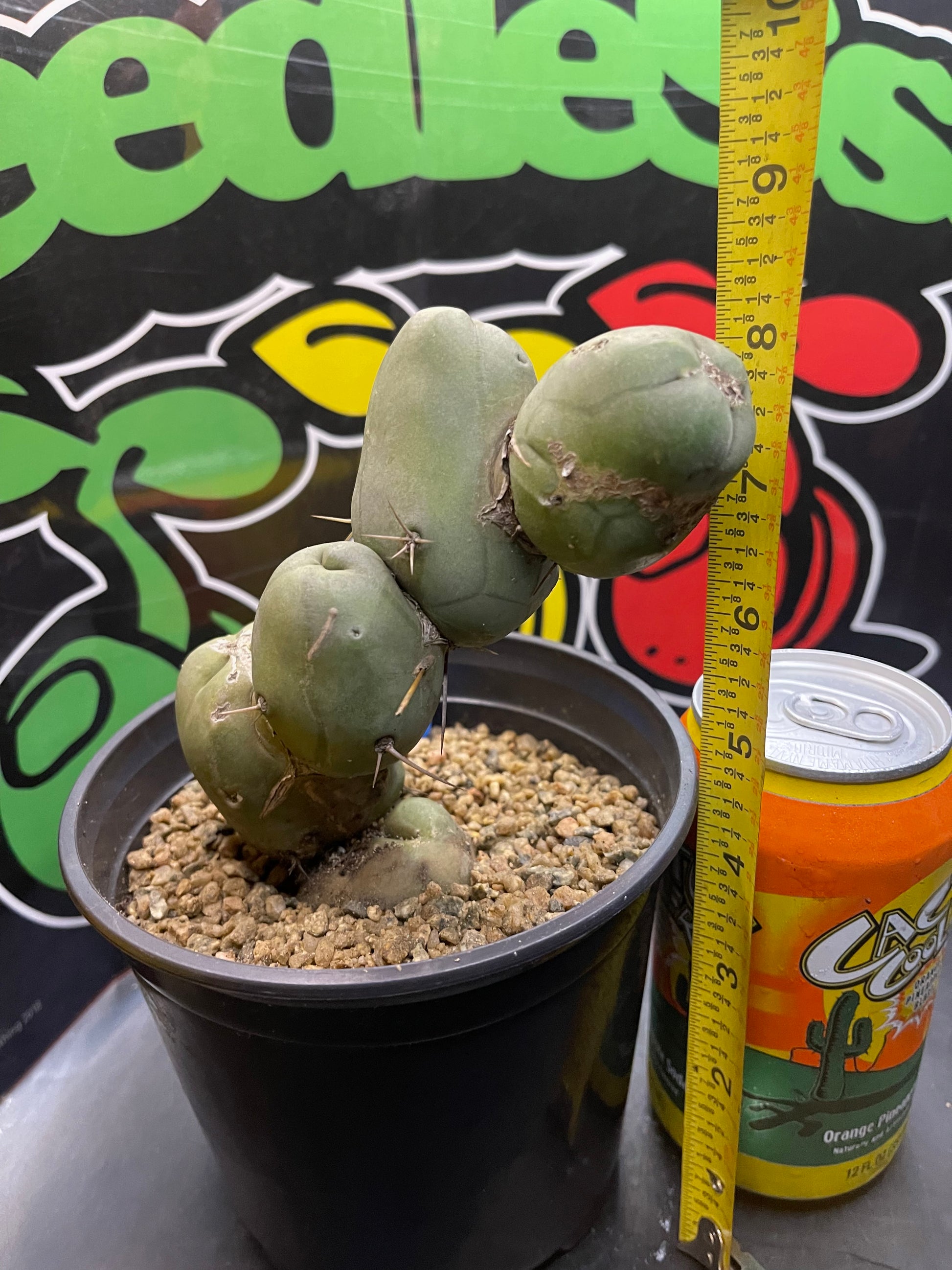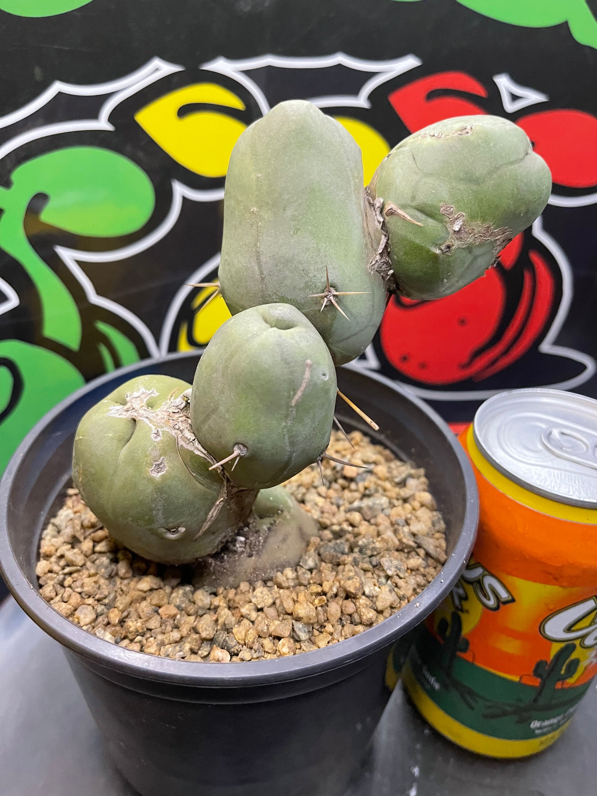 Trichocereus bridgesii monstrous Type B - shortform ! This is a half gallon pot , fully rooted , I took this cutting myself , planted and grew it just for you !!!! Happy to send one of my special cactus to your home !!it will arrive just the way you see it , it it’s pot will top dressing and a lil blue glass for decoration- I’ll pack it with love and care so it arrives safe and sound !