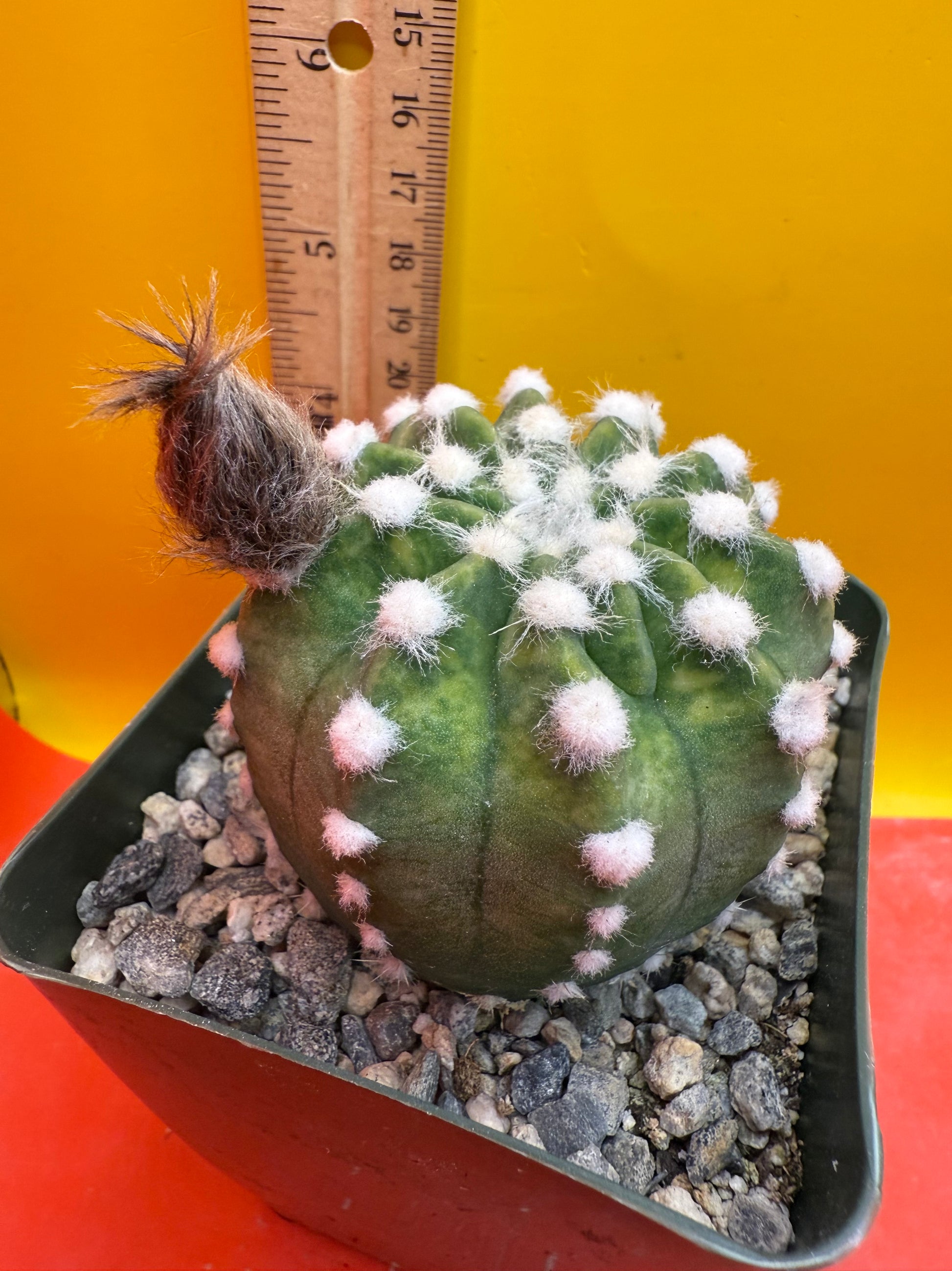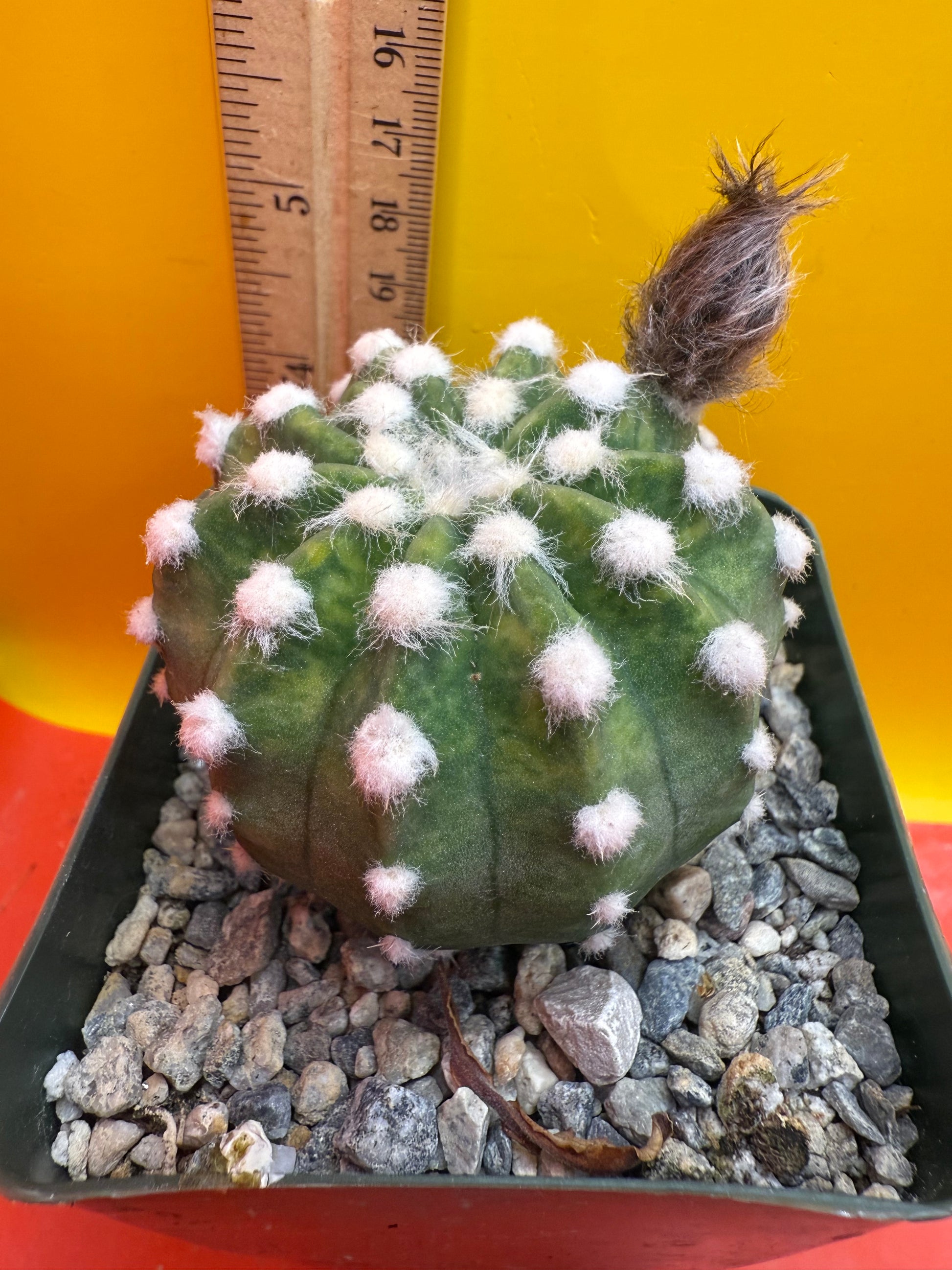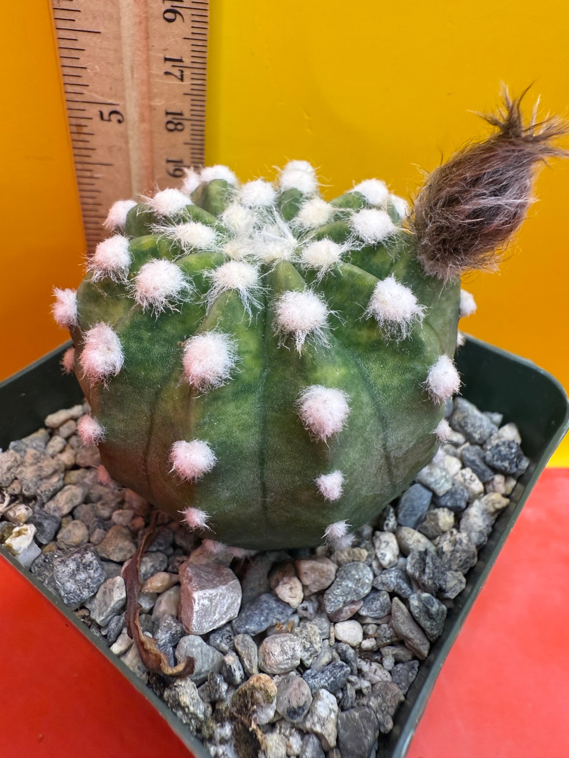 This is a seed grown echinopsis Domino that has some cool fluffy areole ! It is mature at flowering age and it has bloomed for me before !! Ships to you in its pot , this is fully rooted and growing very happy in custom blended cacti mix ! Will flower soon ! This is ready to ship in its pot - you will receive a cactus the same size as the one pictured.