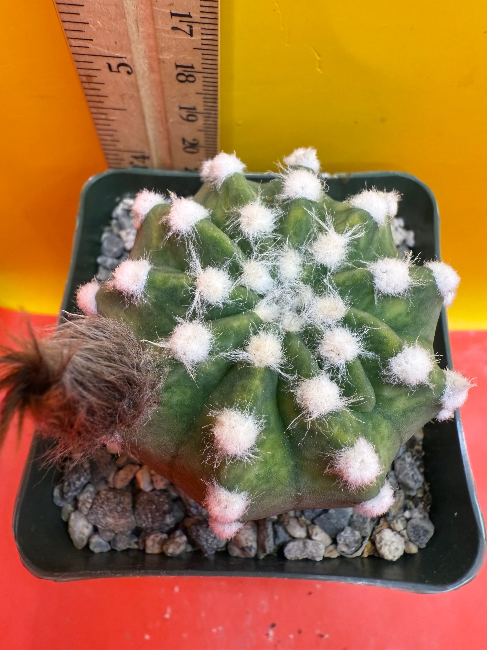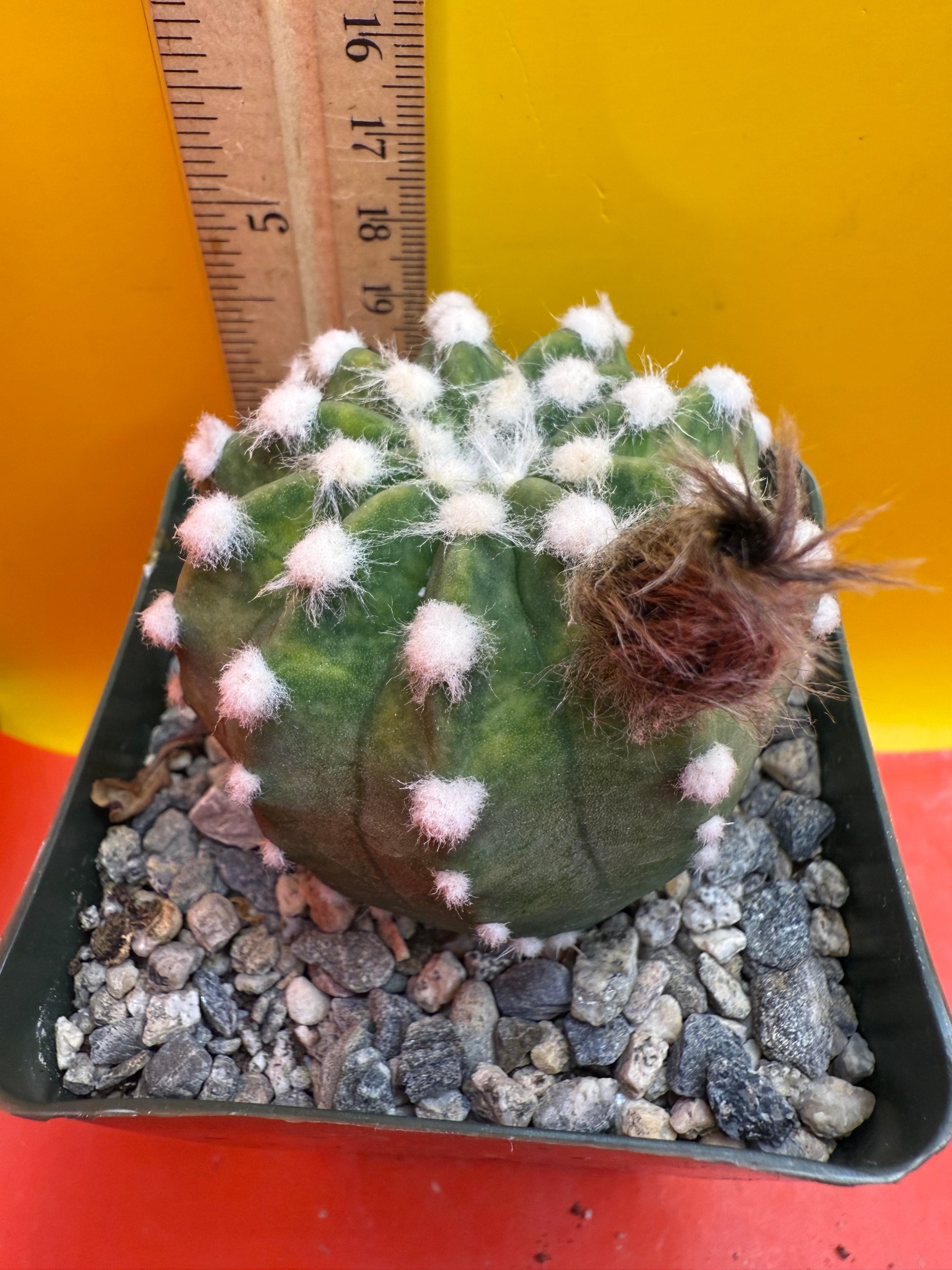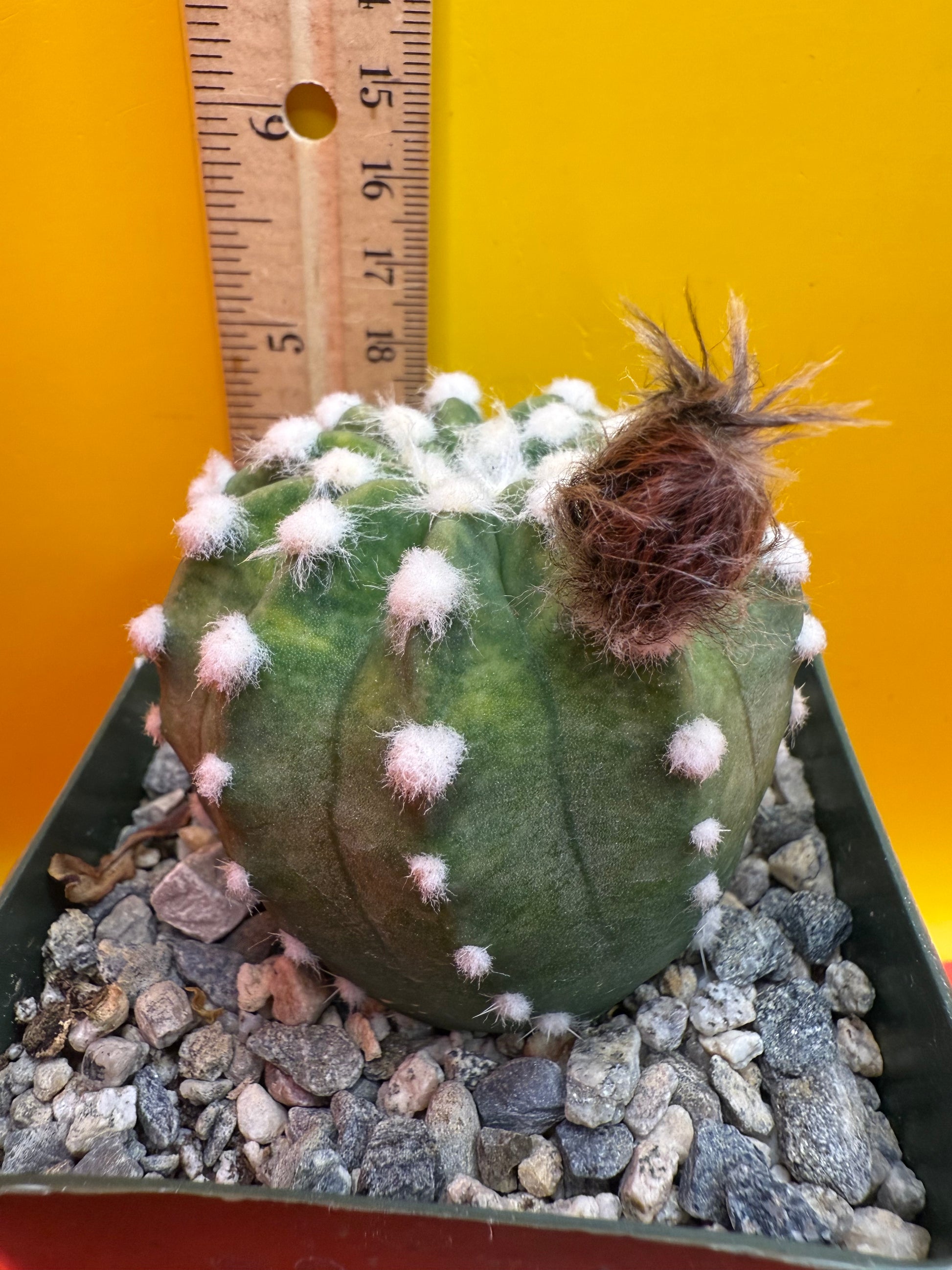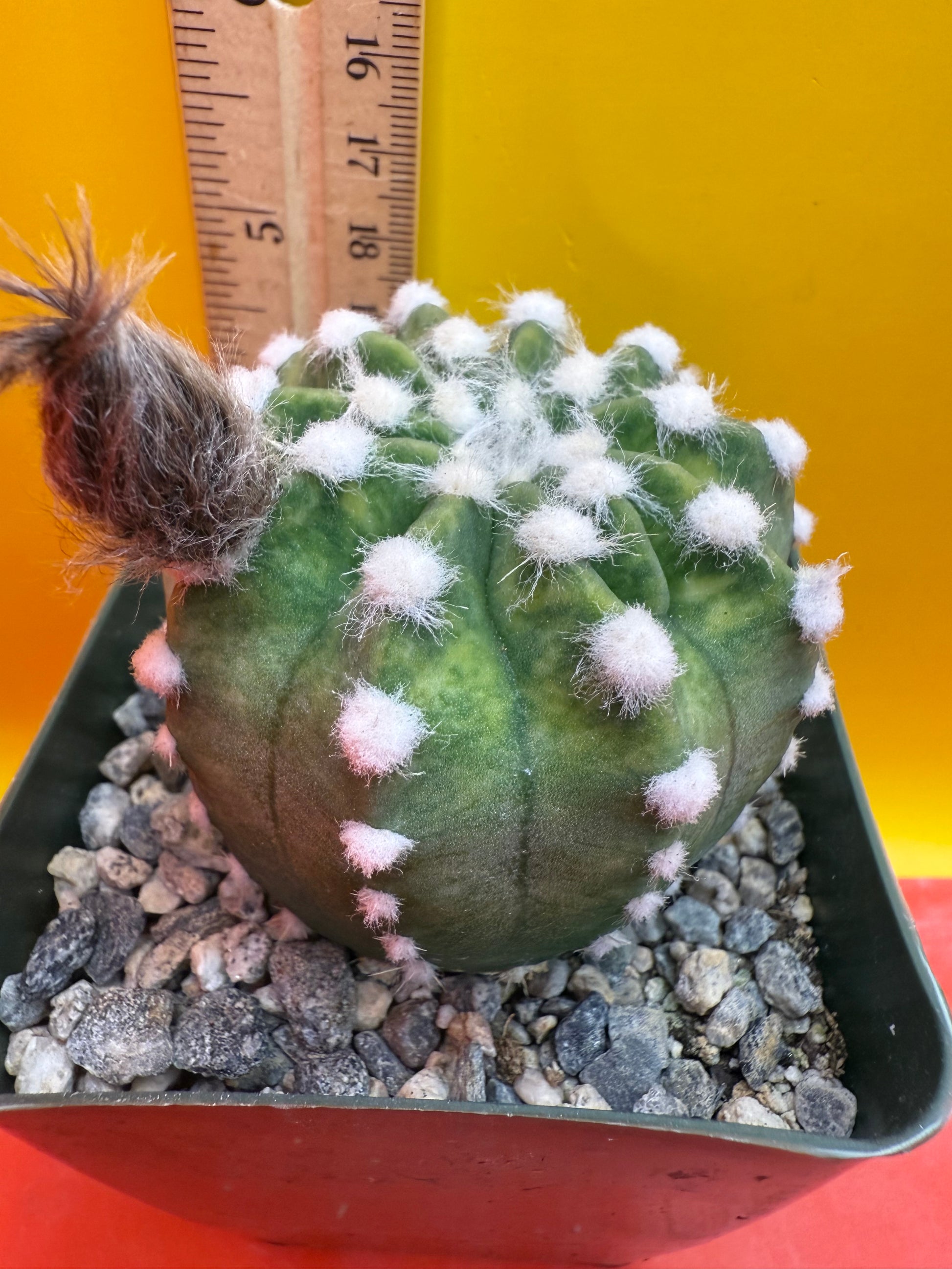 This is a seed grown echinopsis Domino that has some cool fluffy areole ! It is mature at flowering age and it has bloomed for me before !! Ships to you in its pot , this is fully rooted and growing very happy in custom blended cacti mix ! Will flower soon ! This is ready to ship in its pot - you will receive a cactus the same size as the one pictured.
