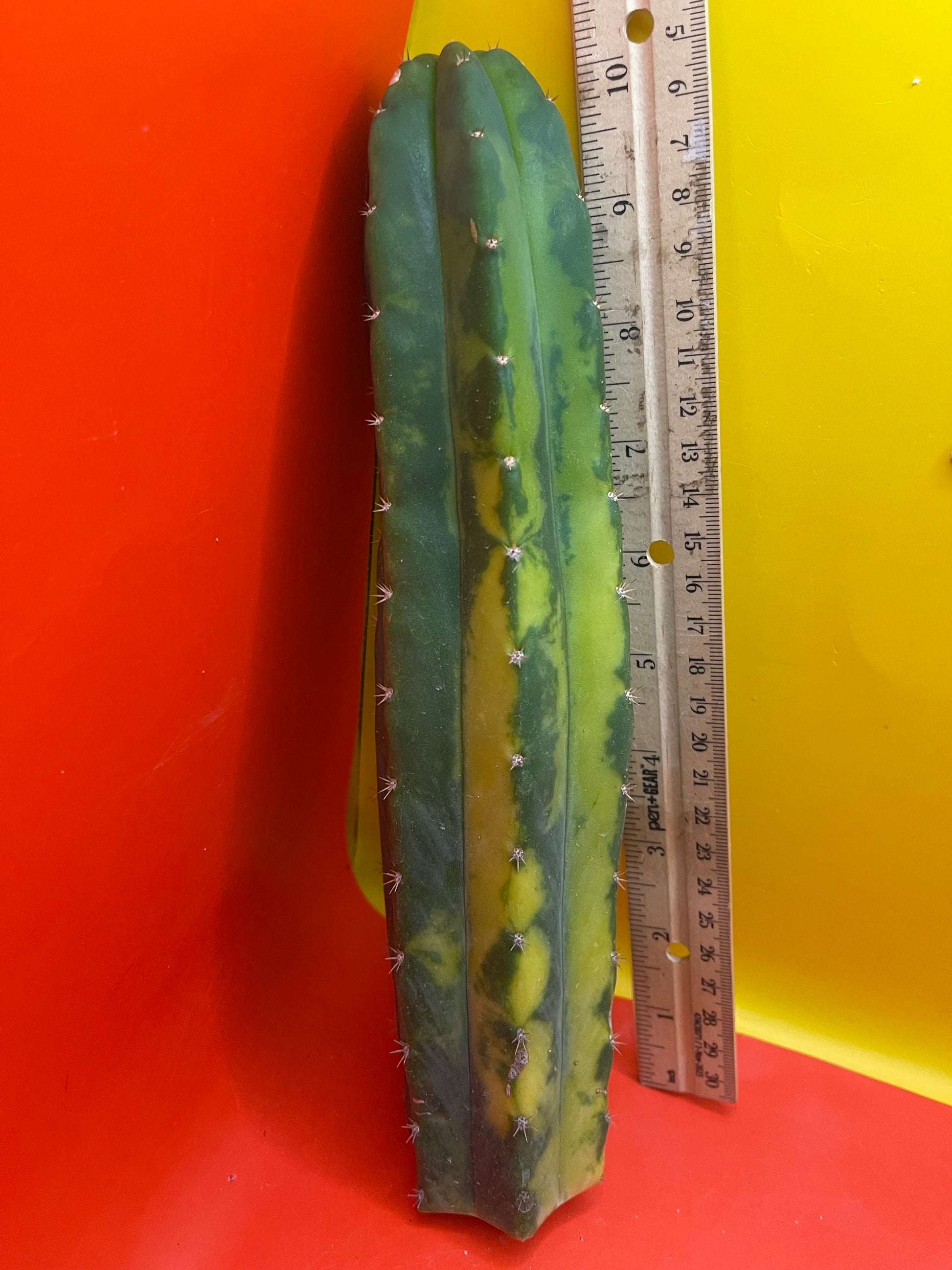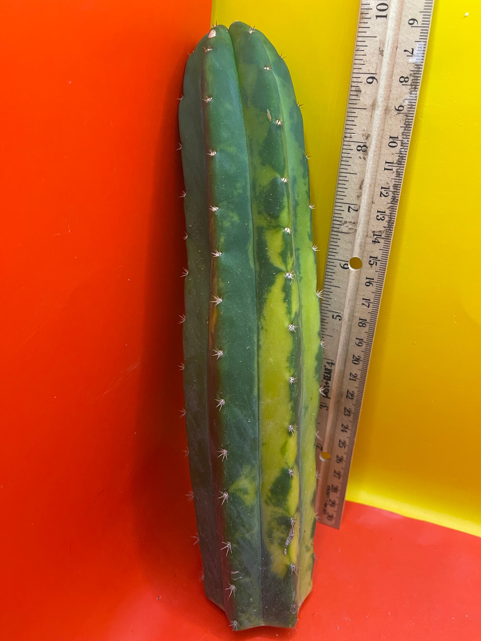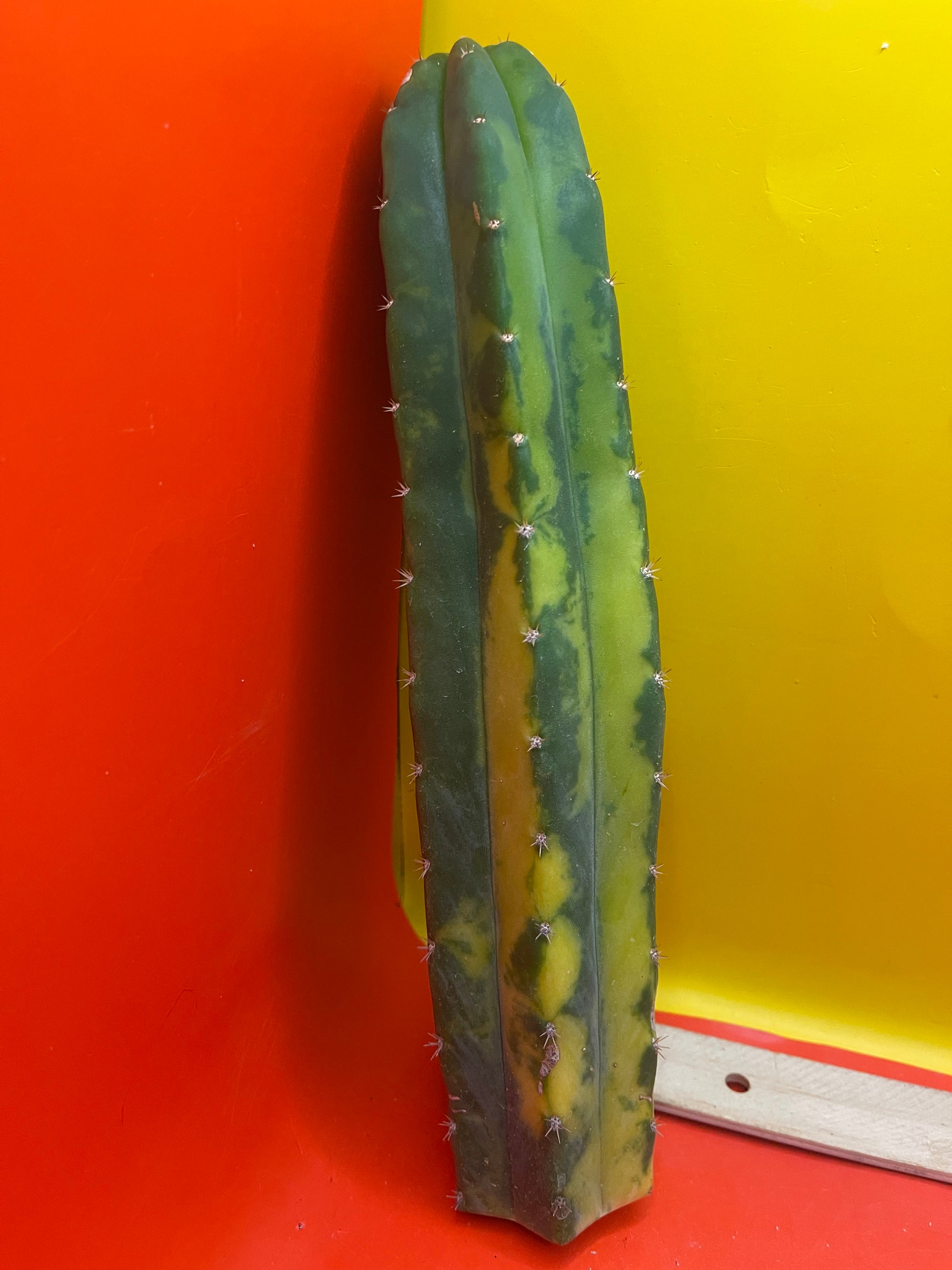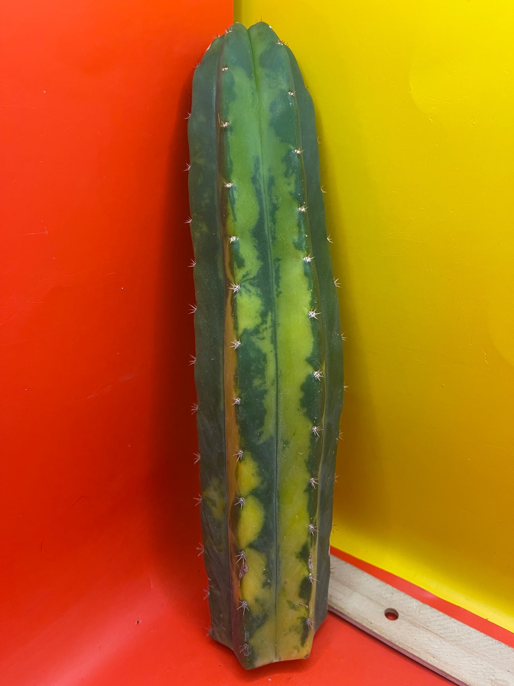 Short spined Trichocereus fully variegated!! Awesome color all around on this beaut !! Tons of marbling , solid yellow and different shades of green !! Healthy active growing varigated tip ! Super rare , killer peice I grew myself and I’m very proud to offer it to you ! Flawless this has no blemish’s and is clean cut , ready to ship and be planted directly into soil or can be cut up to make a multitude of grafts ! Has enough green to live on its own roots !