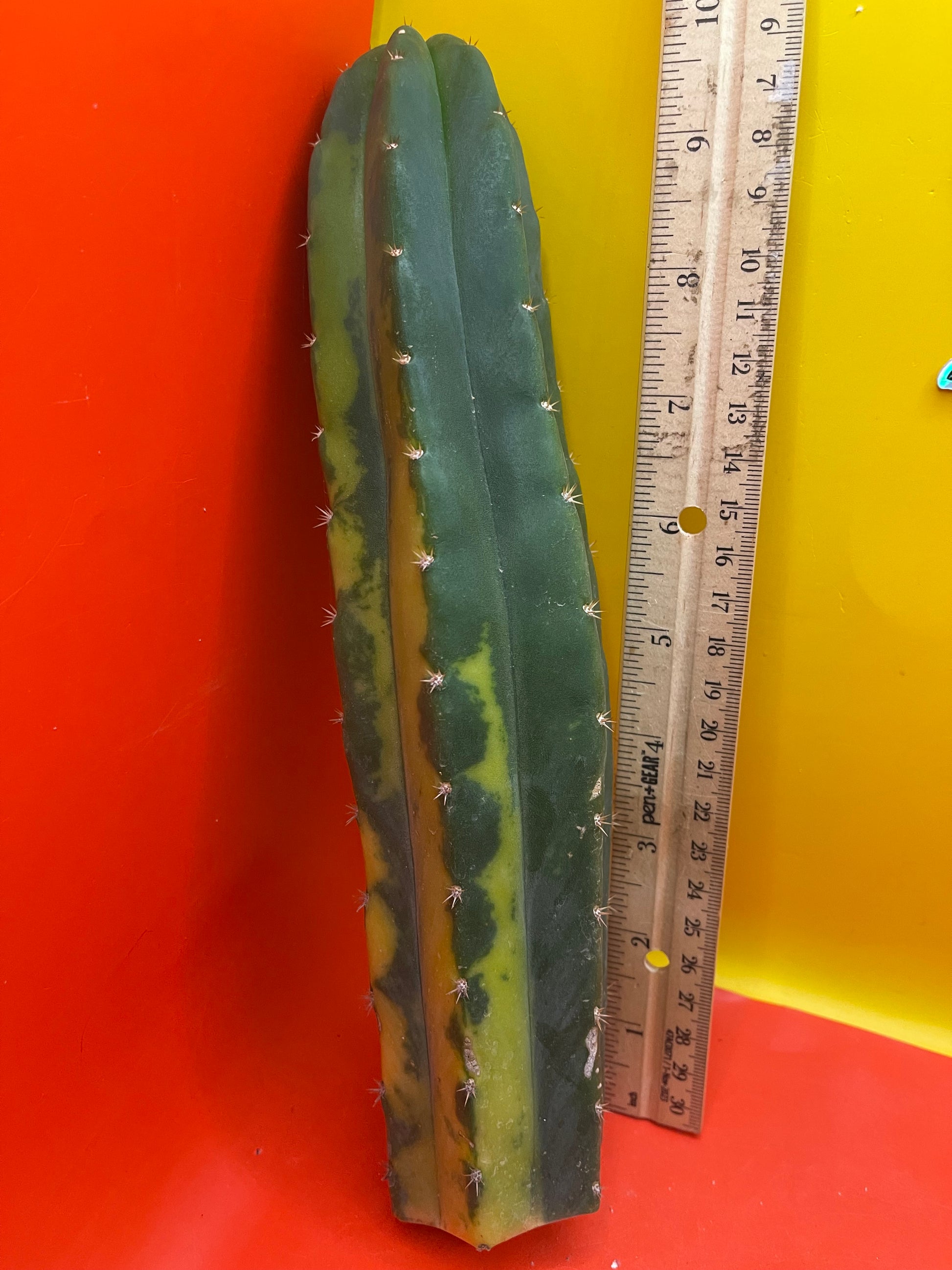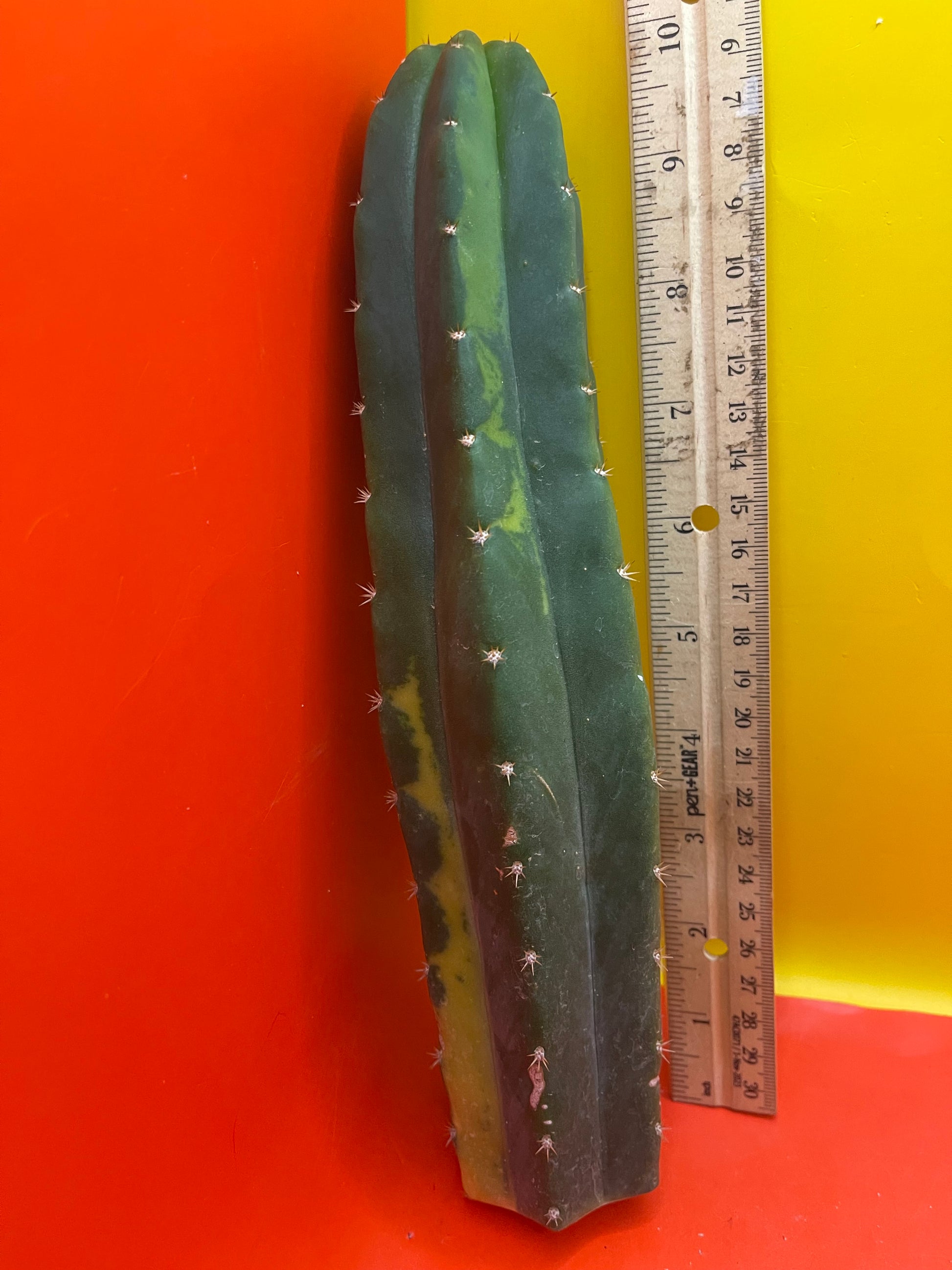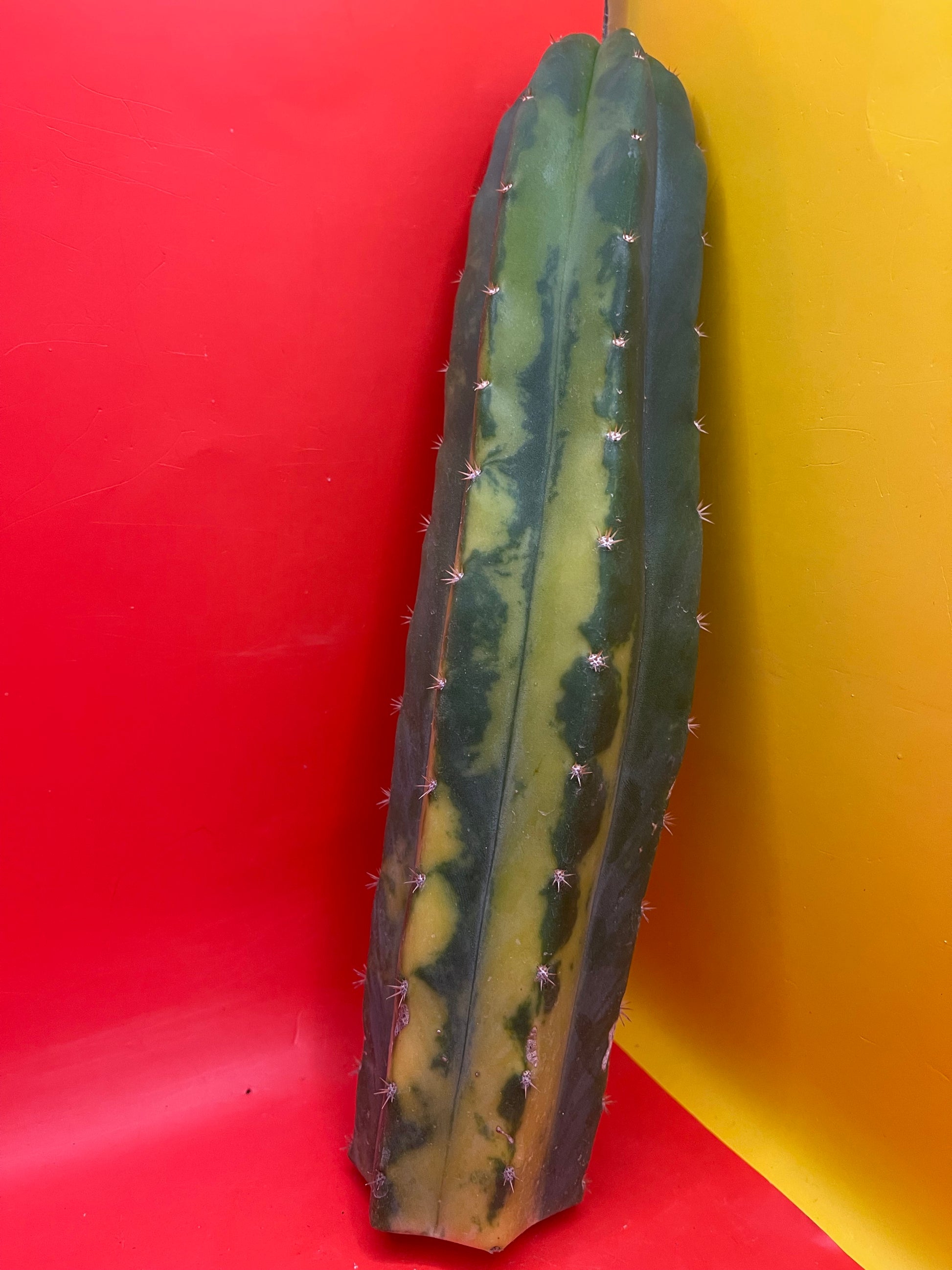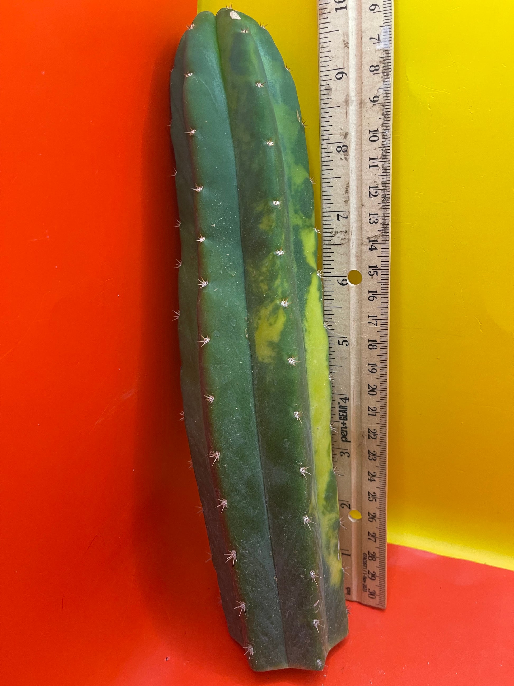 Short spined Trichocereus fully variegated!! Awesome color all around on this beaut !! Tons of marbling , solid yellow and different shades of green !! Healthy active growing varigated tip ! Super rare , killer peice I grew myself and I’m very proud to offer it to you ! Flawless this has no blemish’s and is clean cut , ready to ship and be planted directly into soil or can be cut up to make a multitude of grafts ! Has enough green to live on its own roots !
