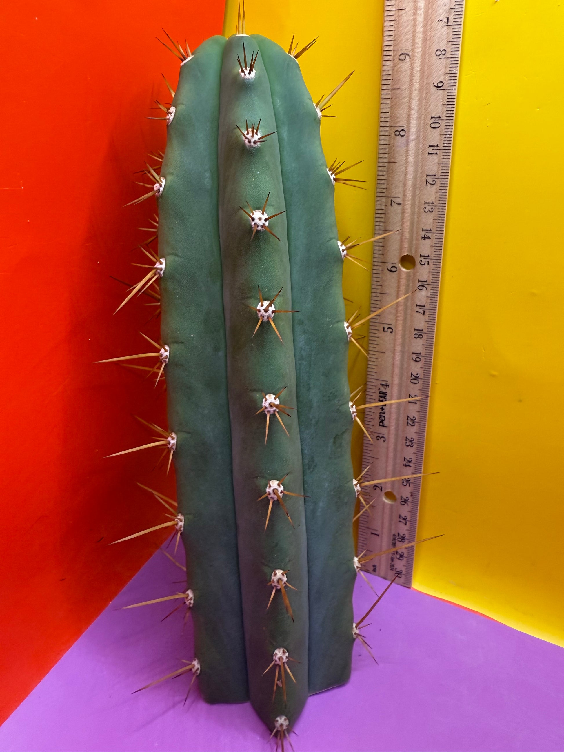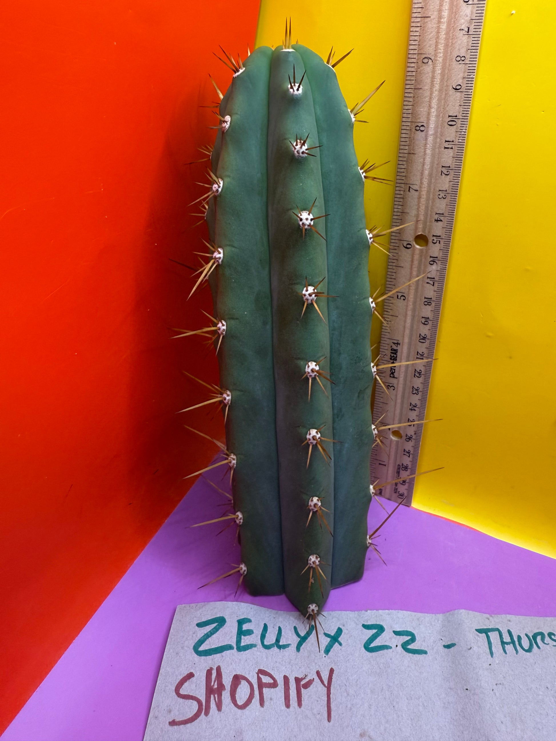 You will receive this exact cutting . This trichocereus gets a colored flower ! I haven’t seen it flower yet but I’m excited and hopeful that mine blooms next spring ! Very fat thick sturdy cutting that is ready to ship and has a beautiful callous and a perfect tip . Fast growing with long attractive spines this is quite the looker , really gonna be spectacular when it blooms !